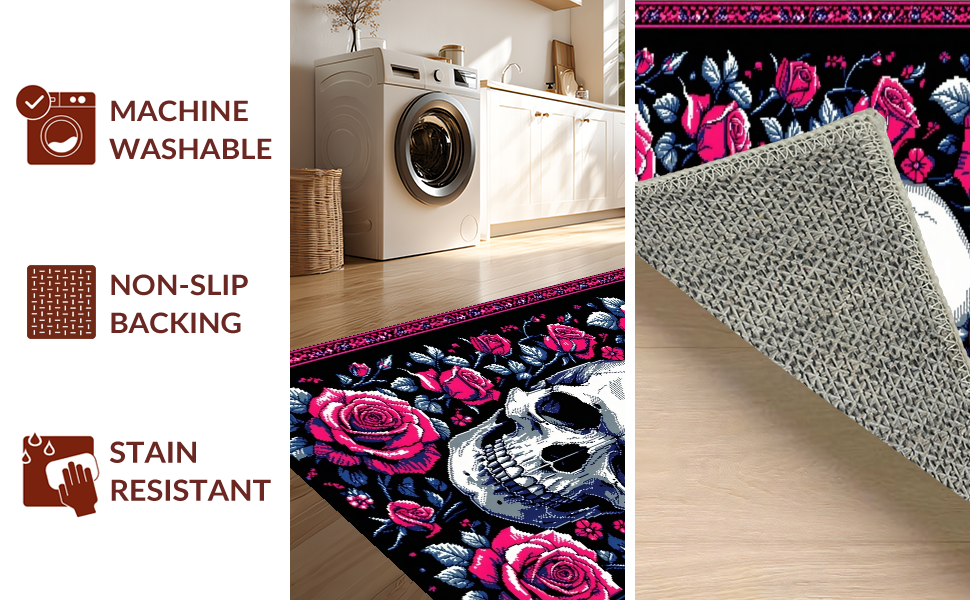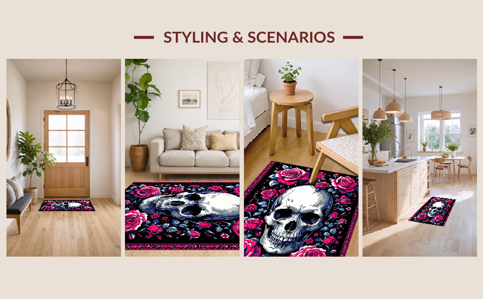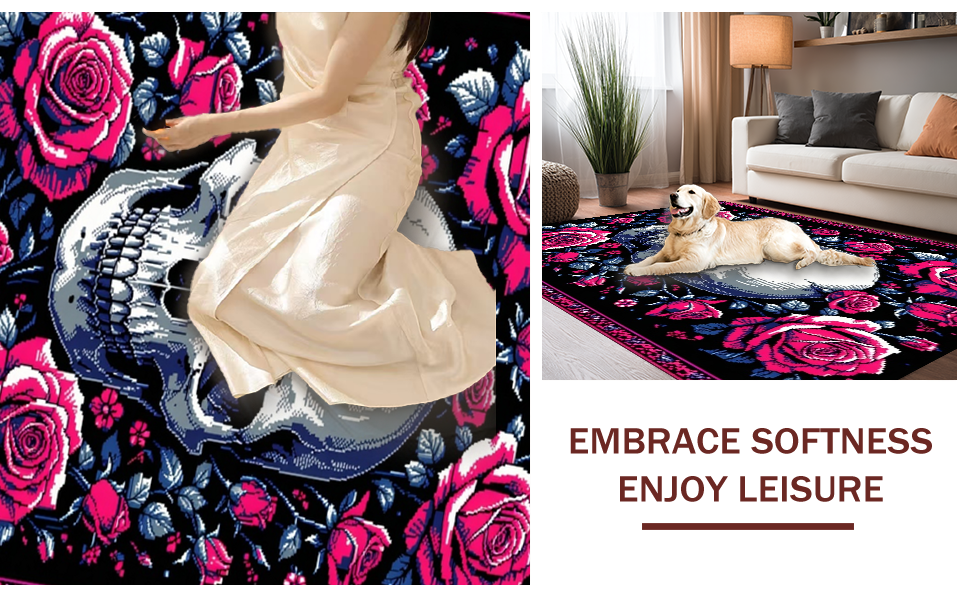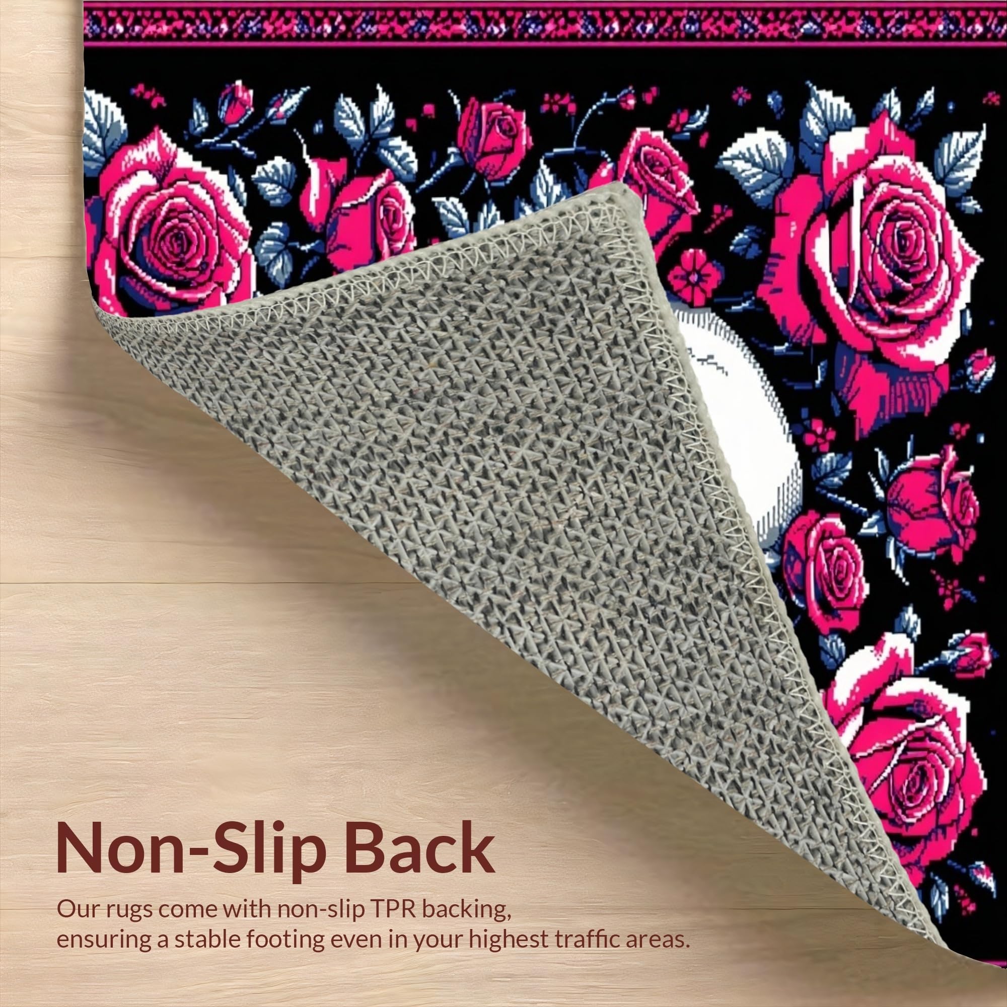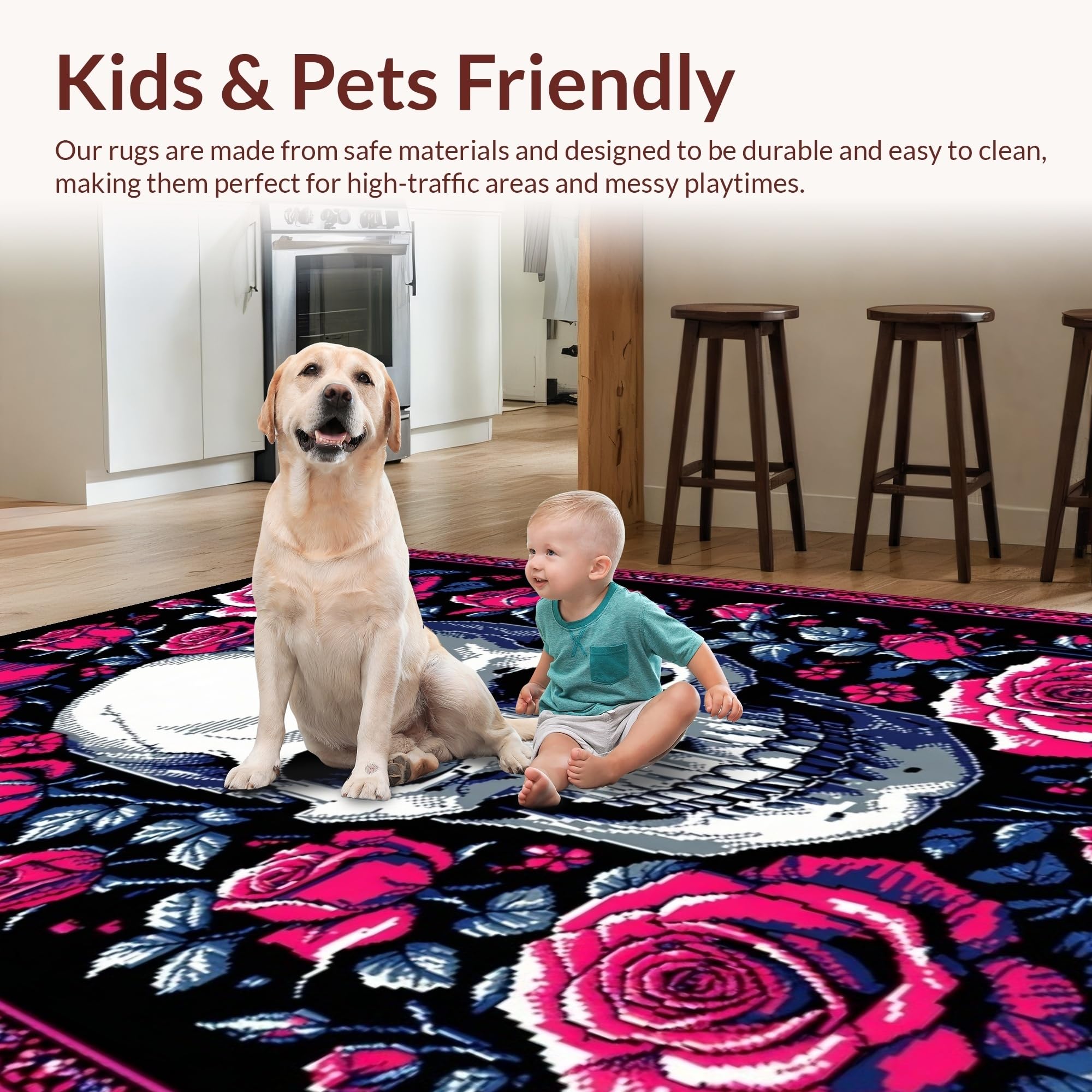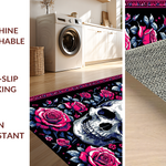 Ultra Soft Area Rug, Non Slip, Stain Resistant, Washable Area Rugs for Living Room, Bedroom, Gothic Floral Skull Aesthetic(Red) Overview: