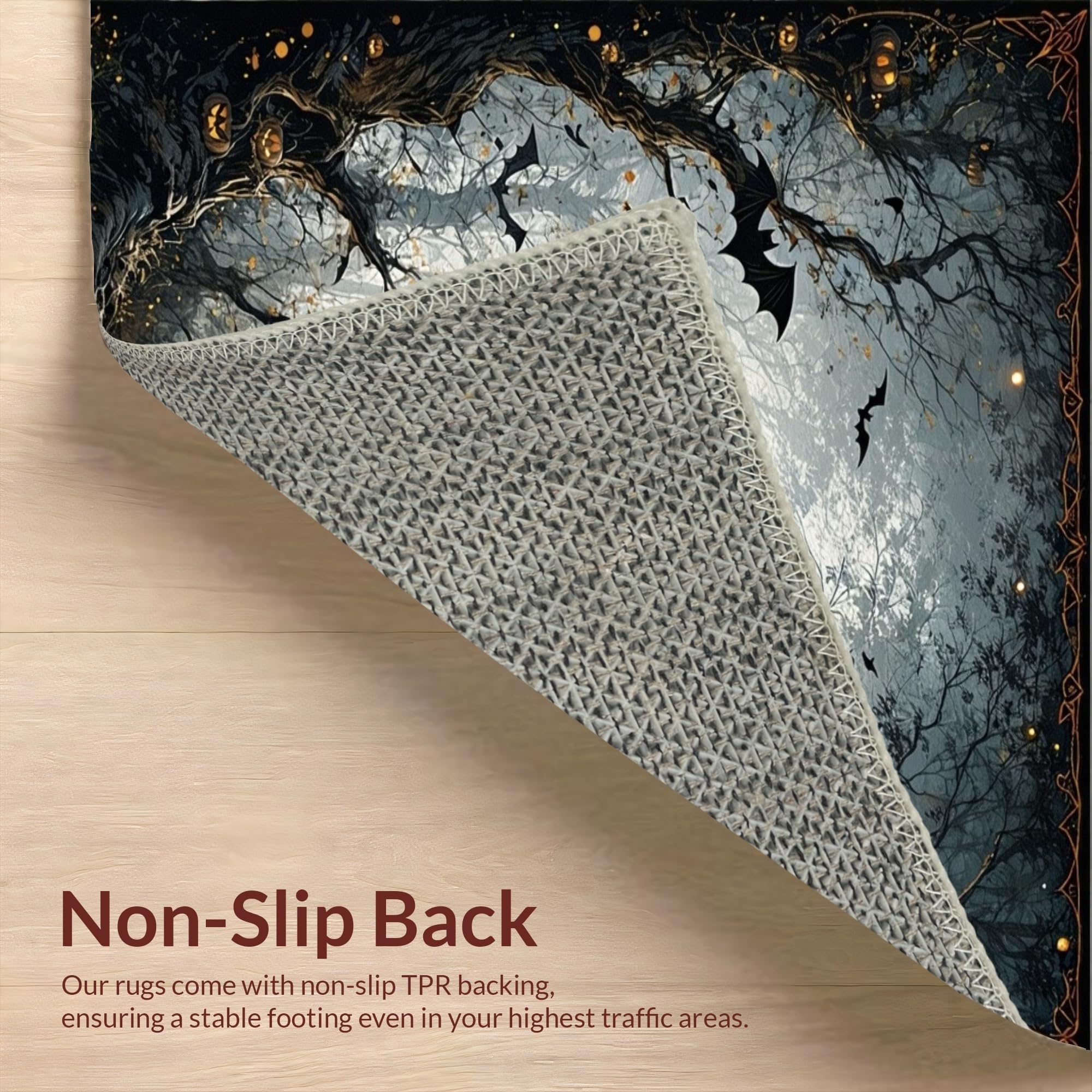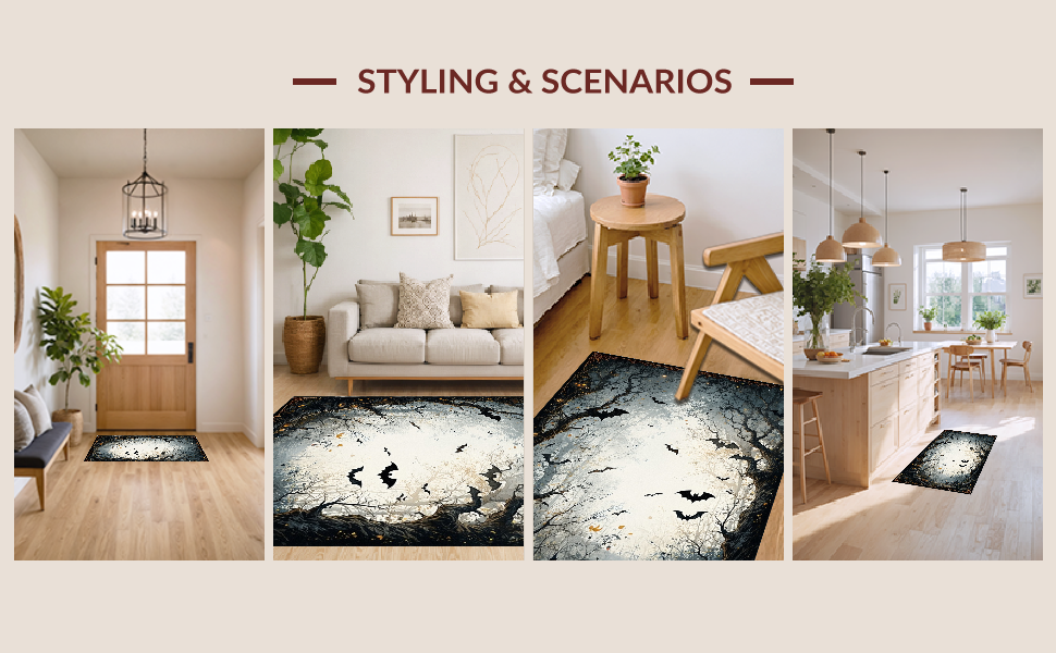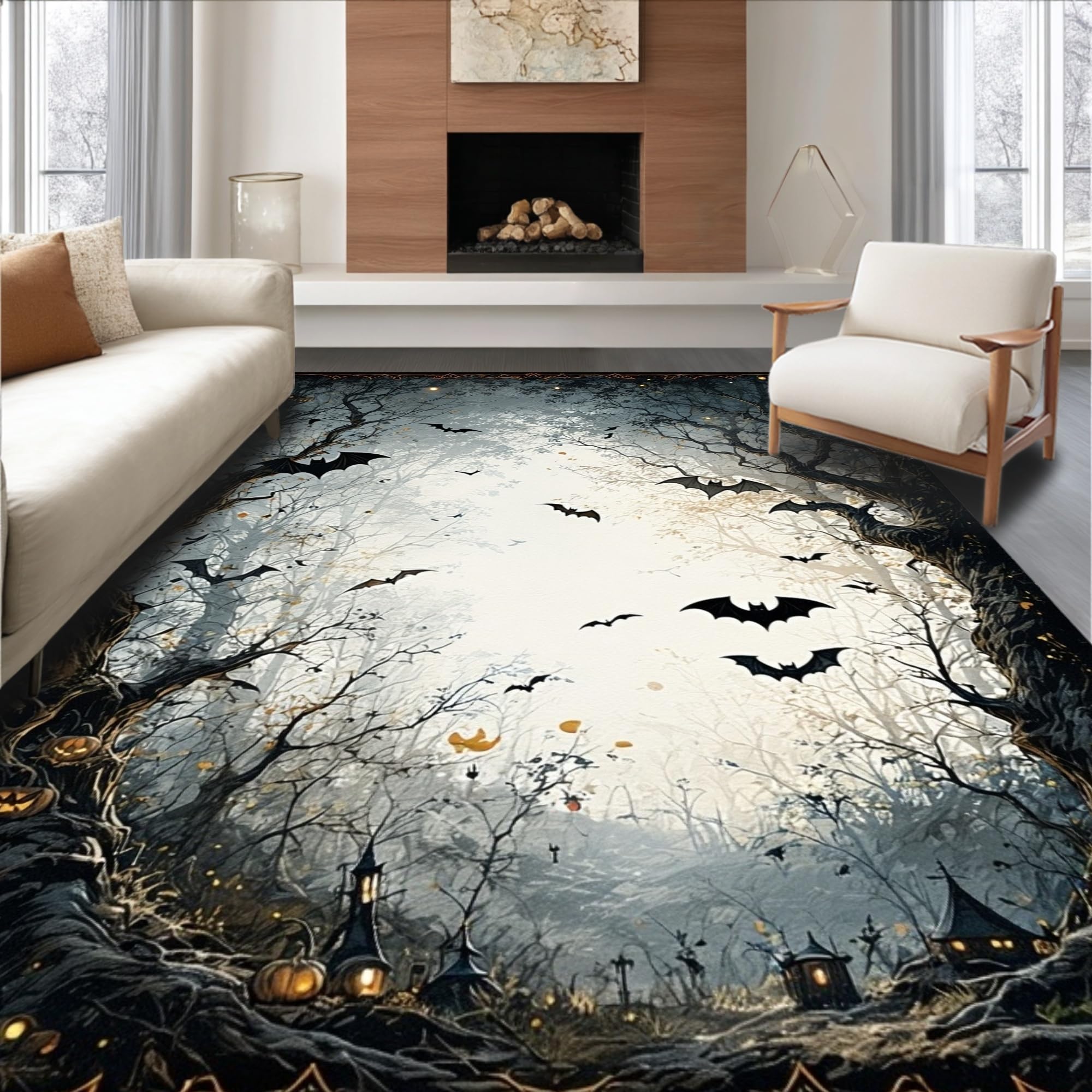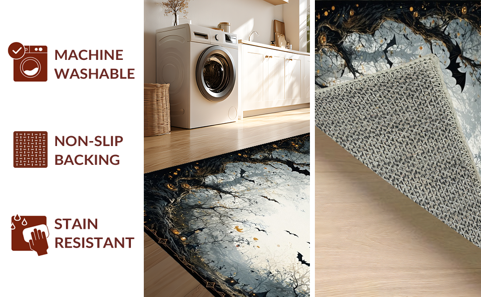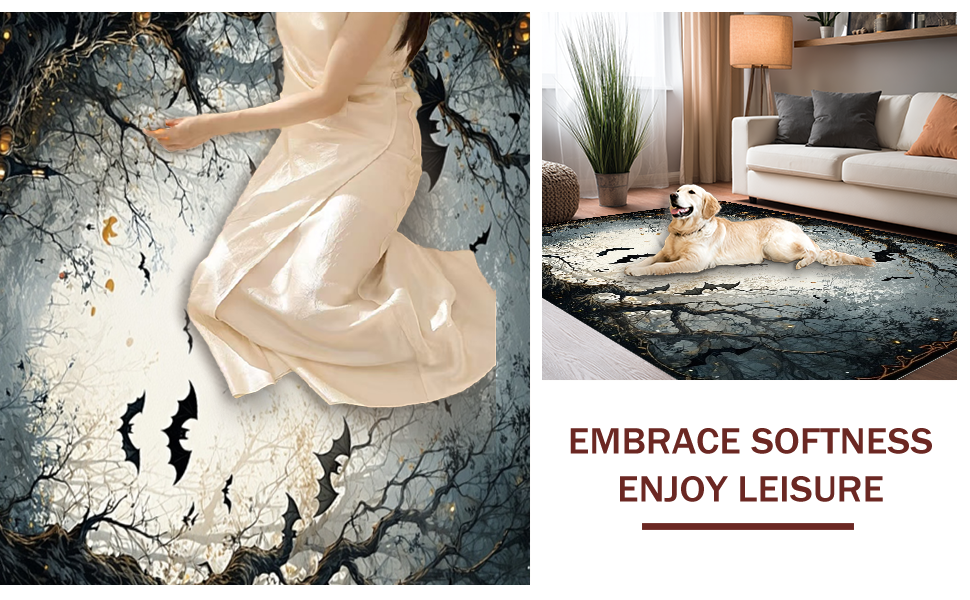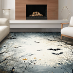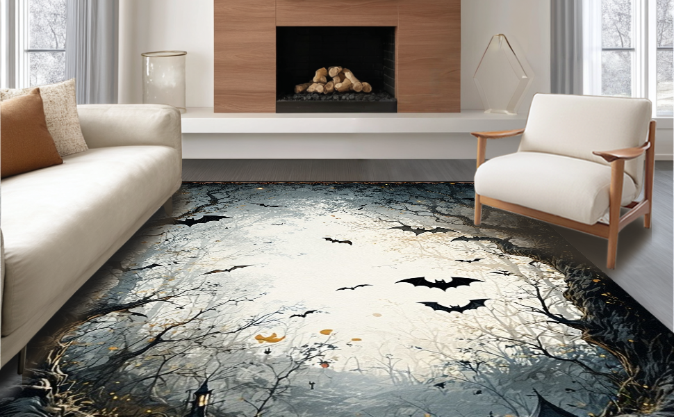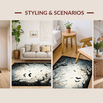 Ultra Soft Area Rug, Non Slip, Stain Resistant, Washable Area Rugs for Living Room, Bedroom, Gothic Inspired Twilight Bat Scene(Black) Overview: