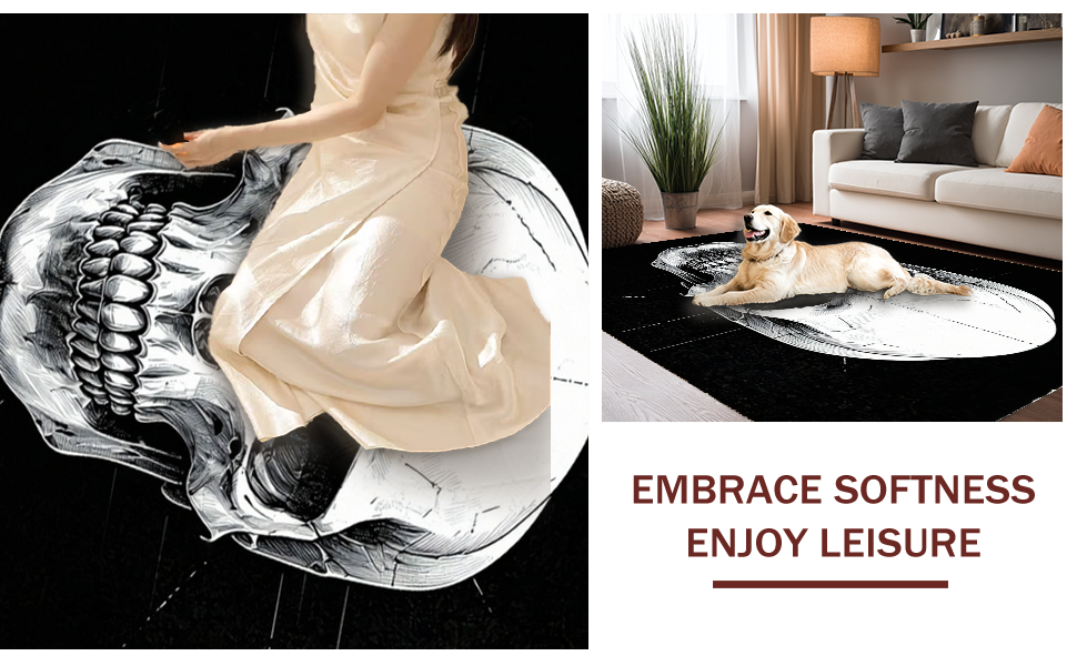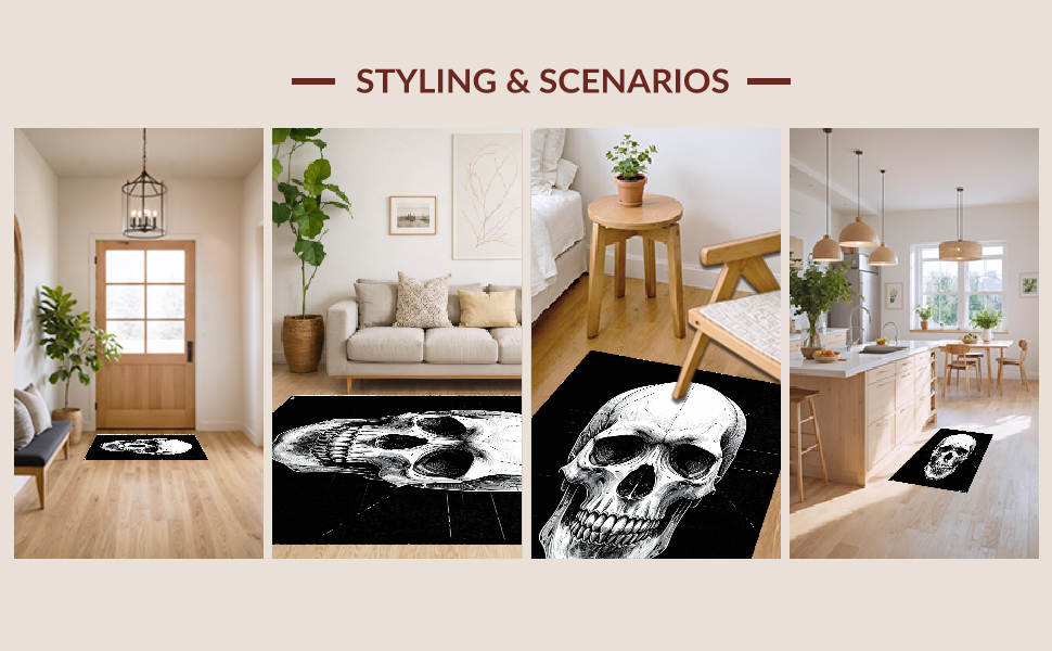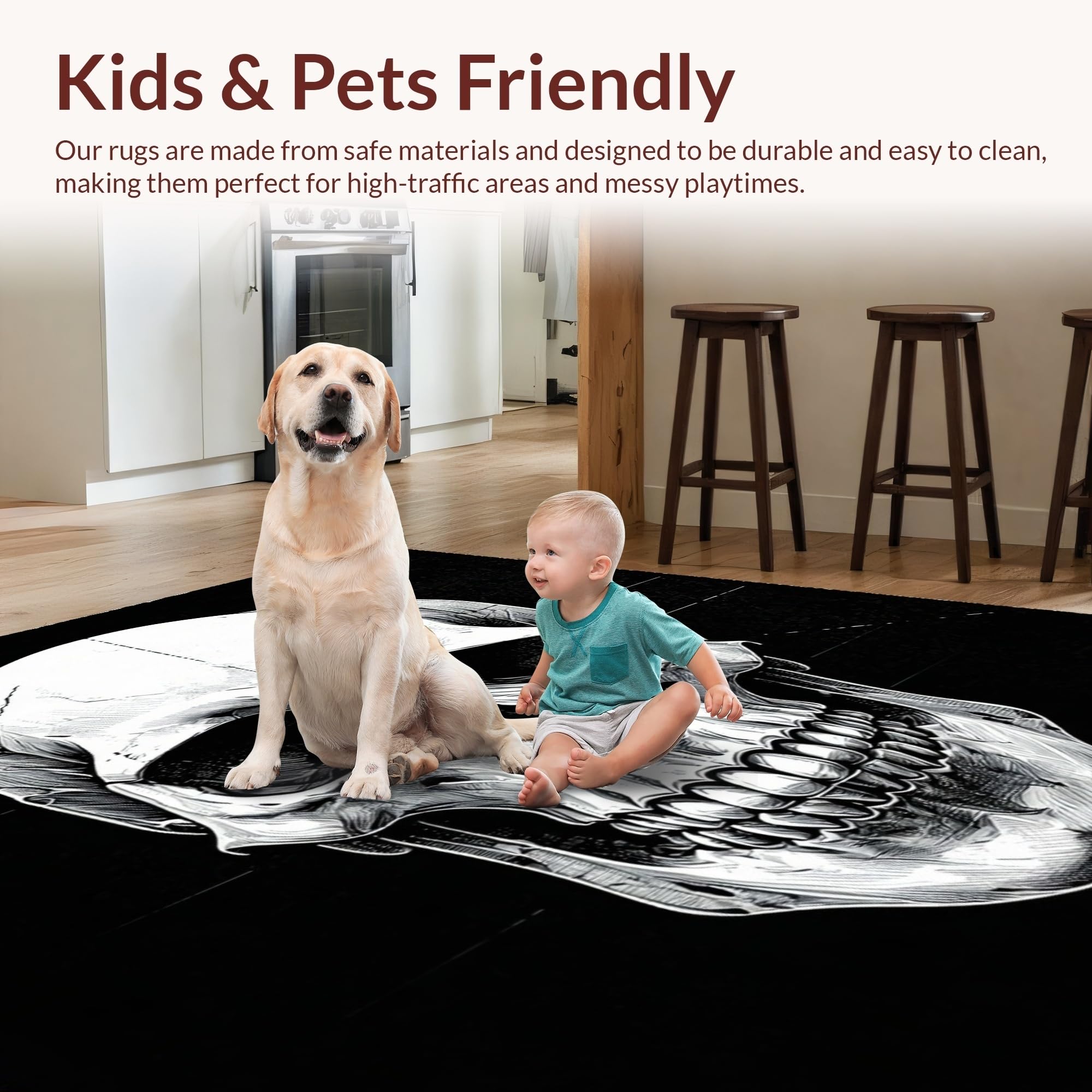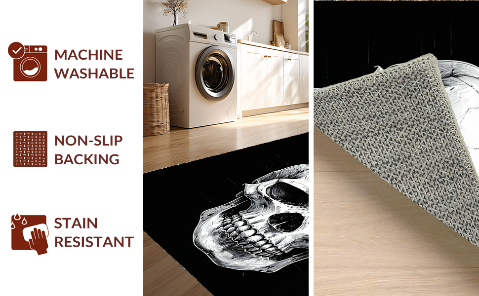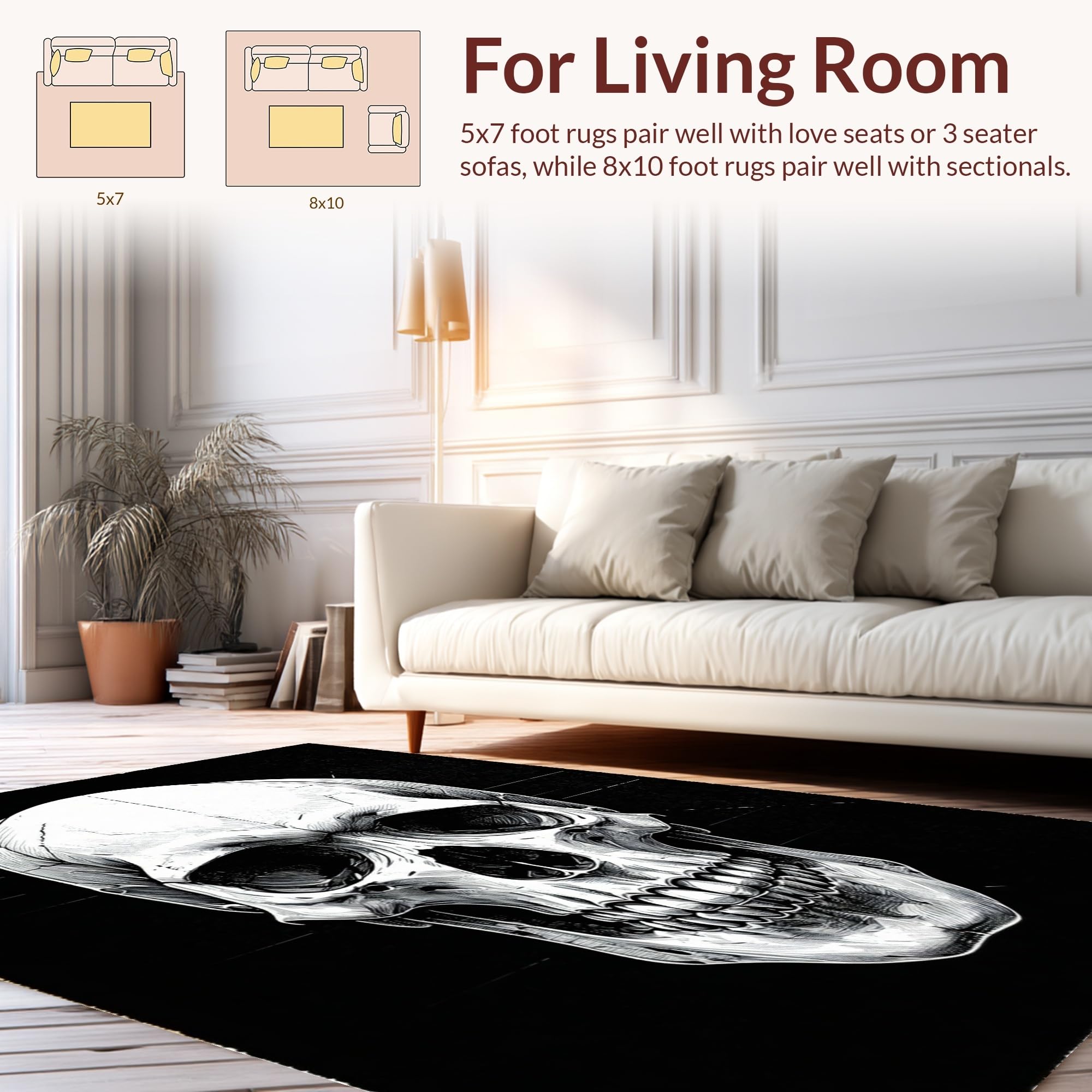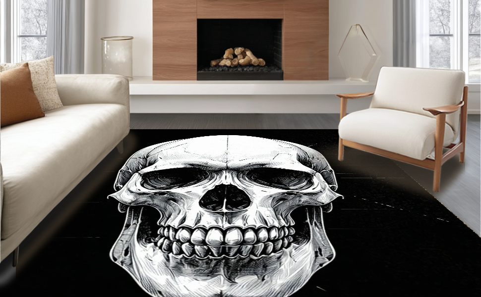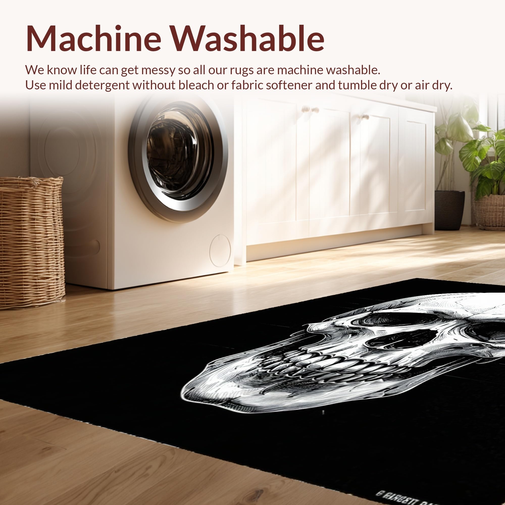 Ultra Soft Area Rug, Non Slip, Stain Resistant, Washable Area Rugs for Living Room, Bedroom, Gothic Skull Floral Fusion(Black) Overview: