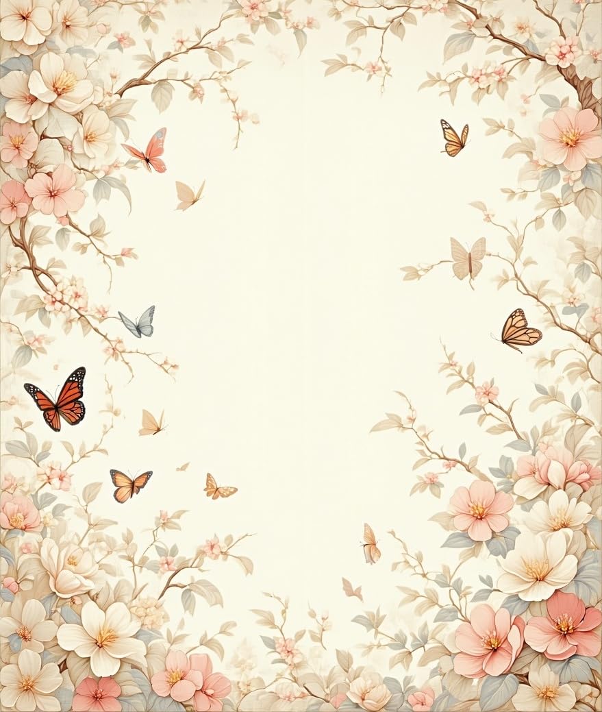 Graceful Beige Butterfly Bloom Area Floral Petal Design(Beige)