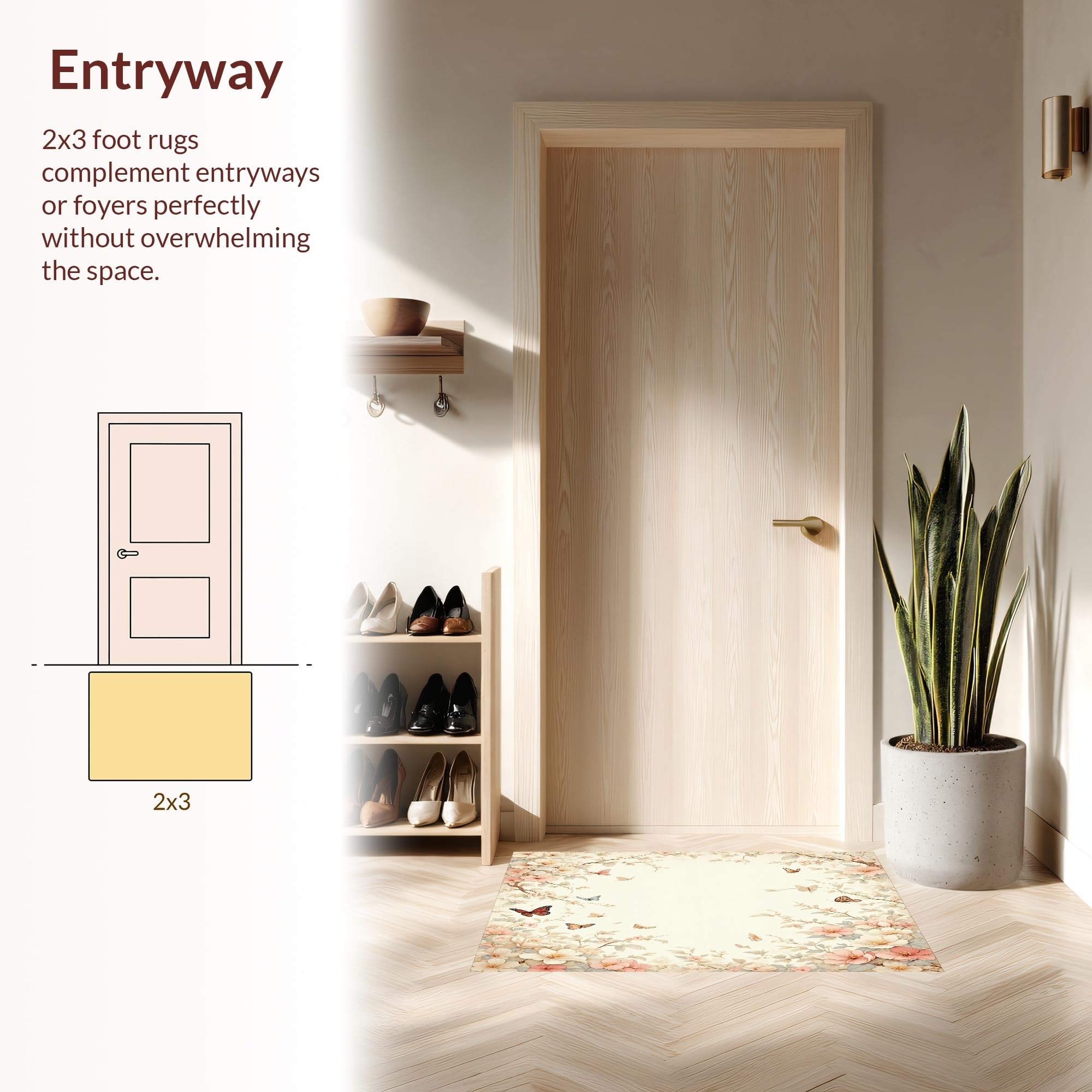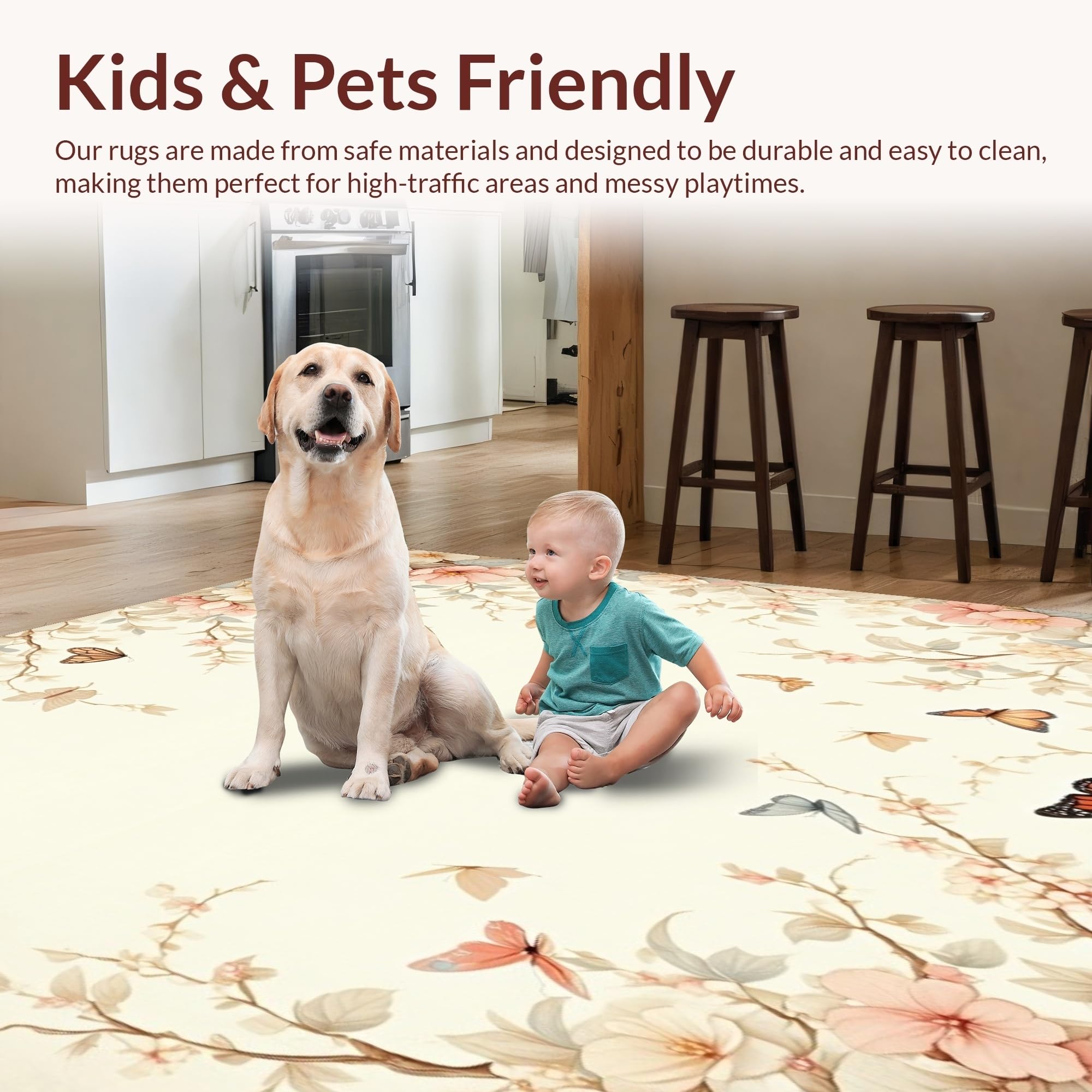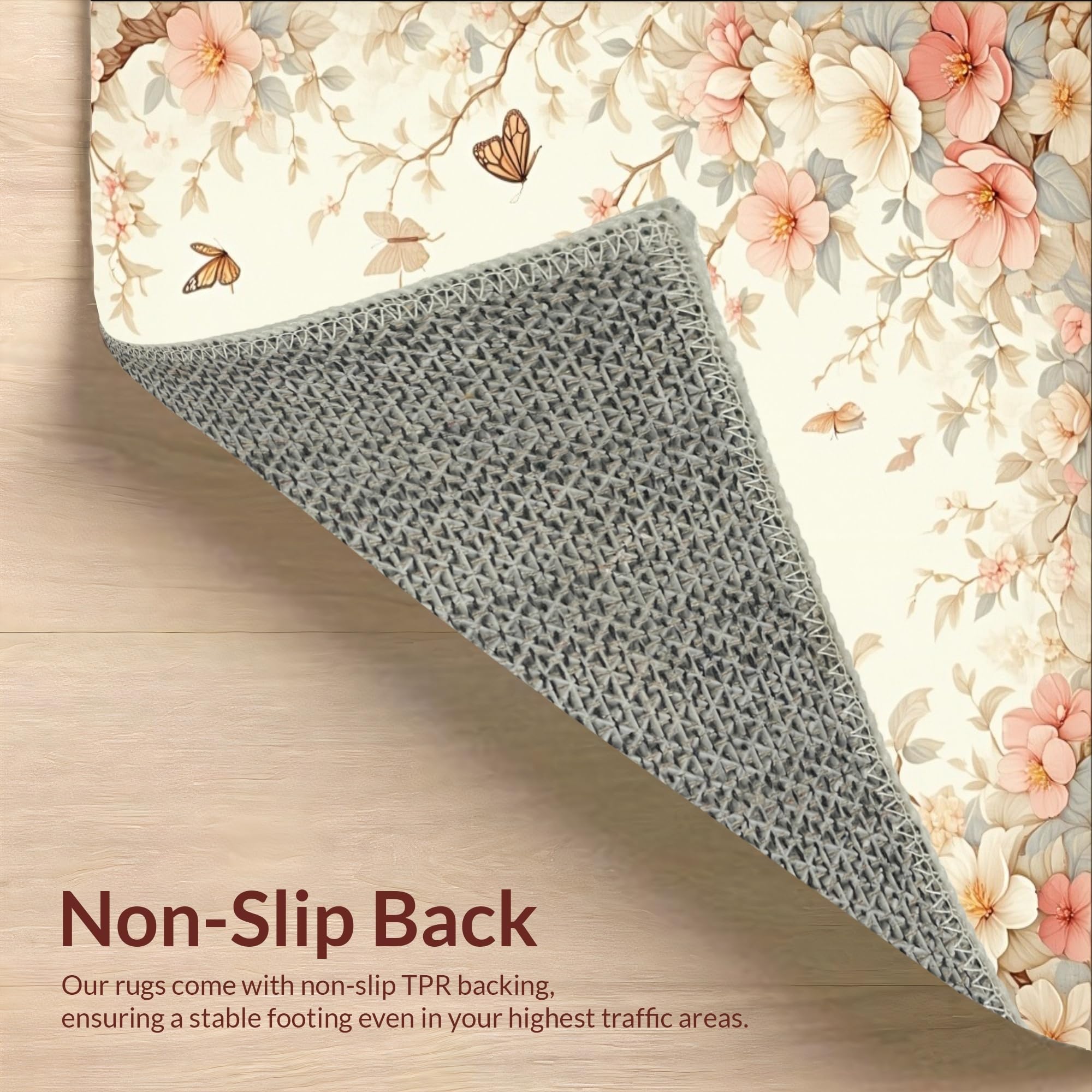 Ultra Soft Area Rug, Non Slip, Stain Resistant, Washable Area Rugs for Living Room, Bedroom, Graceful Beige Butterfly Bloom Area Floral Petal Design(Beige) Overview: