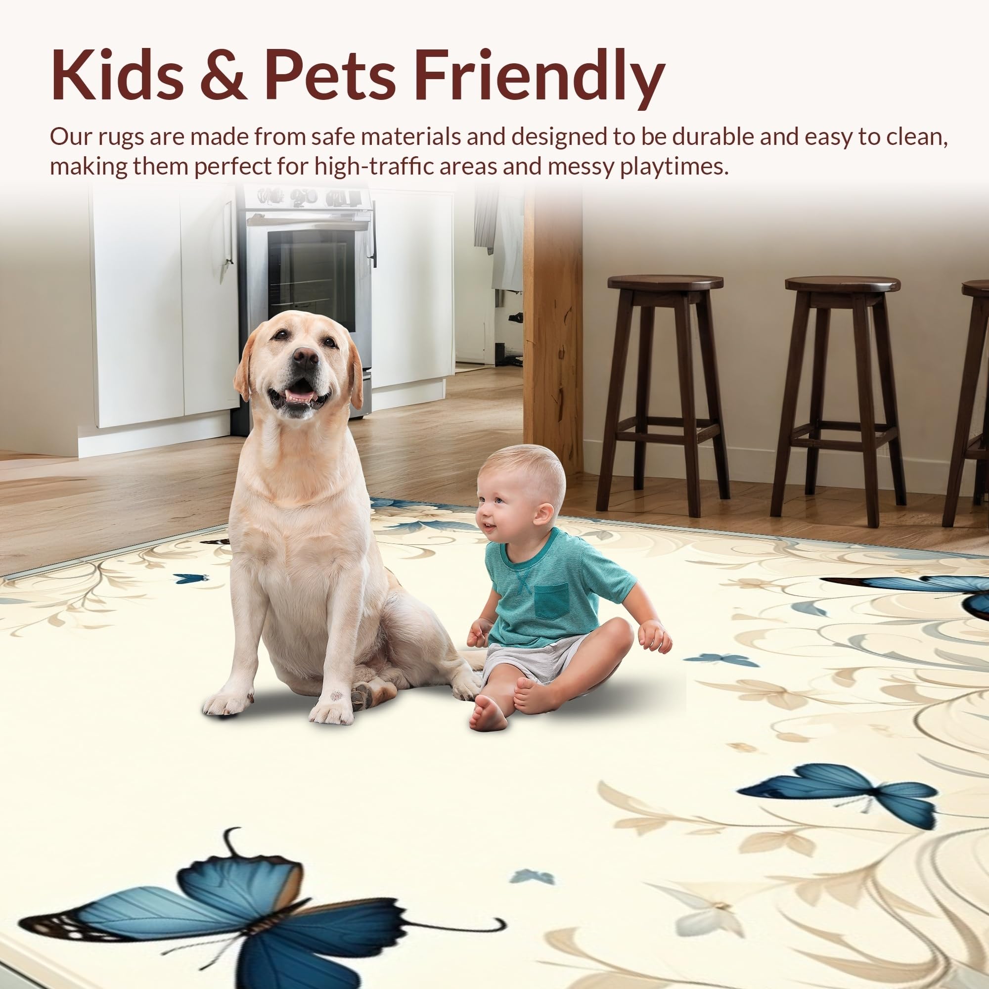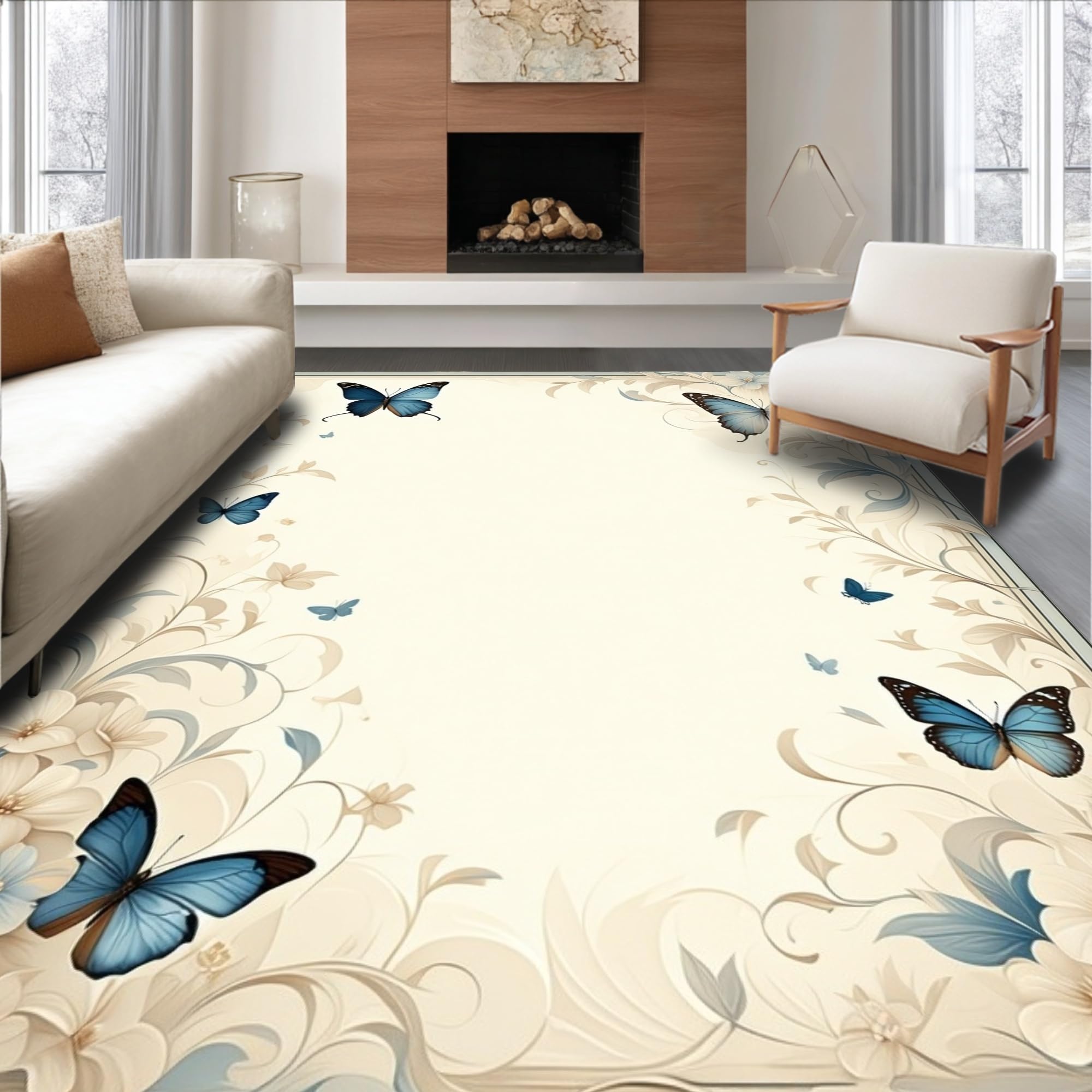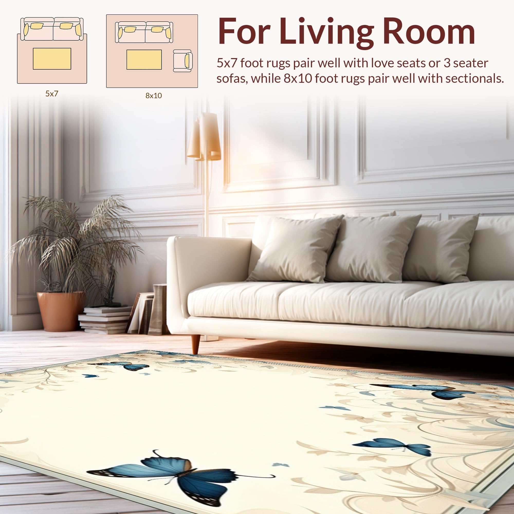 Ultra Soft Area Rug, Non Slip, Stain Resistant, Washable Area Rugs for Living Room, Bedroom, Graceful Butterfly Floral Ultra Accent Design(Beige) Overview: