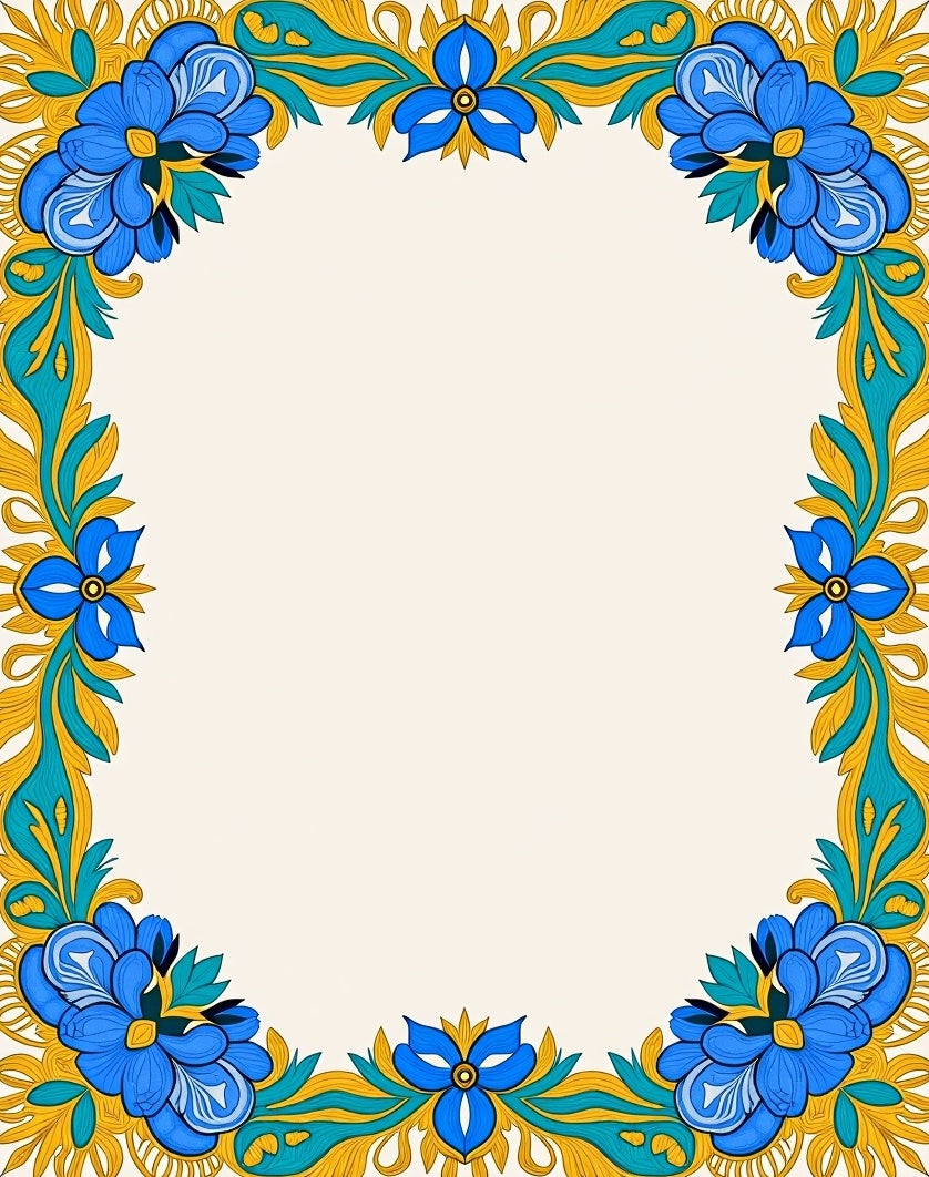 Graceful Petal Symphony Surrounded By Harmonious Edge Detailing(Blue)