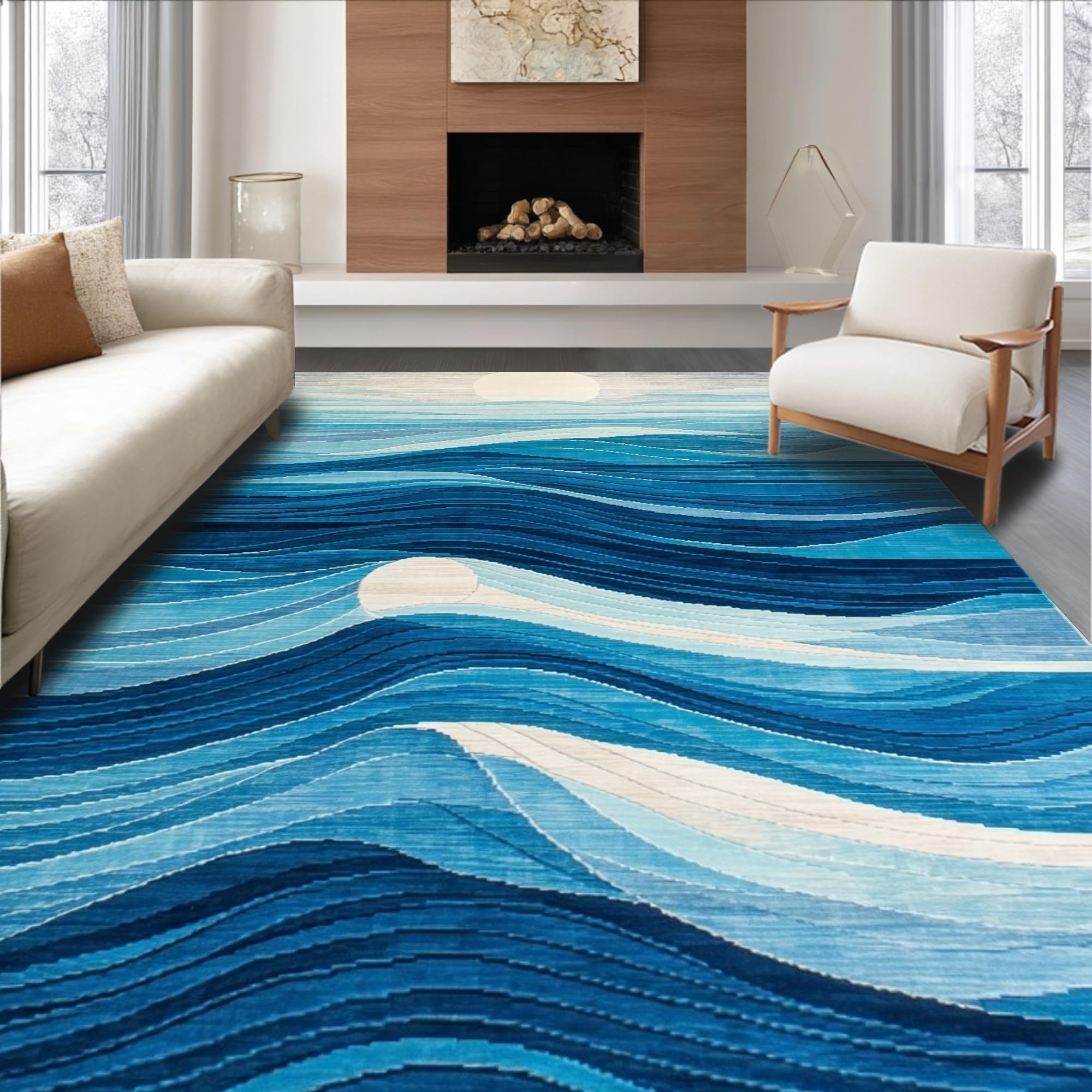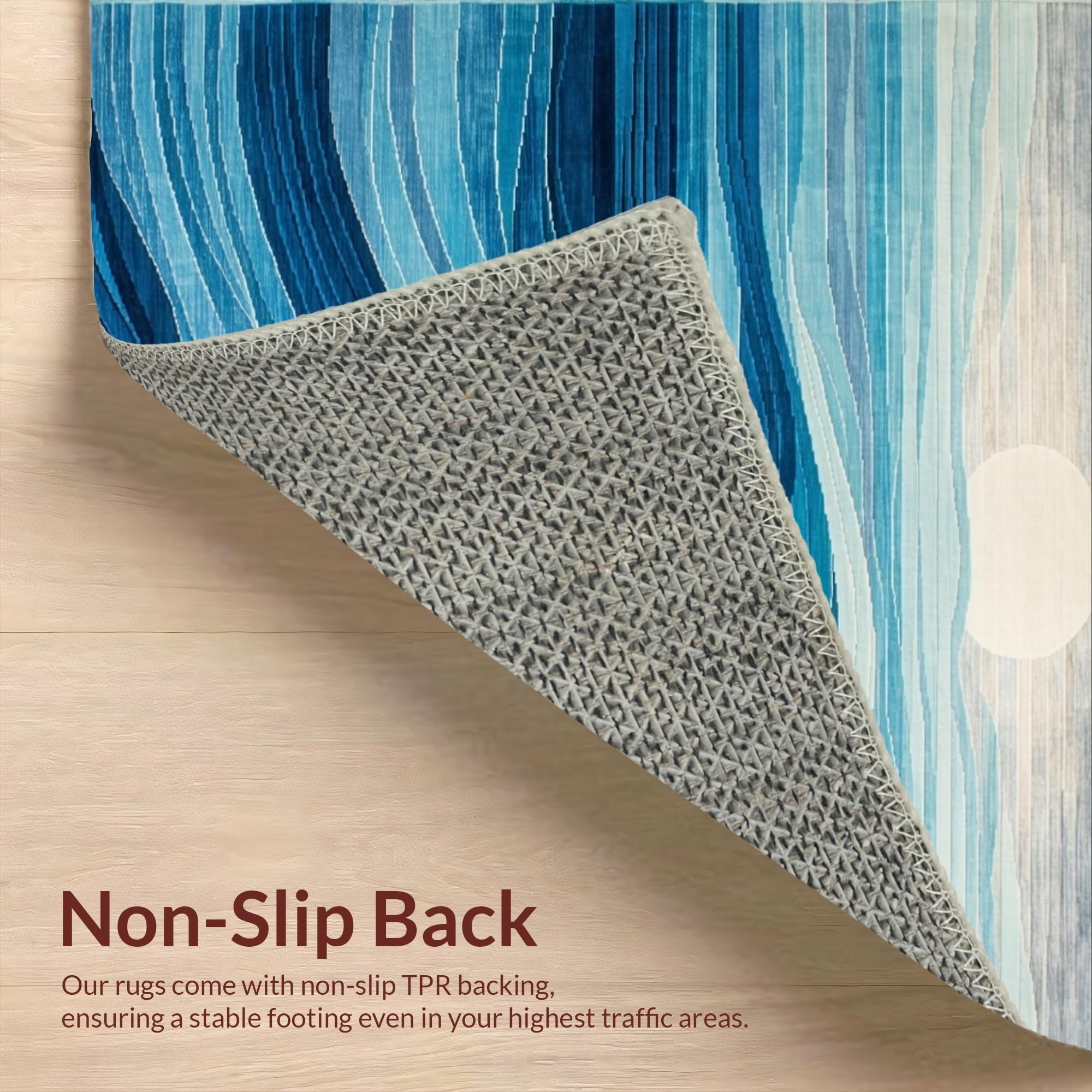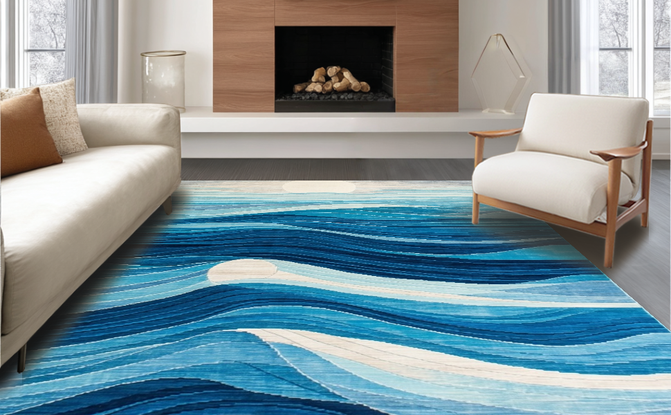 Ultra Soft Area Rug, Non Slip, Stain Resistant, Washable Area Rugs for Living Room, Bedroom, Graceful Turquoise Crest Arrangement(Blue) Overview: