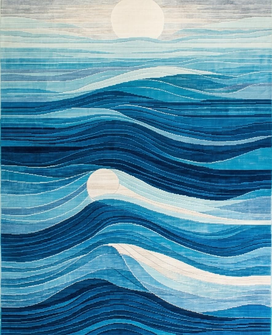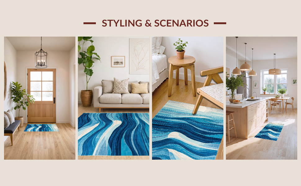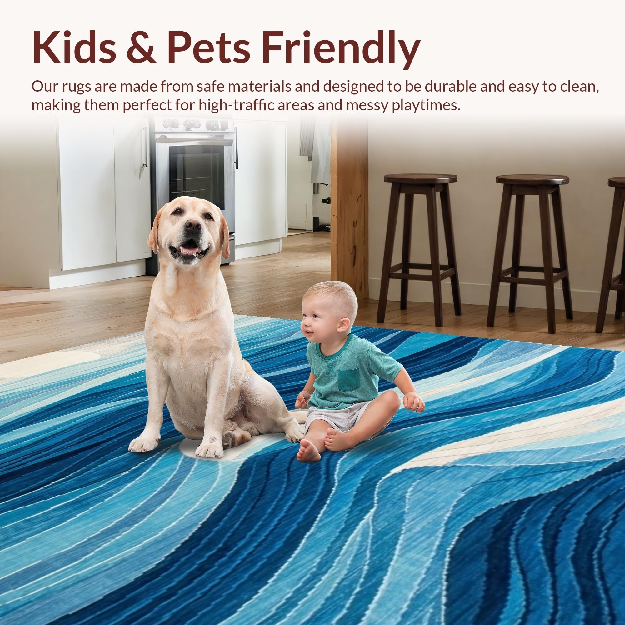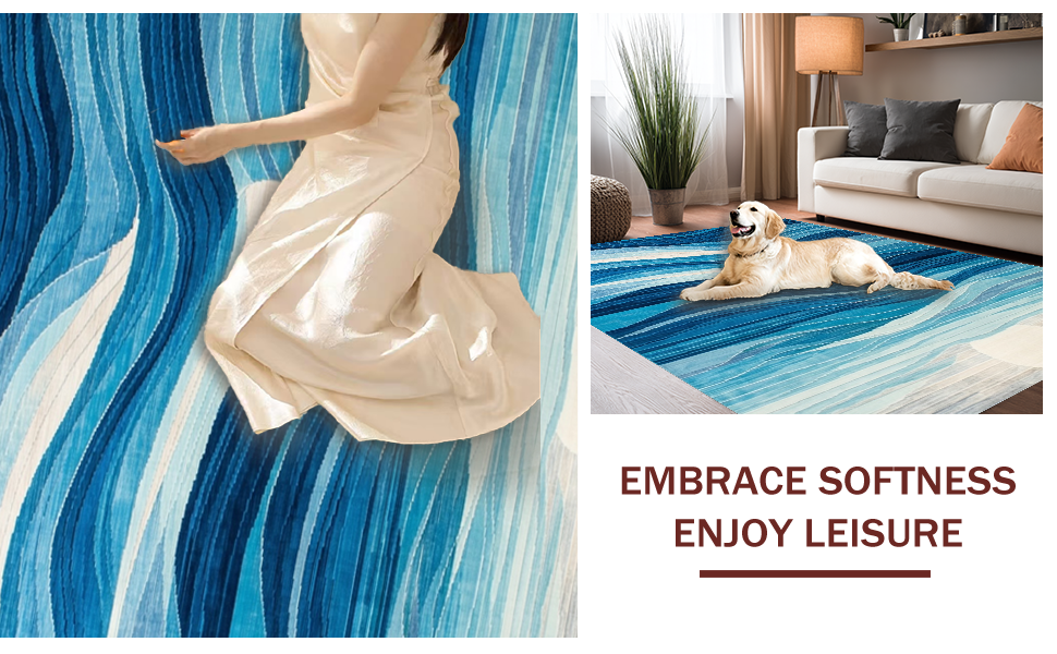 Ultra Soft Area Rug, Non Slip, Stain Resistant, Washable Area Rugs for Living Room, Bedroom, Graceful Turquoise Crest Arrangement(Blue) Overview: