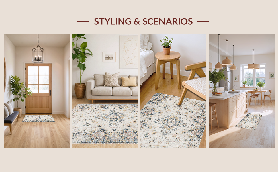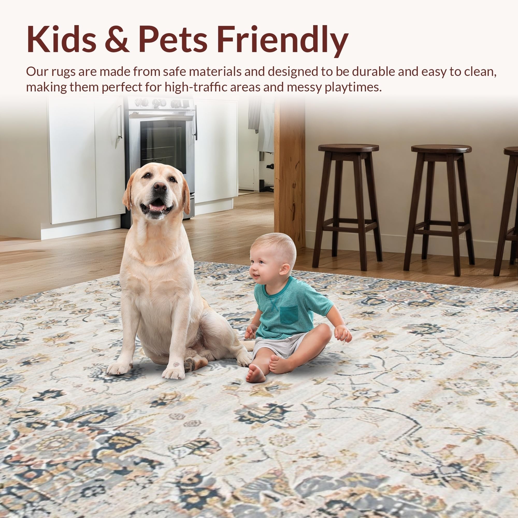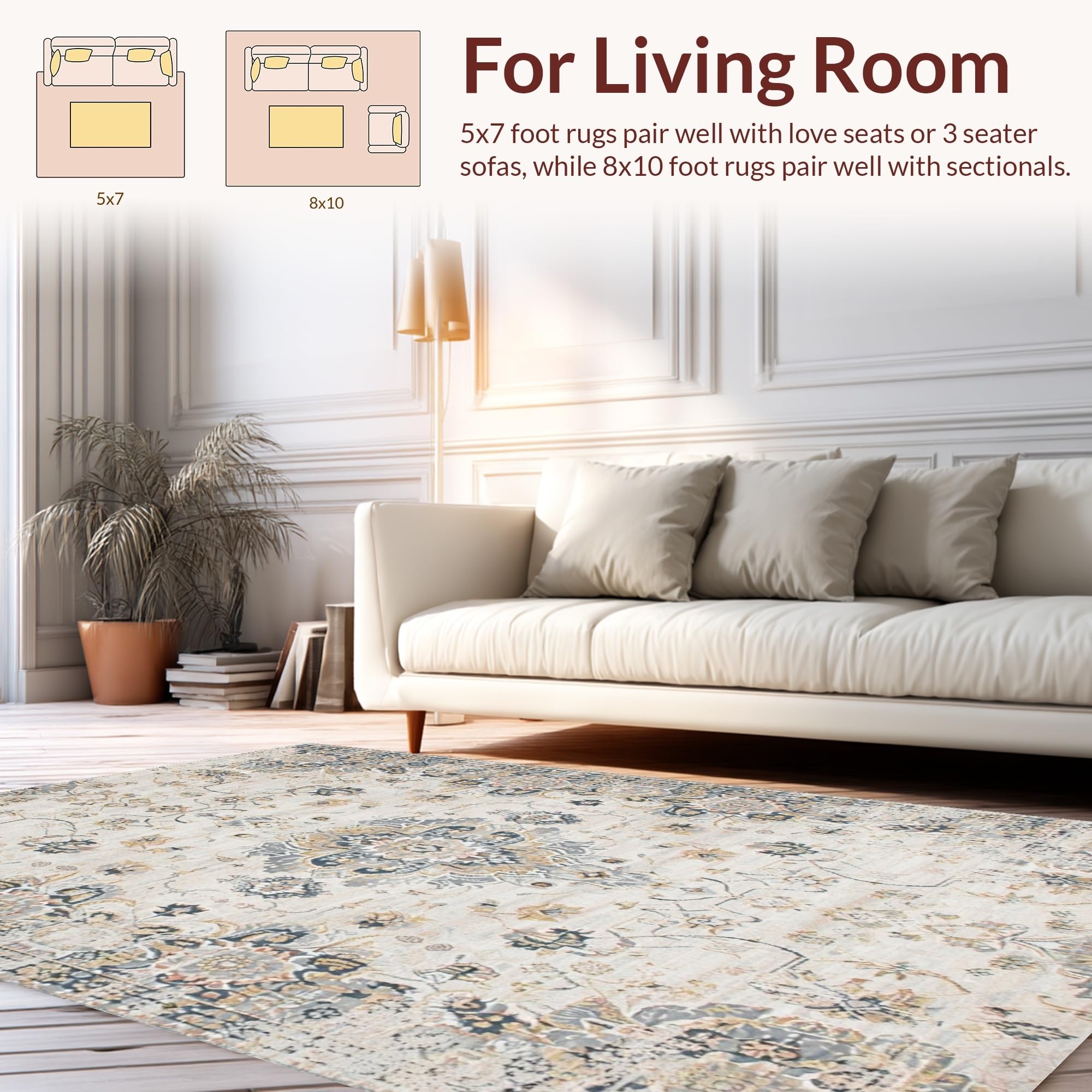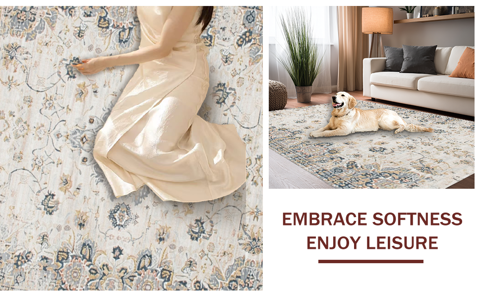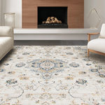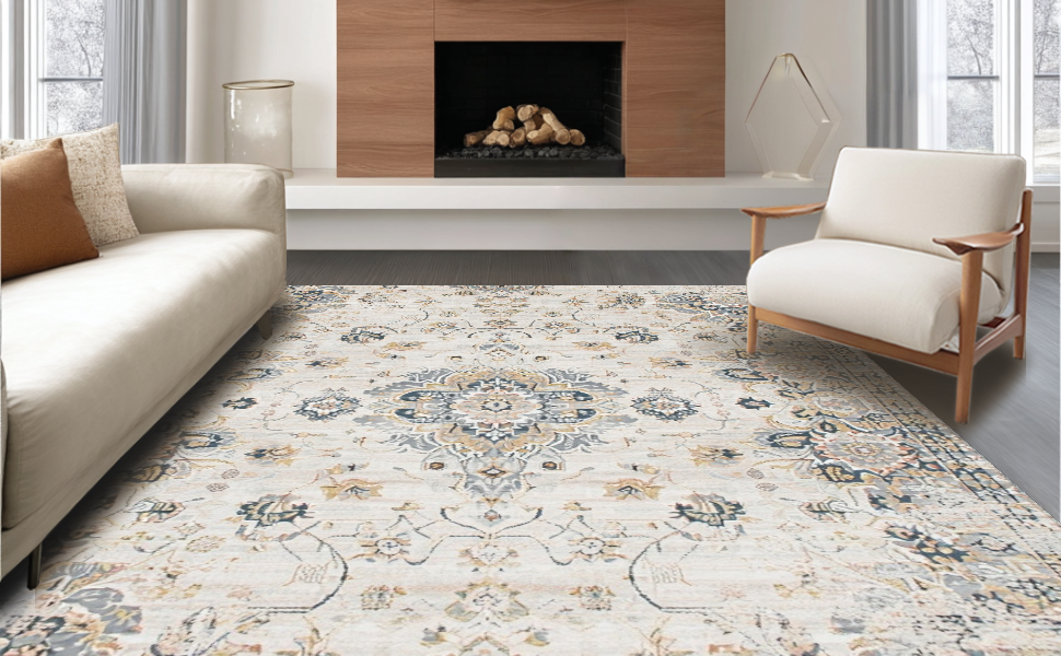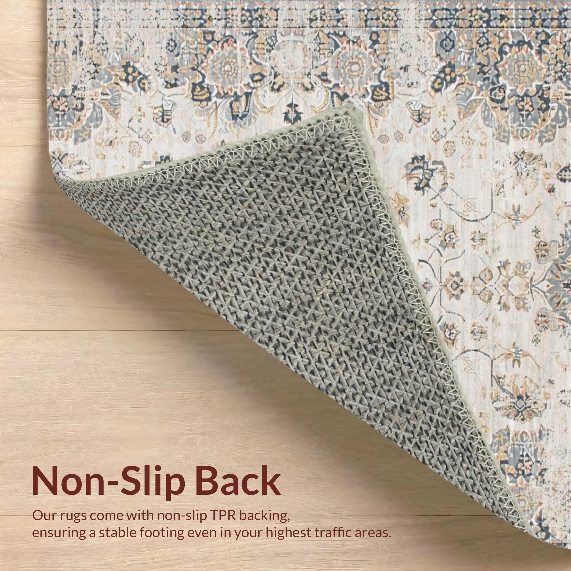 Ultra Soft Area Rug, Non Slip, Stain Resistant, Washable Area Rugs for Living Room, Bedroom, Graceful Vintage Ogee Pattern(Beige) Overview: