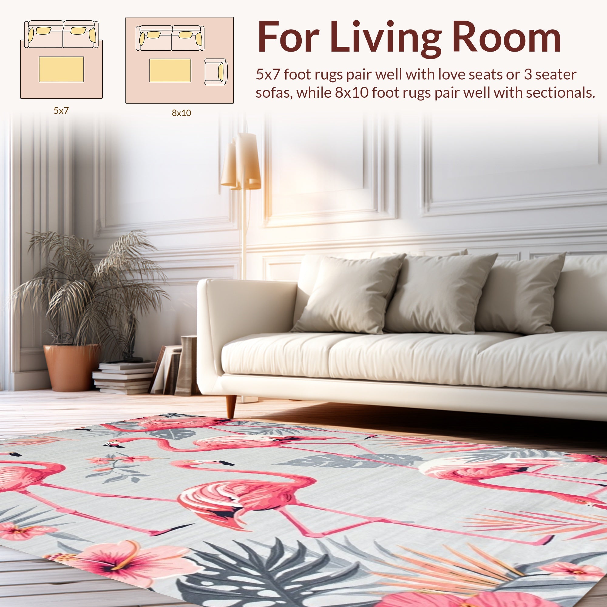 Ultra Soft Area Rug, Non Slip, Stain Resistant, Washable Area Rugs for Living Room, Bedroom, Grey and Pink Tropical Flamingo Area Rug Easy to Clean(Gray) Overview: