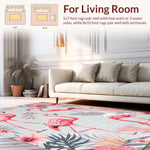 Grey and Pink Tropical Flamingo Area Rug Easy to Clean(Gray)