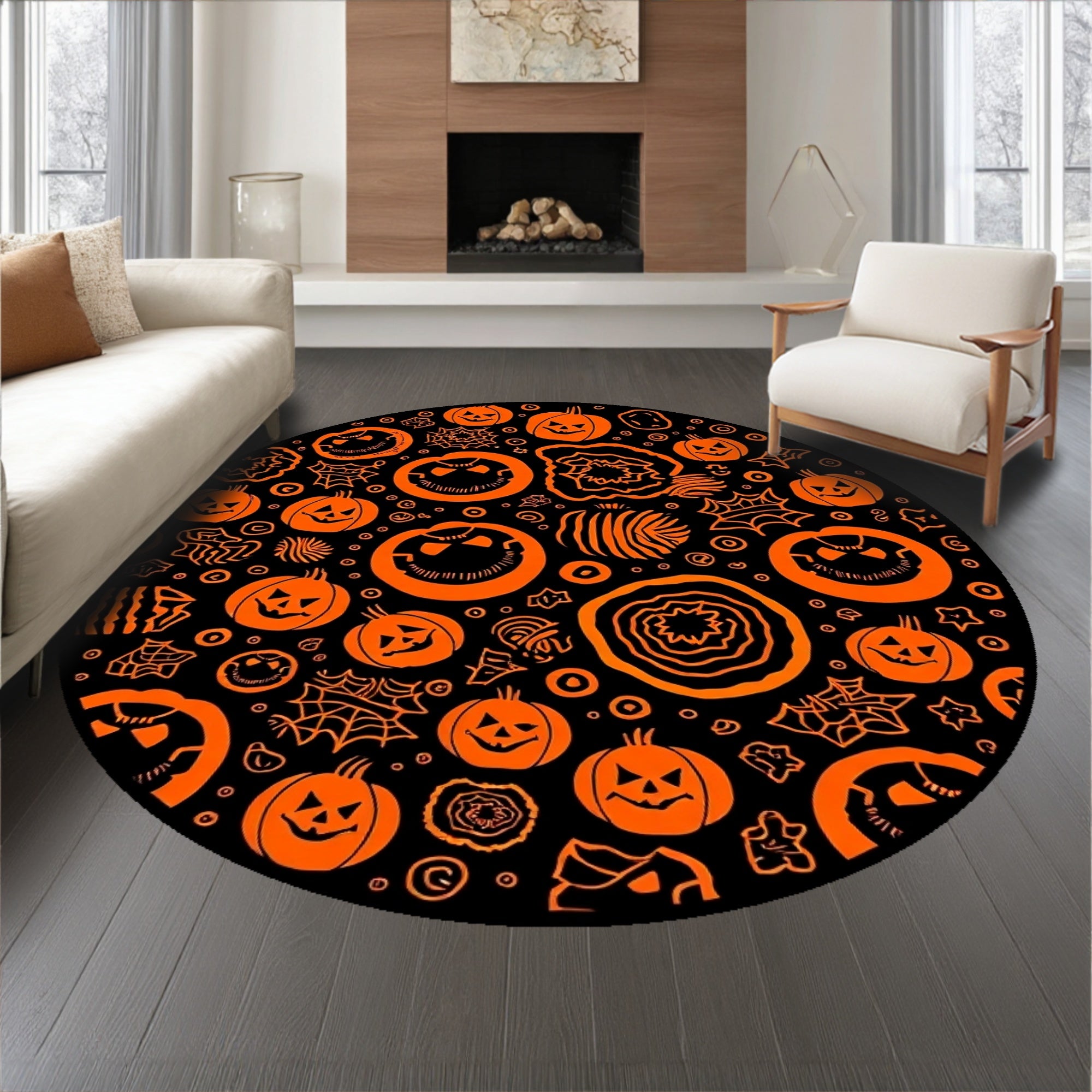 Ultra Soft Area Rug, Non Slip, Stain Resistant, Washable Area Rugs for Living Room, Bedroom, Halloween Haunt Spooky Spiderweb & Pumpkin Patch(Black) Overview: