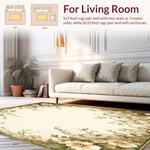 Ultra Soft Area Rug, Non Slip, Stain Resistant, Washable Area Rugs for Living Room, Bedroom, Hallway Runner with Beige and Green Floral Design(Beige) Overview: