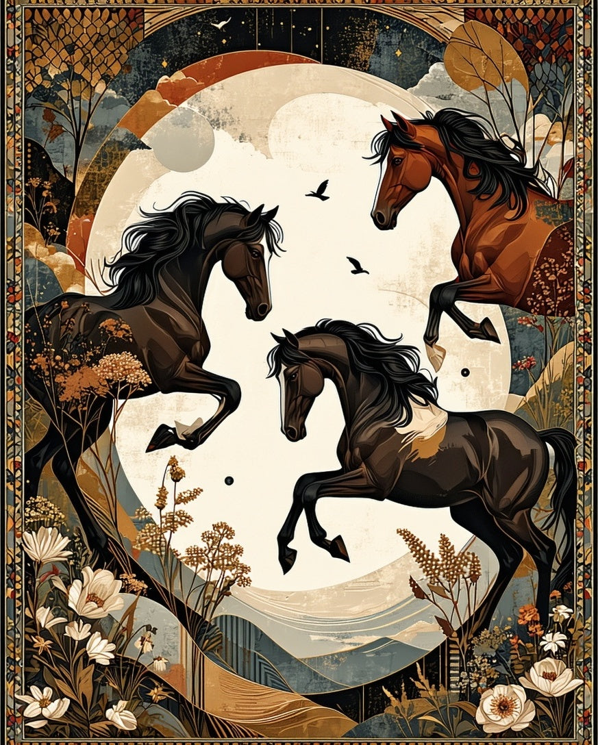 Hand Painted Horse Spirit Area Rug with Expressive Motion and Vintage Detailing(Brown)