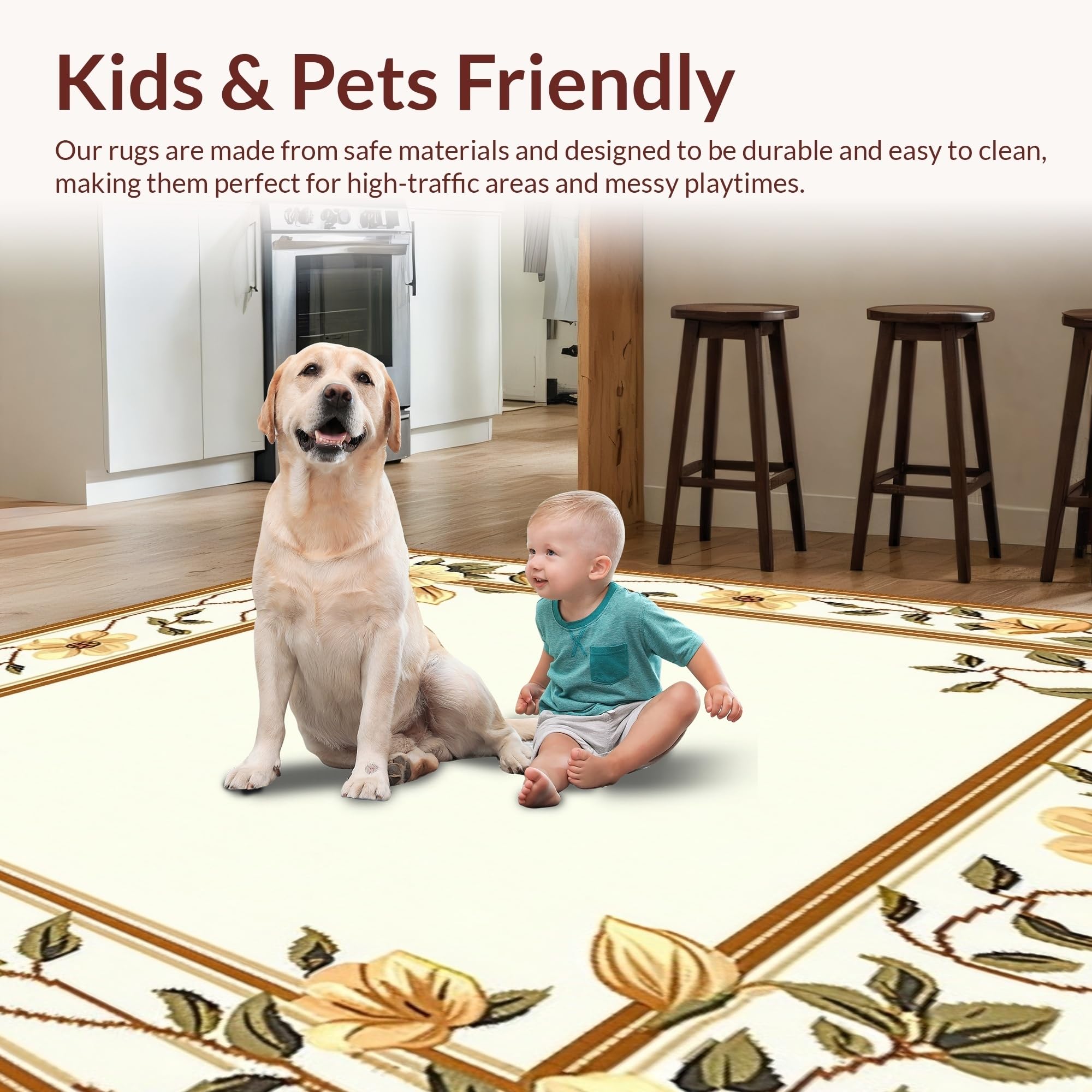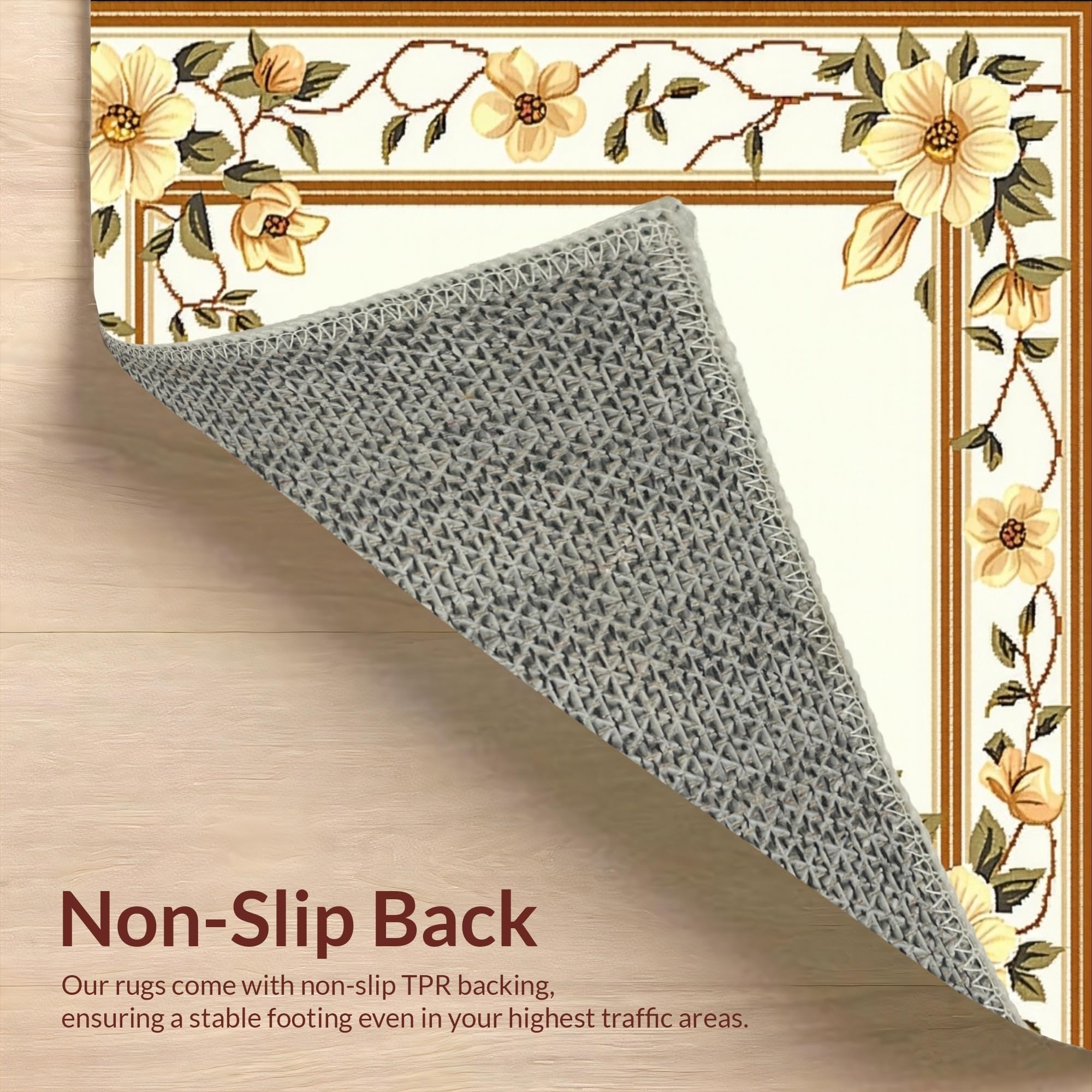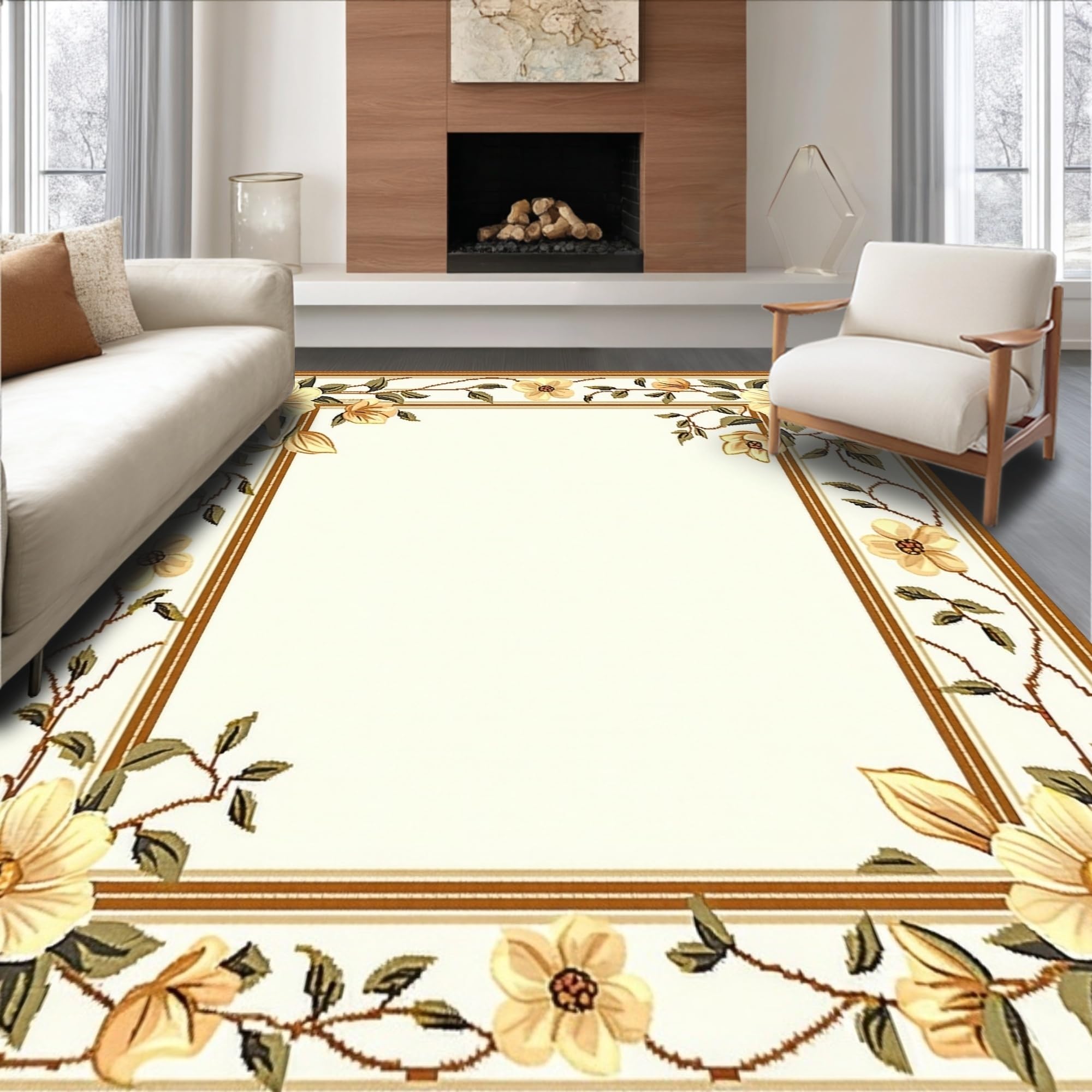 Ultra Soft Area Rug, Non Slip, Stain Resistant, Washable Area Rugs for Living Room, Bedroom, Handcrafted Scallop Trimmed Jute with Floral Inspired Weave and Earthy Shade(Beige) Overview: