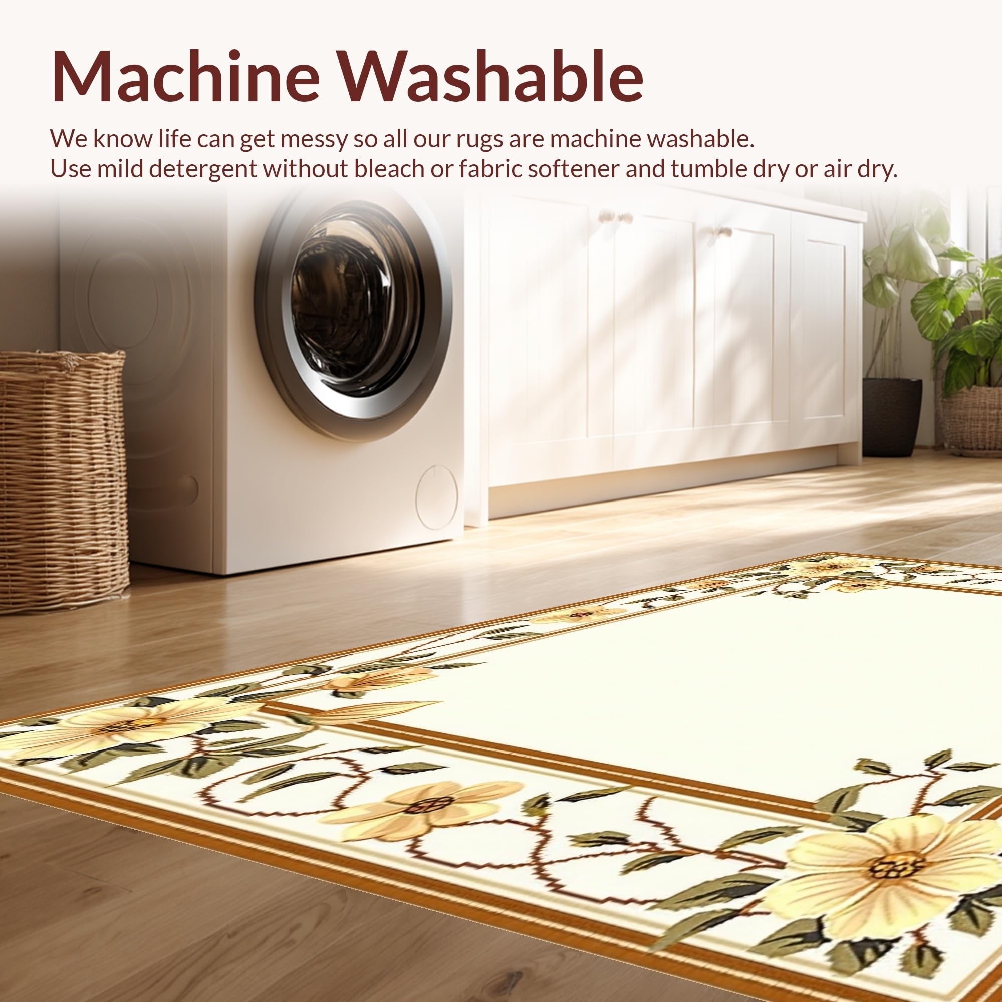 - Machine Washable: Our rugs can be easily thrown in the wash machine.