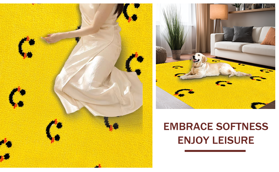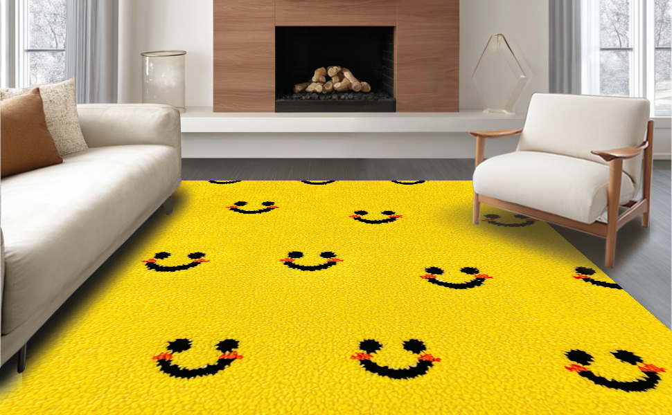 Ultra Soft Area Rug, Non Slip, Stain Resistant, Washable Area Rugs for Living Room, Bedroom, Happy Face Tufted Watercolor Pattern(Yellow) Overview: