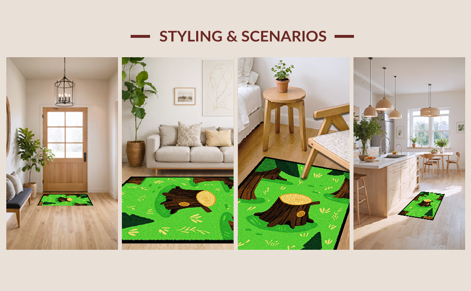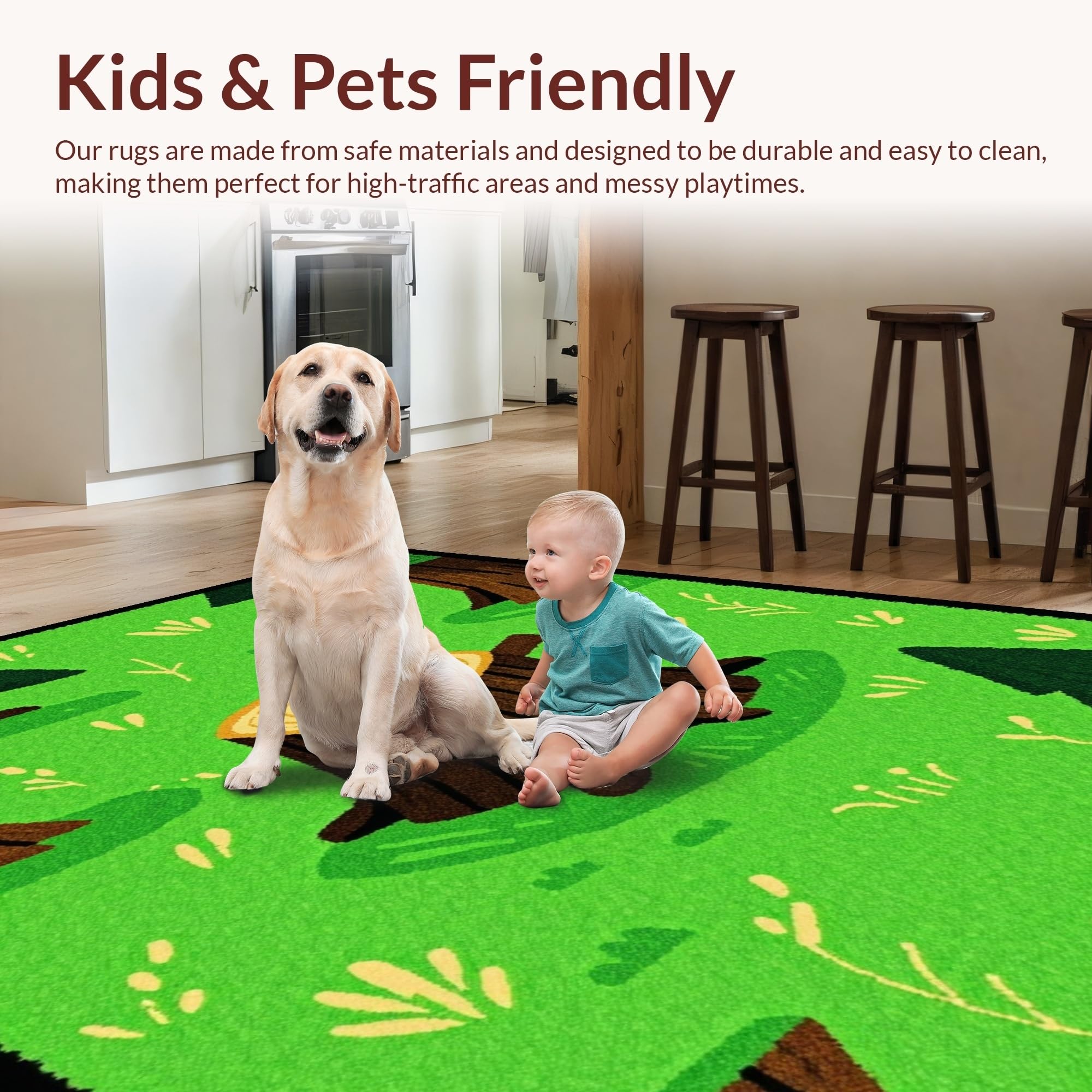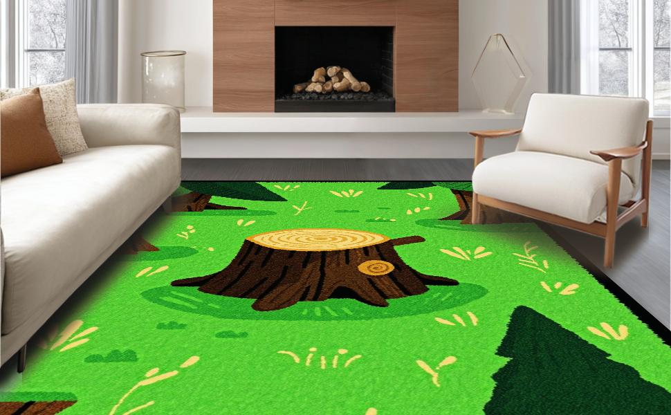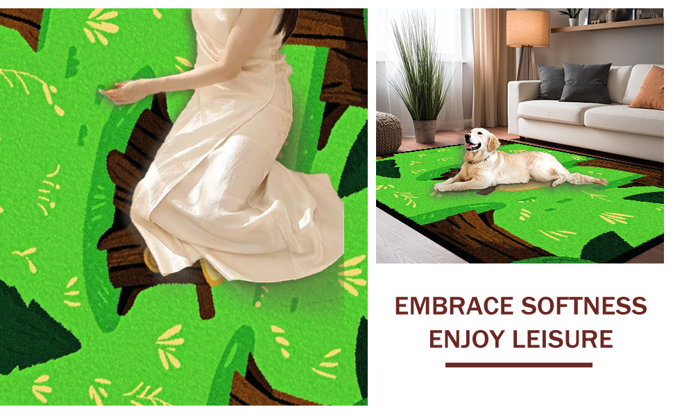 Ultra Soft Area Rug, Non Slip, Stain Resistant, Washable Area Rugs for Living Room, Bedroom, Happy Summer Camping Vibes(Green) Overview: