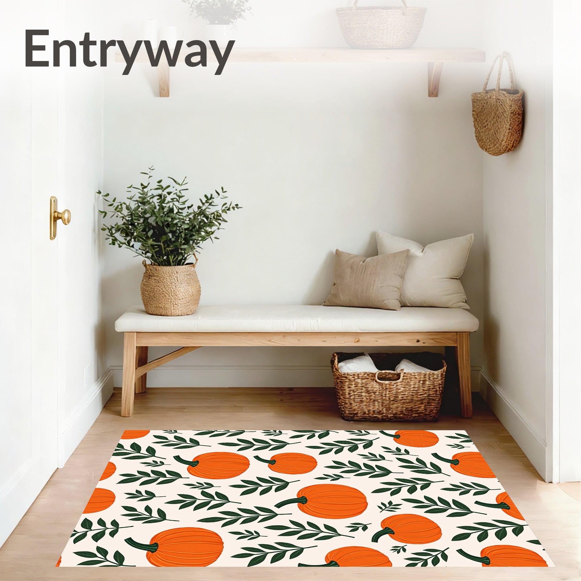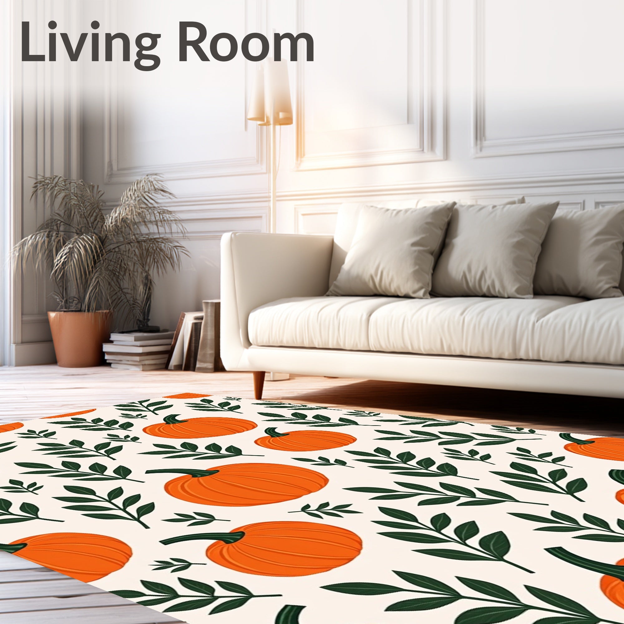 Ultra Soft Area Rug, Non Slip, Stain Resistant, Washable Area Rugs for Living Room, Bedroom, Harvest Foliage Pathway Decoration With Pumpkin Patch Motif(Orange) Overview: