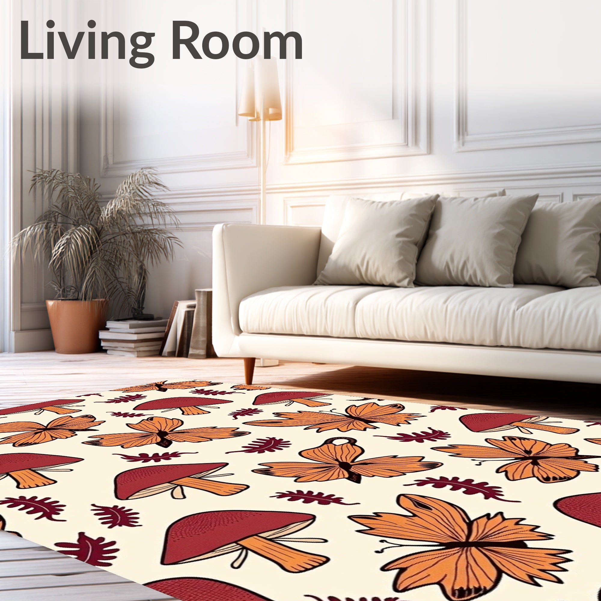 Ultra Soft Area Rug, Non Slip, Stain Resistant, Washable Area Rugs for Living Room, Bedroom, Harvest Garden Fluttering Caps Wonderland(Ivory) Overview: