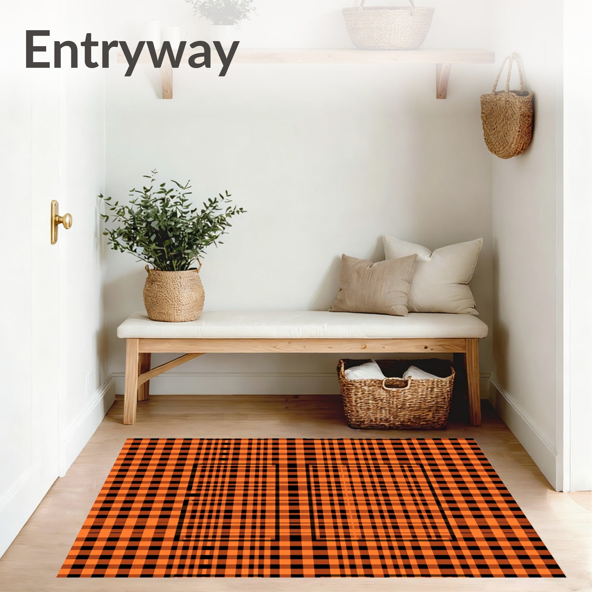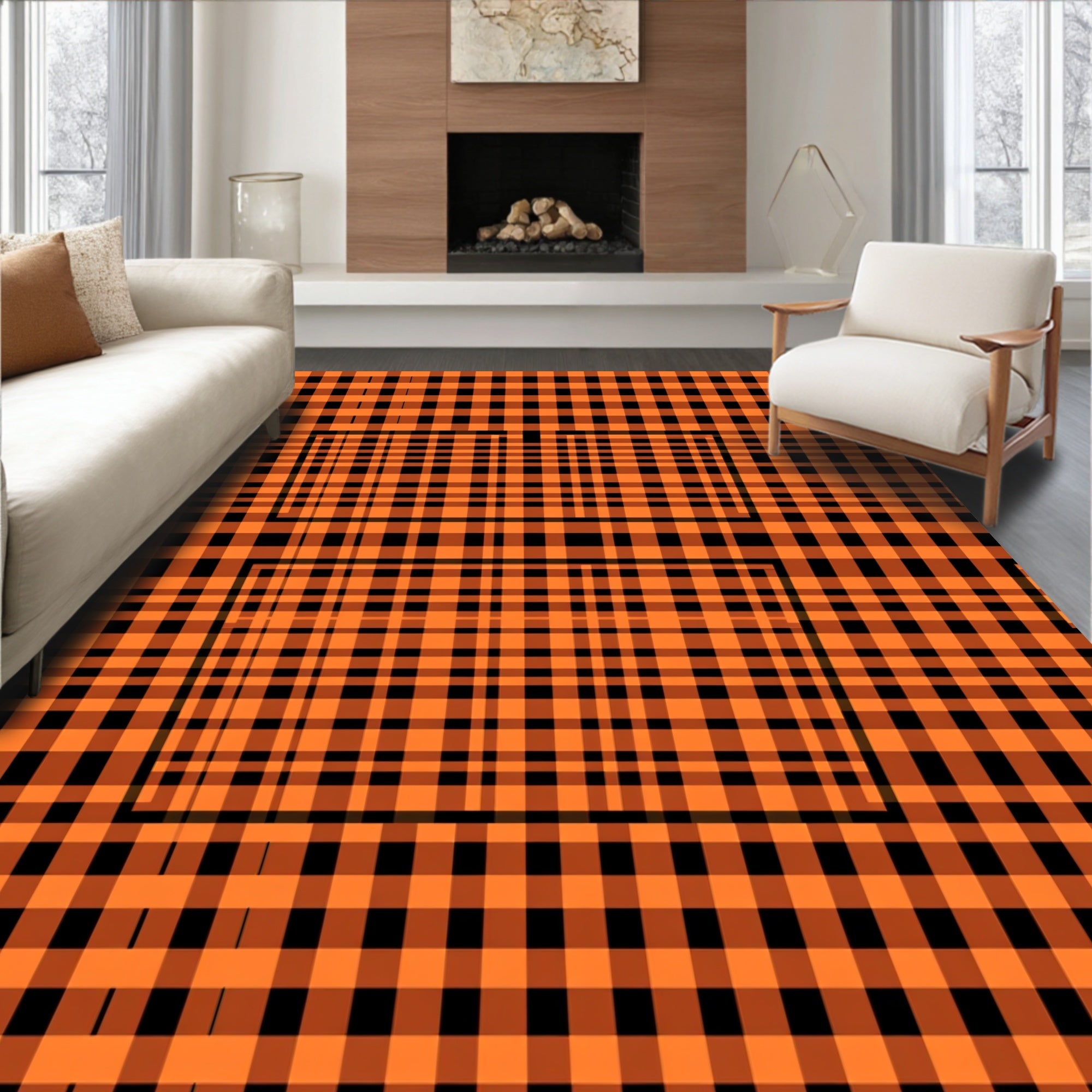 Ultra Soft Area Rug, Non Slip, Stain Resistant, Washable Area Rugs for Living Room, Bedroom, Harvest Gingham Grid Lattice Accent(Orange) Overview:
