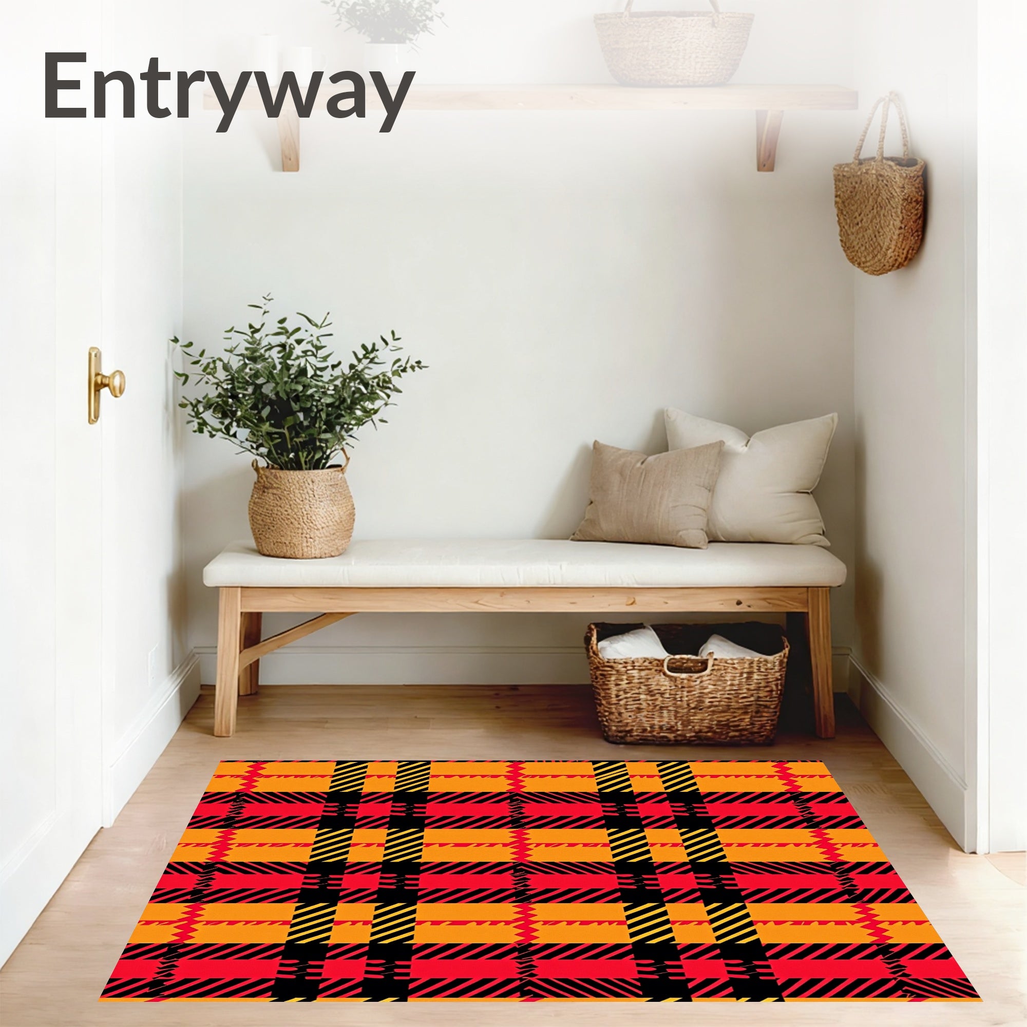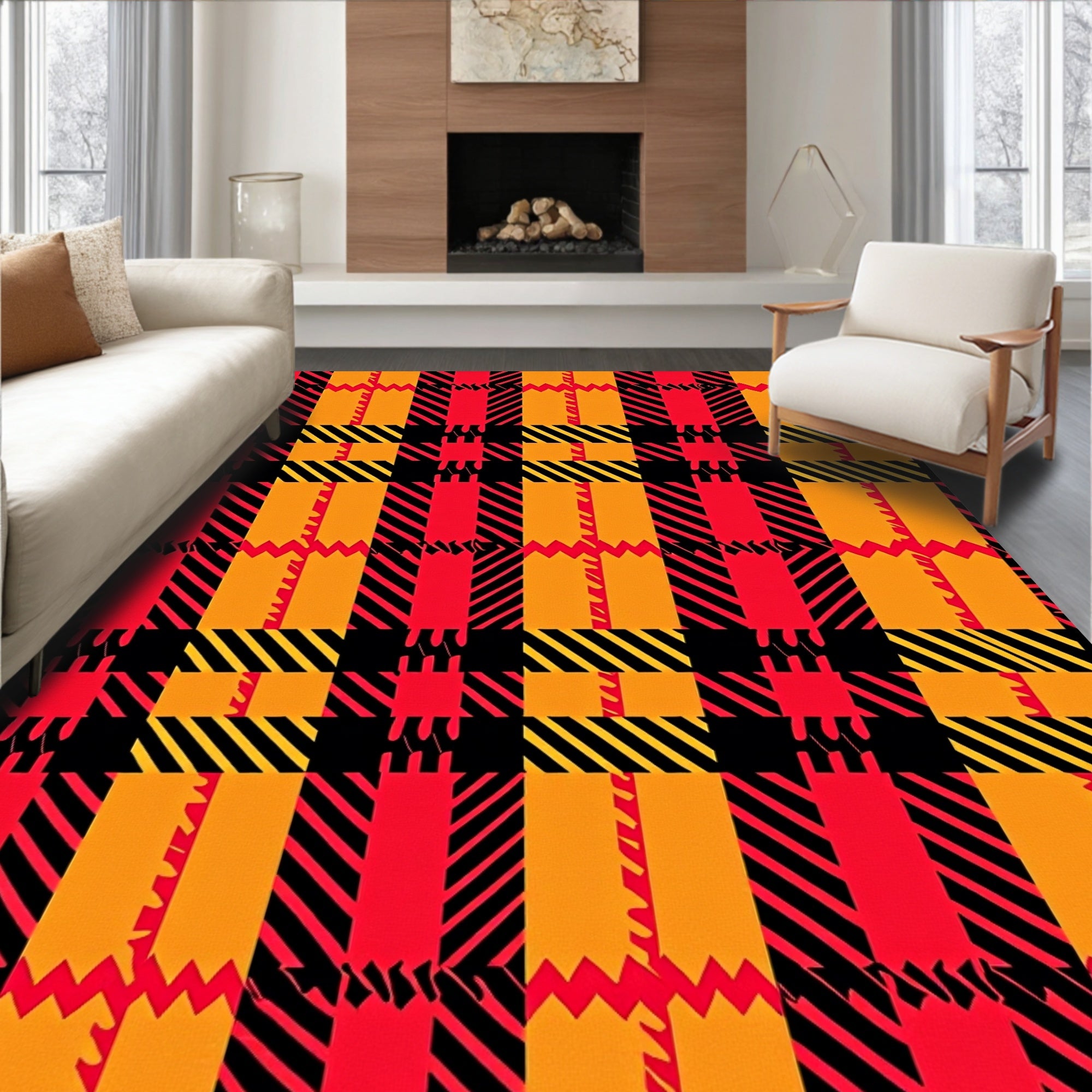 Ultra Soft Area Rug, Non Slip, Stain Resistant, Washable Area Rugs for Living Room, Bedroom, Harvest Gingham Plaid with Diagonal Crosshatch Motif(Red) Overview: