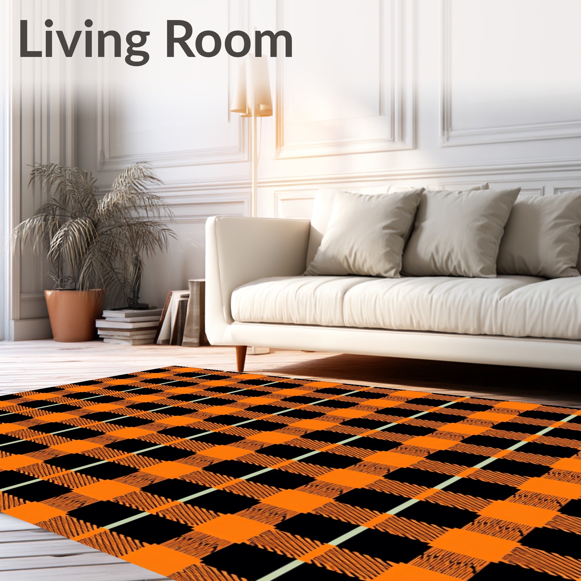 Ultra Soft Area Rug, Non Slip, Stain Resistant, Washable Area Rugs for Living Room, Bedroom, Harvest Lattice Farmhouse Plaid Checkered Autumn(Orange) Overview: