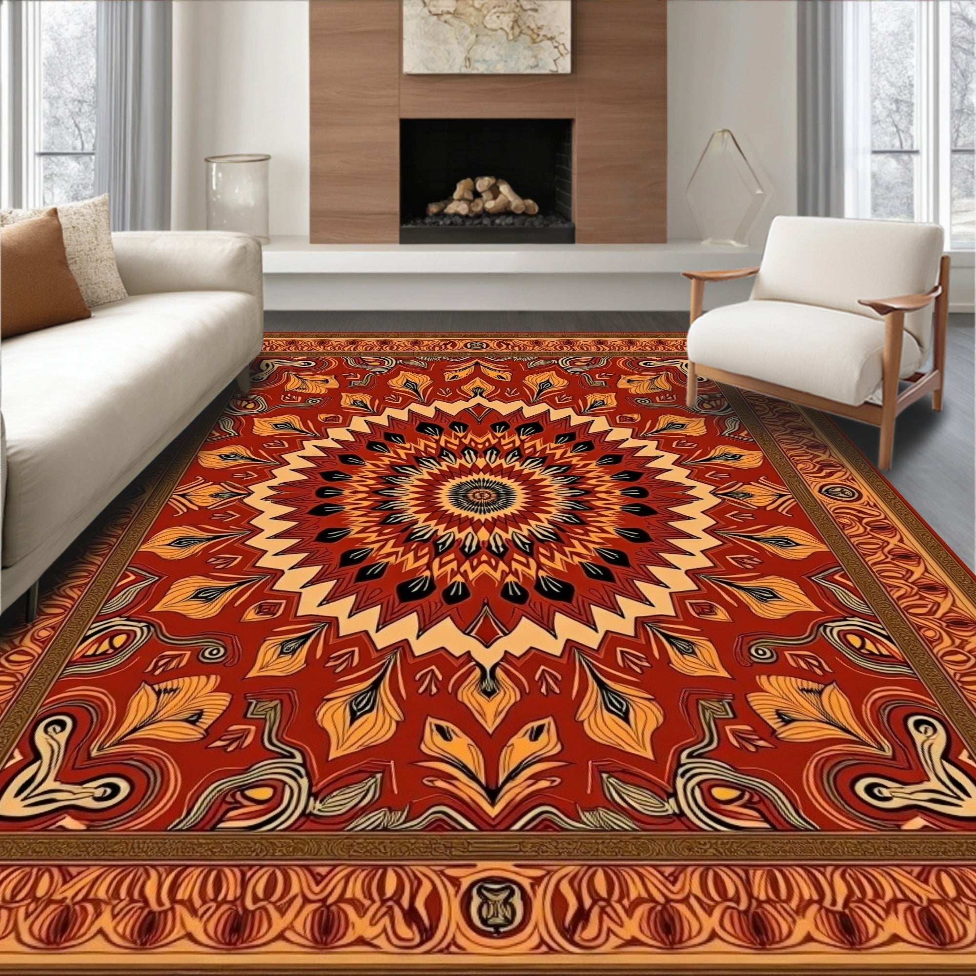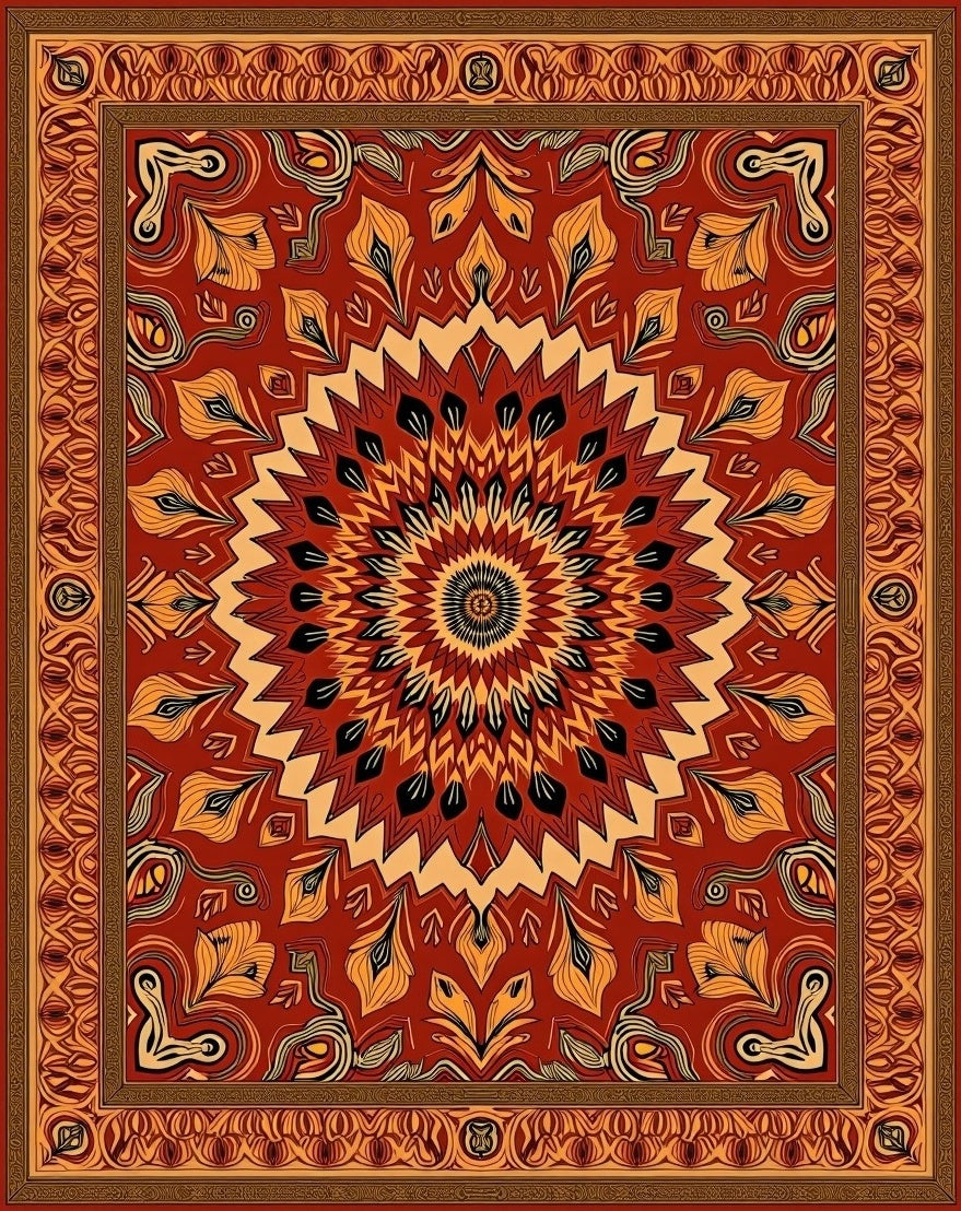 Ultra Soft Area Rug, Non Slip, Stain Resistant, Washable Area Rugs for Living Room, Bedroom, Harvest Moon Boho Tapestry Design with Autumn Leaf Motifs(Red) Overview: