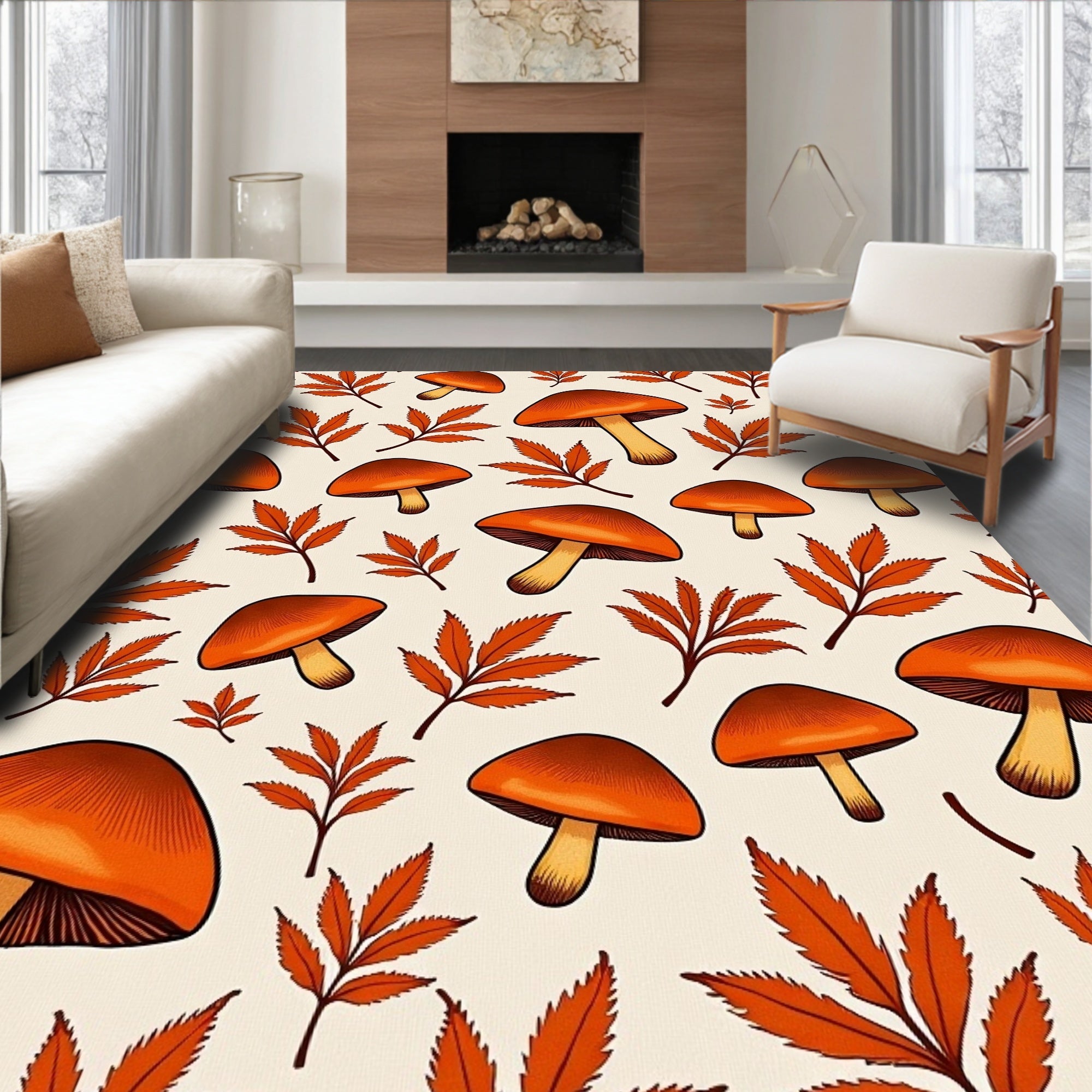Ultra Soft Area Rug, Non Slip, Stain Resistant, Washable Area Rugs for Living Room, Bedroom, Harvest Season Collection with Autumn Leaves Motif(Orange) Overview:
