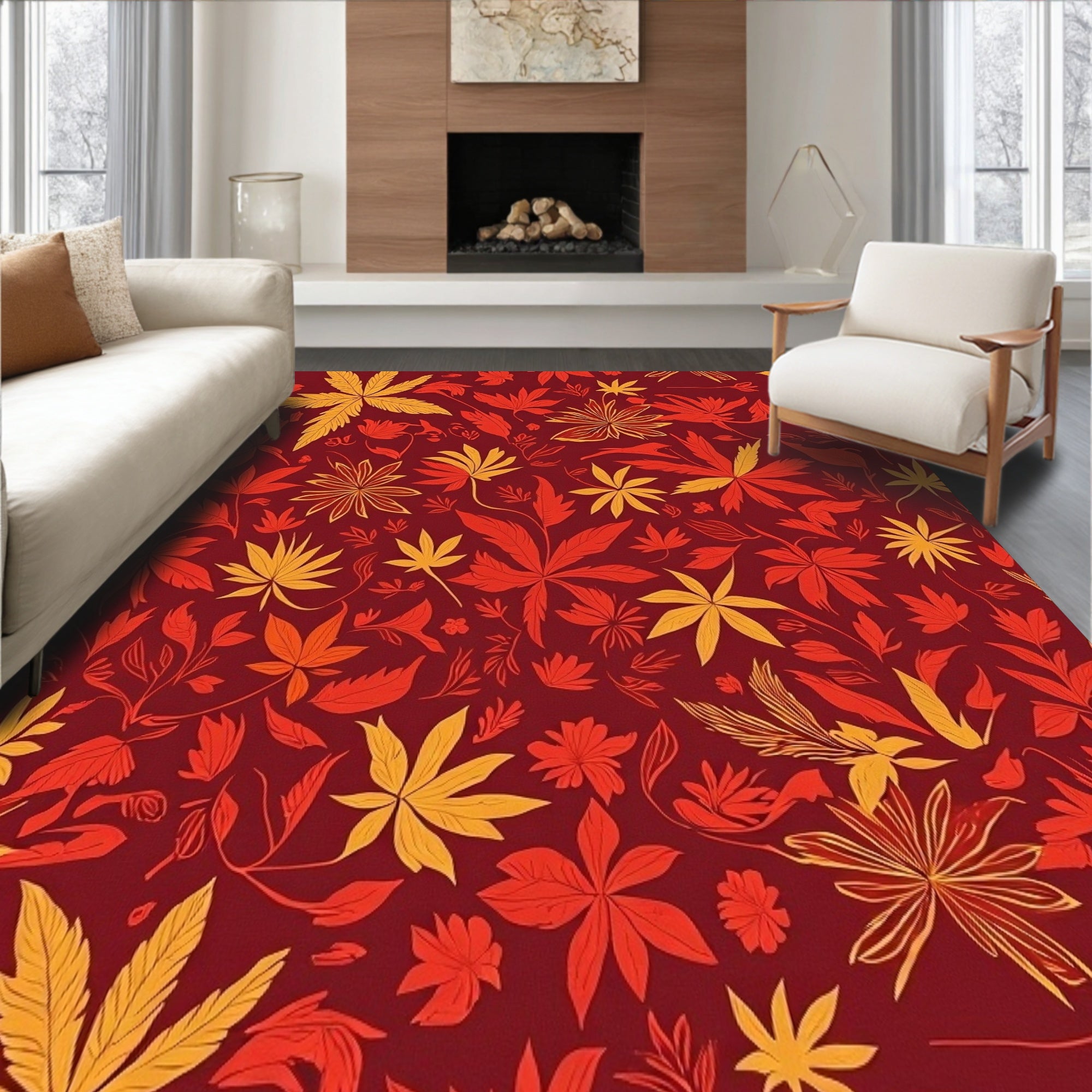 Ultra Soft Area Rug, Non Slip, Stain Resistant, Washable Area Rugs for Living Room, Bedroom, Harvest Wilderness Symphony(Red) Overview: