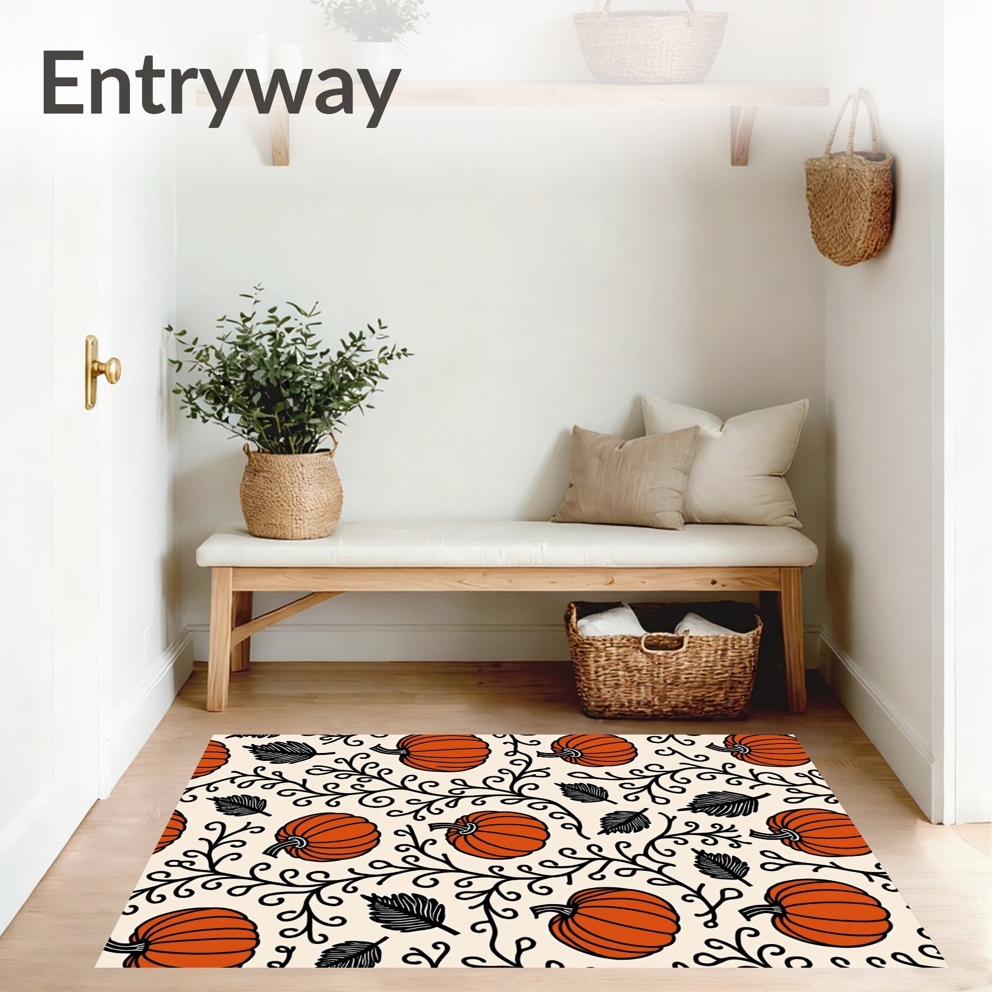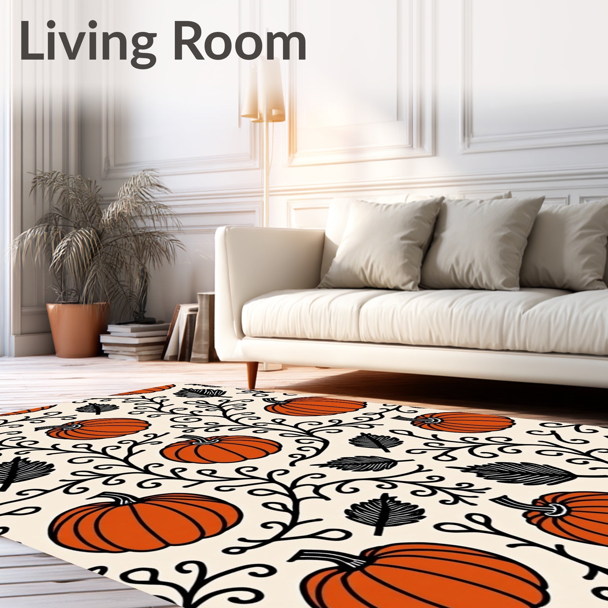 Ultra Soft Area Rug, Non Slip, Stain Resistant, Washable Area Rugs for Living Room, Bedroom, Haunted Autumn Harvest Pumpkin Patch Half Moon Entry with Spiders(Orange) Overview: