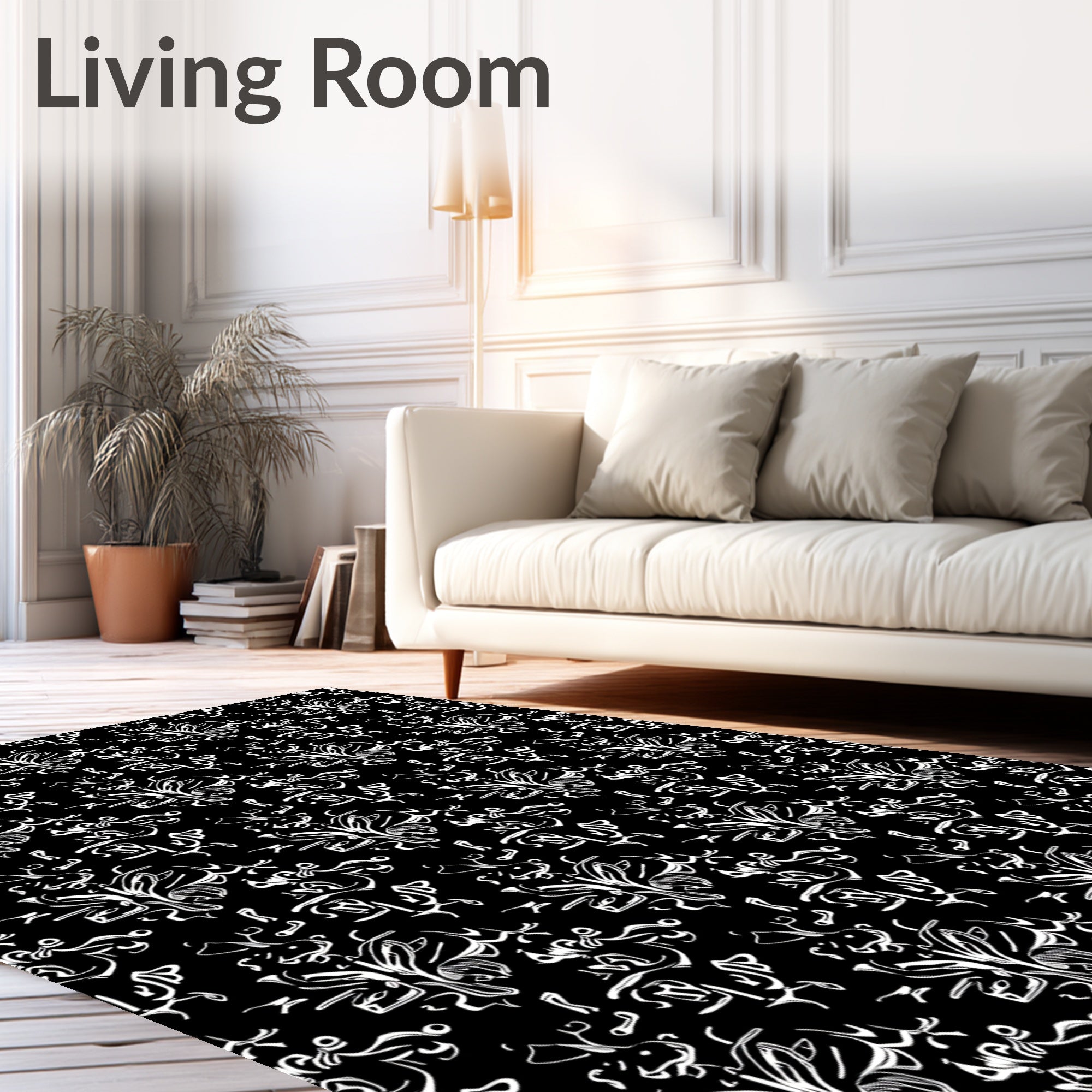 Ultra Soft Area Rug, Non Slip, Stain Resistant, Washable Area Rugs for Living Room, Bedroom, Haunted Ghostly Spirits Floating Shape Entry(Black) Overview: