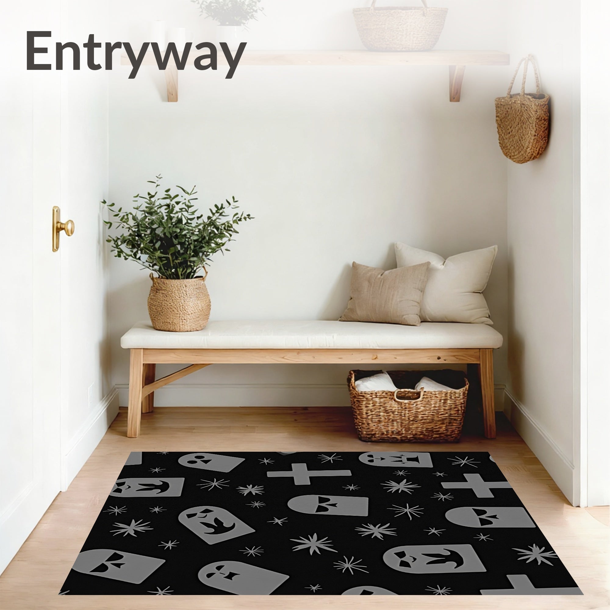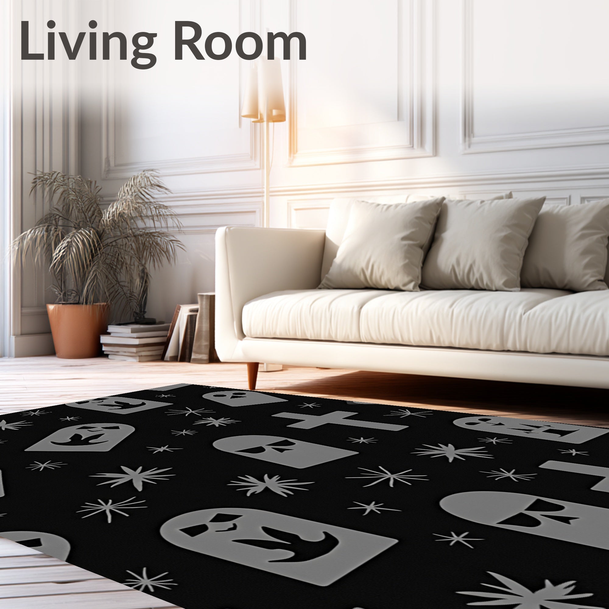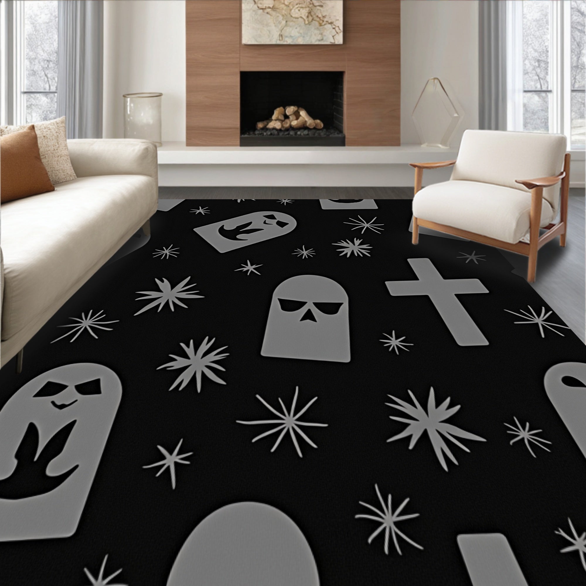 Ultra Soft Area Rug, Non Slip, Stain Resistant, Washable Area Rugs for Living Room, Bedroom, Haunted Graveyard Tombstone Halloween Novelty Accent(Black) Overview: