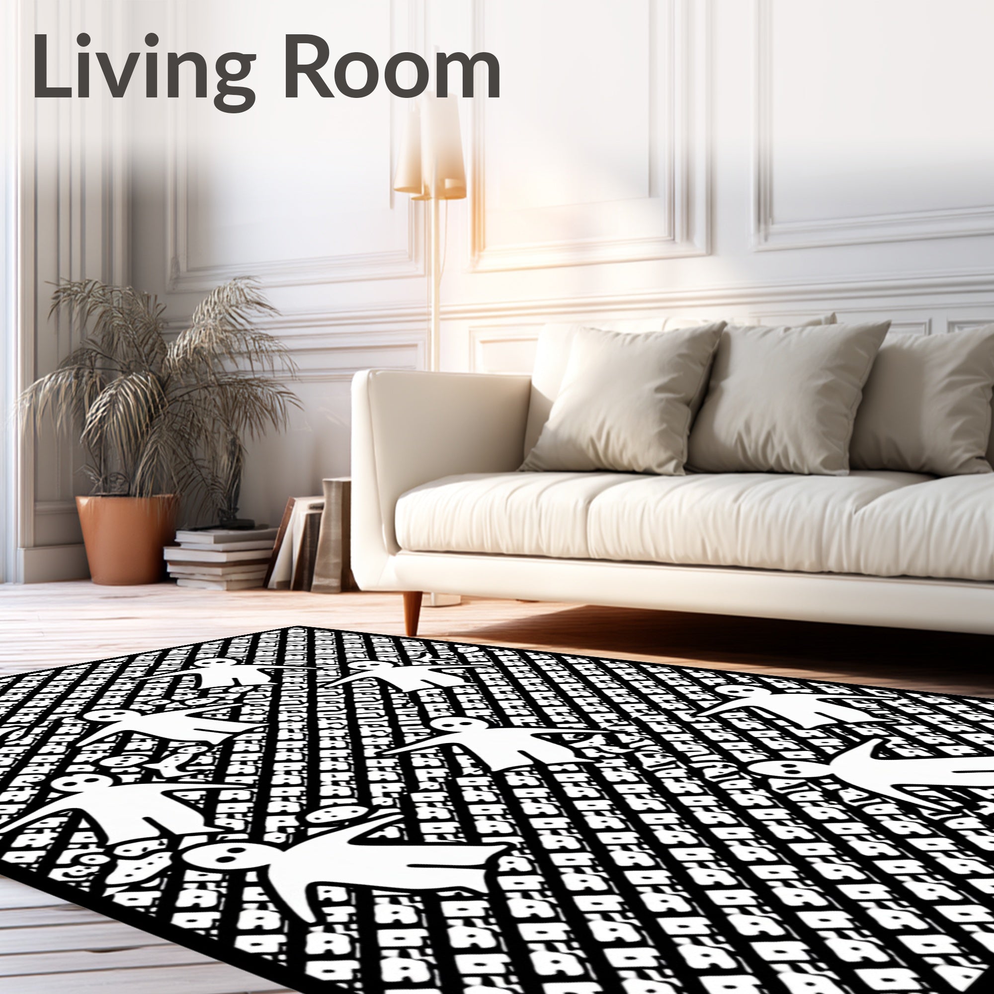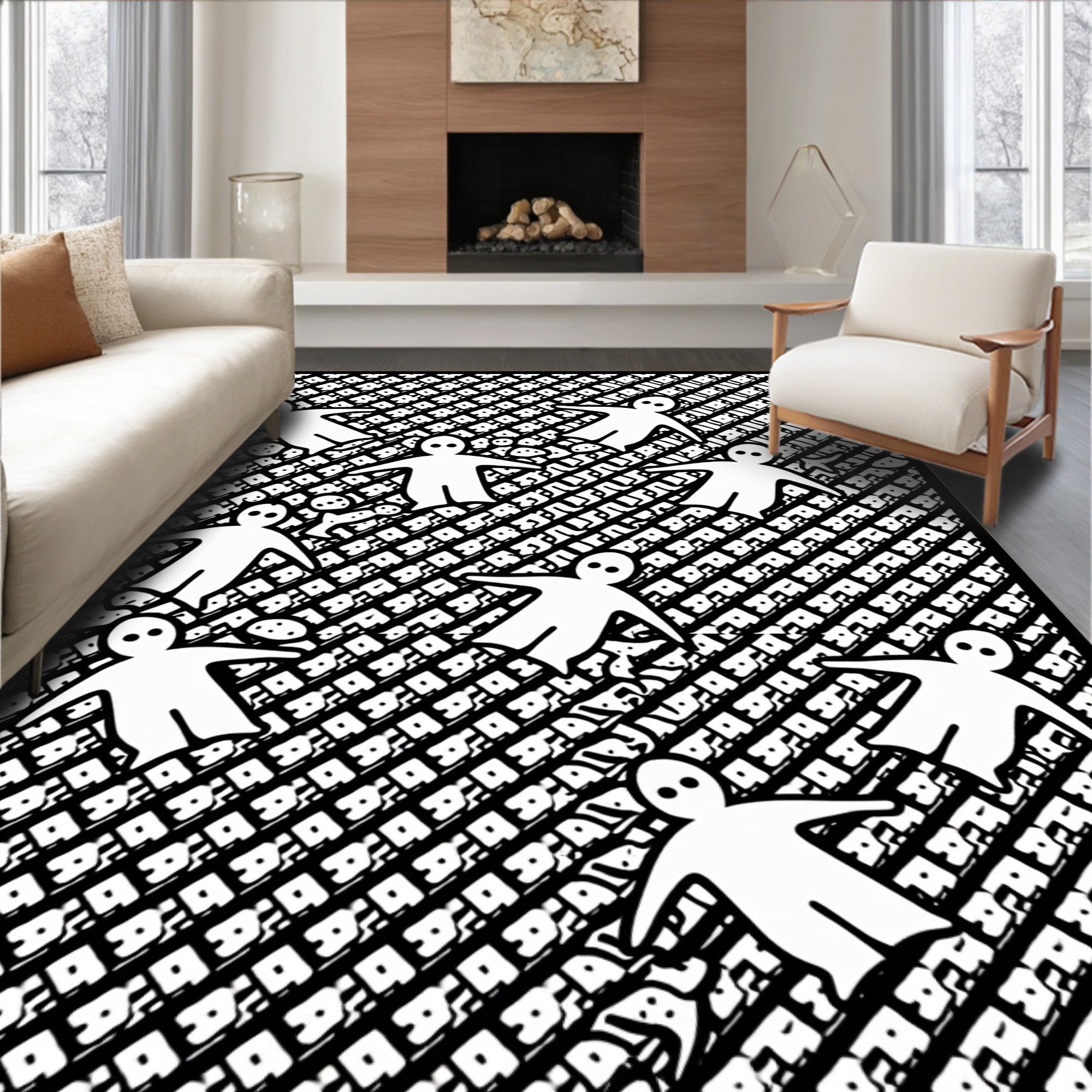 Ultra Soft Area Rug, Non Slip, Stain Resistant, Washable Area Rugs for Living Room, Bedroom, Haunted Herringbone Welcome with Spectral Design(Black) Overview: