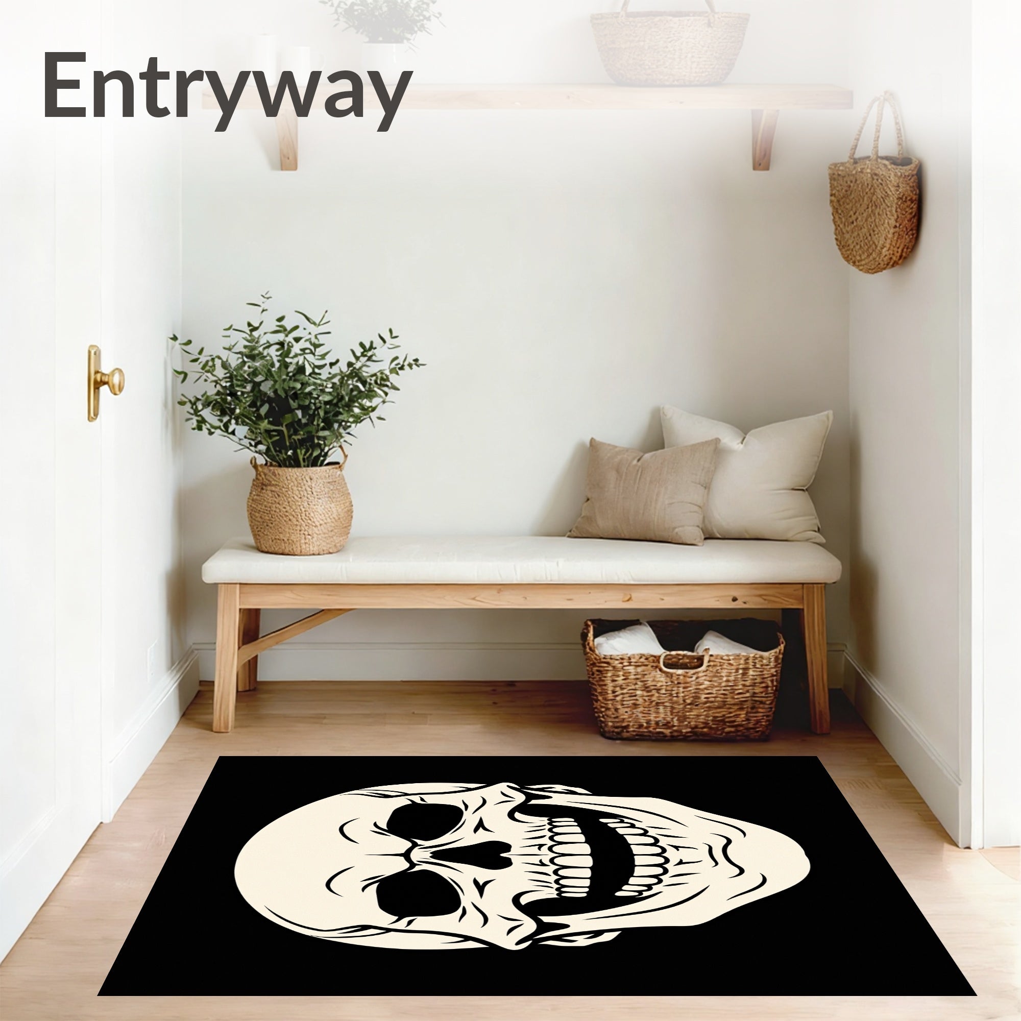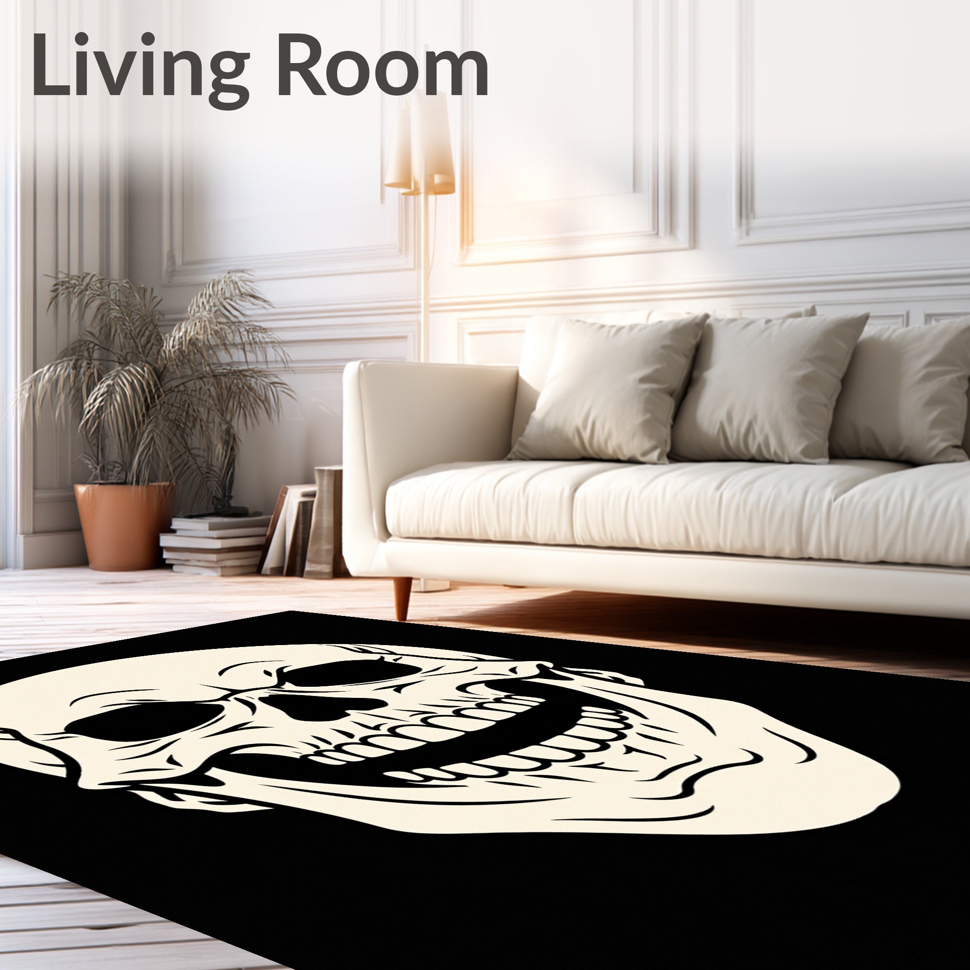 Ultra Soft Area Rug, Non Slip, Stain Resistant, Washable Area Rugs for Living Room, Bedroom, Haunting Bony Face Non Slip Bathtub Cartoon Artwork(Black) Overview: