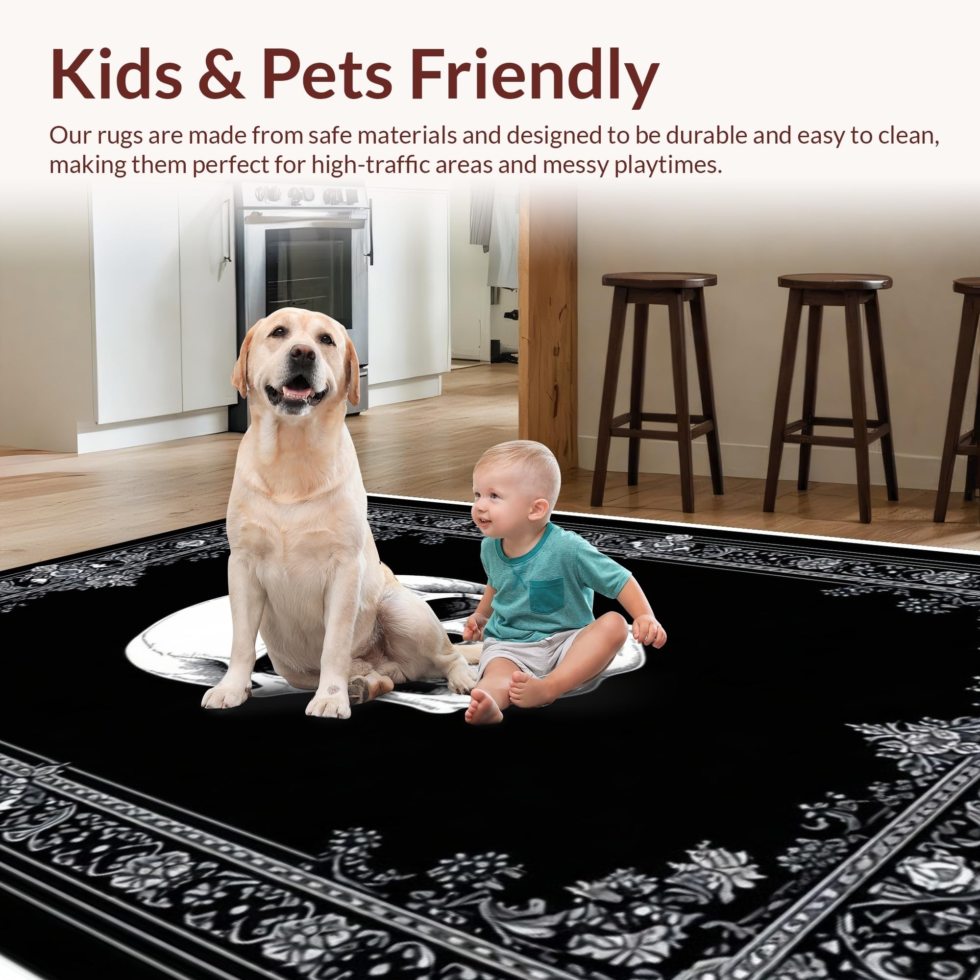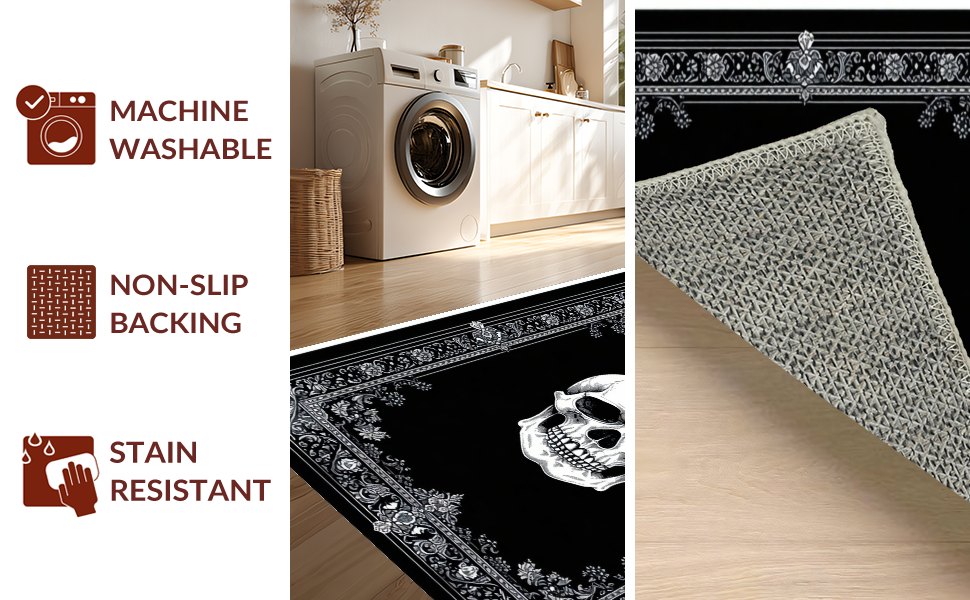 Ultra Soft Area Rug, Non Slip, Stain Resistant, Washable Area Rugs for Living Room, Bedroom, Hauntingly Artistic Gothic Composition(Black) Overview: