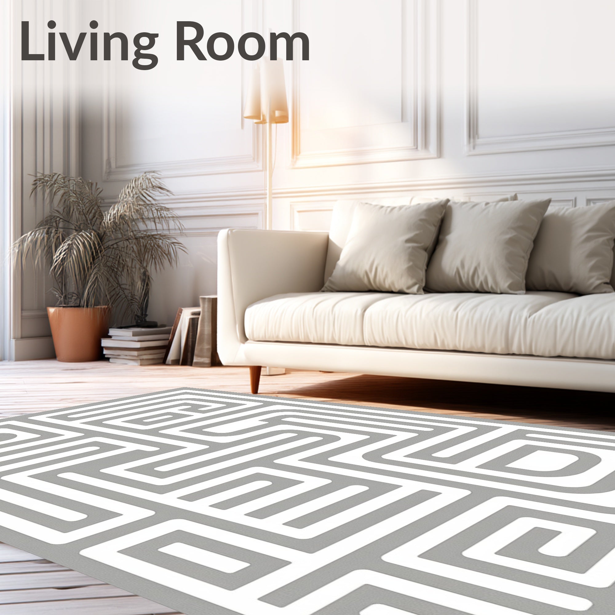 Ultra Soft Area Rug, Non Slip, Stain Resistant, Washable Area Rugs for Living Room, Bedroom, Haze Maze Interlocking Abstract Contemporary Minimalist Lines(Gray) Overview:
