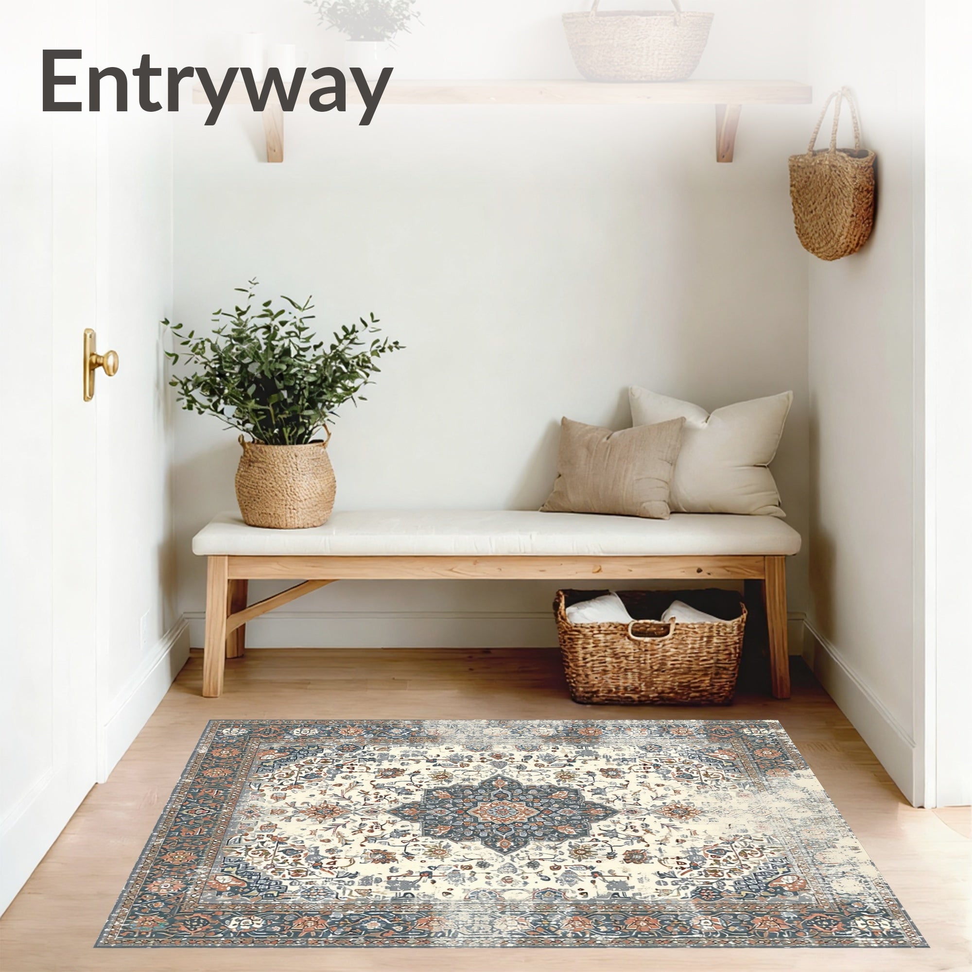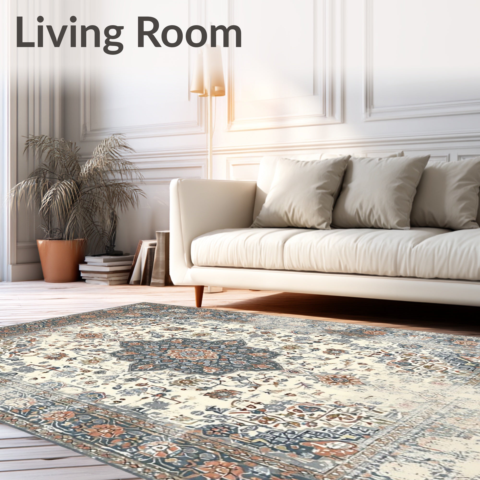 Ultra Soft Area Rug, Non Slip, Stain Resistant, Washable Area Rugs for Living Room, Bedroom, Hazelnut & Dove Grey with Timeworn Traditional Medallion(Beige) Overview: