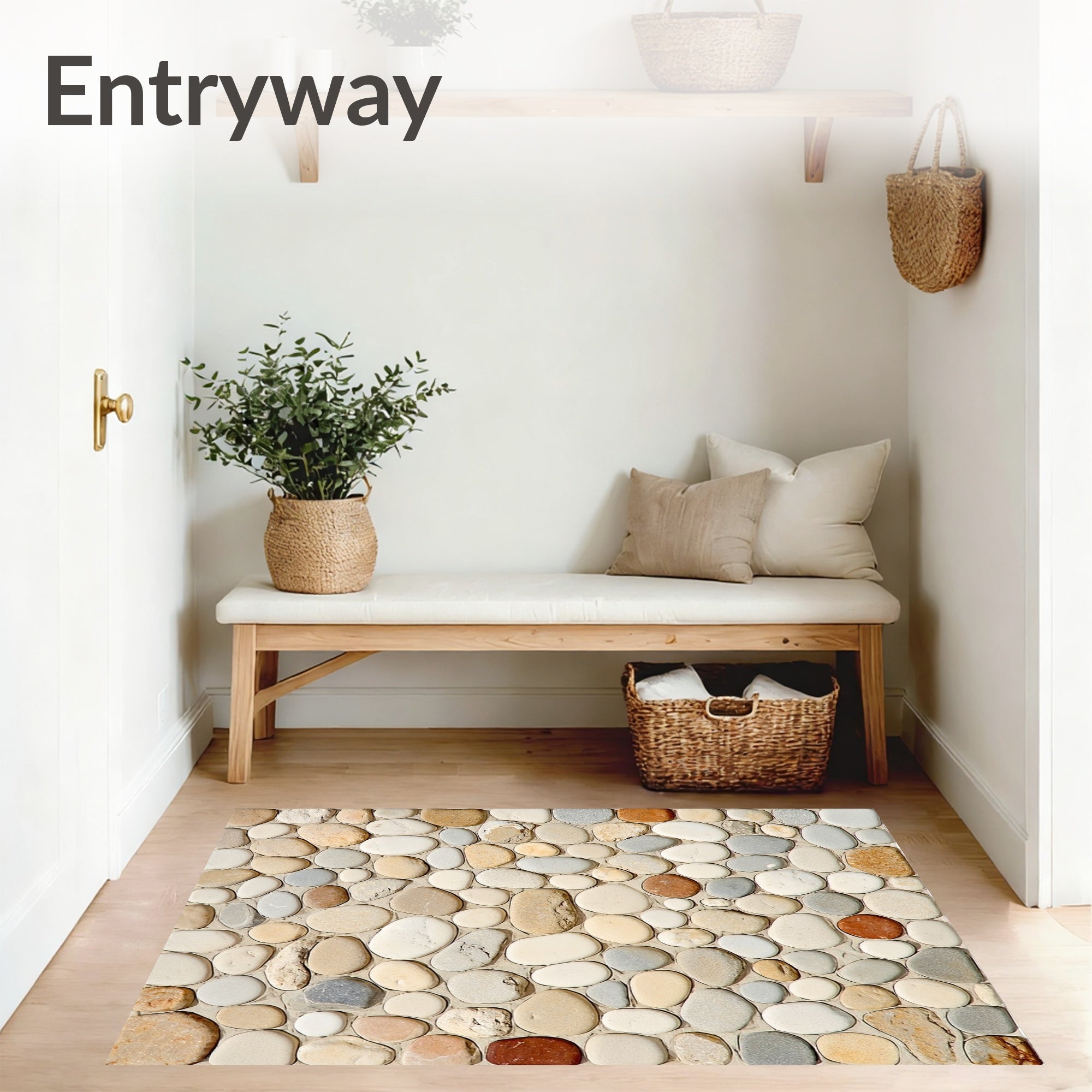 Flatwoven High Traffic Area Rug, Serenity Featuring Abstract Pebble Mosaic and Warm Neutral Shades, Non Slip, Stain Resistant, Washable Area Rugs for Living Room, Bedroom (Beige) Overview: