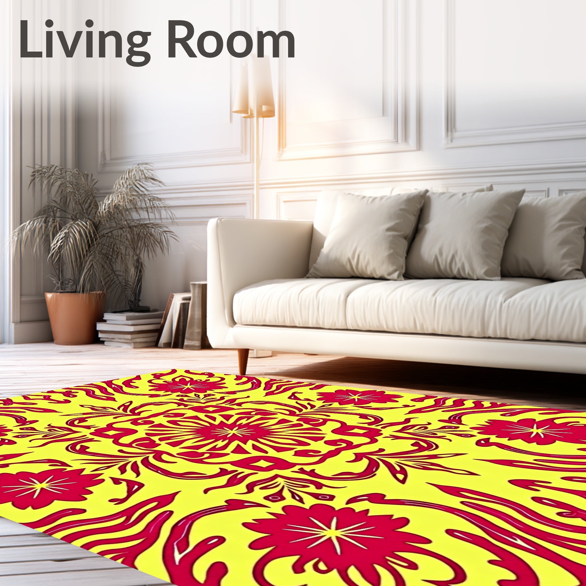 Ultra Soft Area Rug, Non Slip, Stain Resistant, Washable Area Rugs for Living Room, Bedroom, Heat Boho Flower Power Distressed Vintage Floor(Yellow) Overview: