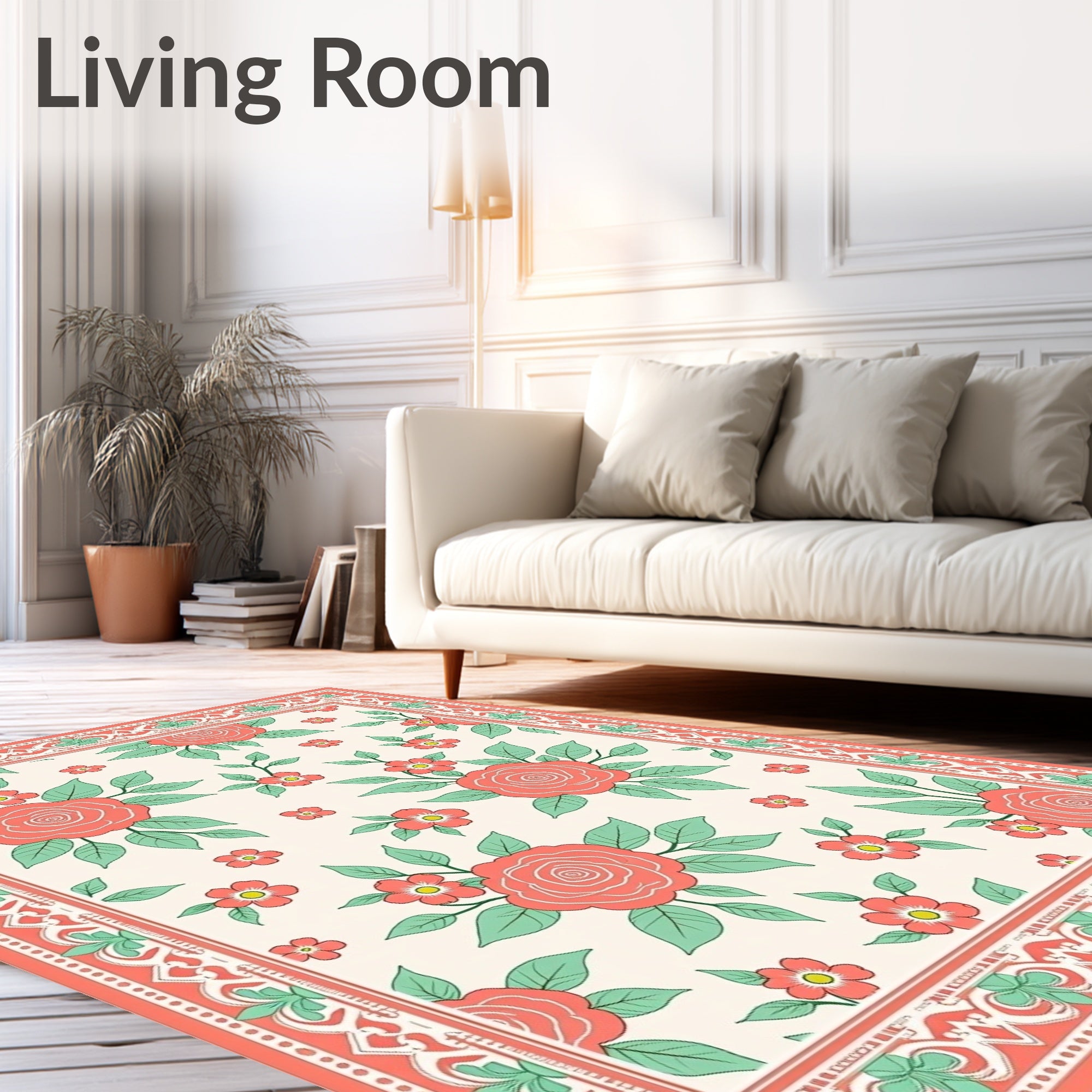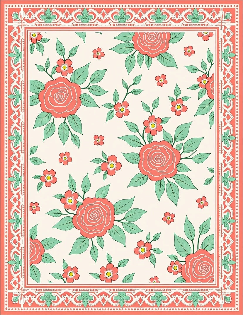 Ultra Soft Area Rug, Non Slip, Stain Resistant, Washable Area Rugs for Living Room, Bedroom, Heirloom Floral Tapestry with Nostalgic Spring Garden Imagery(Coral) Overview: