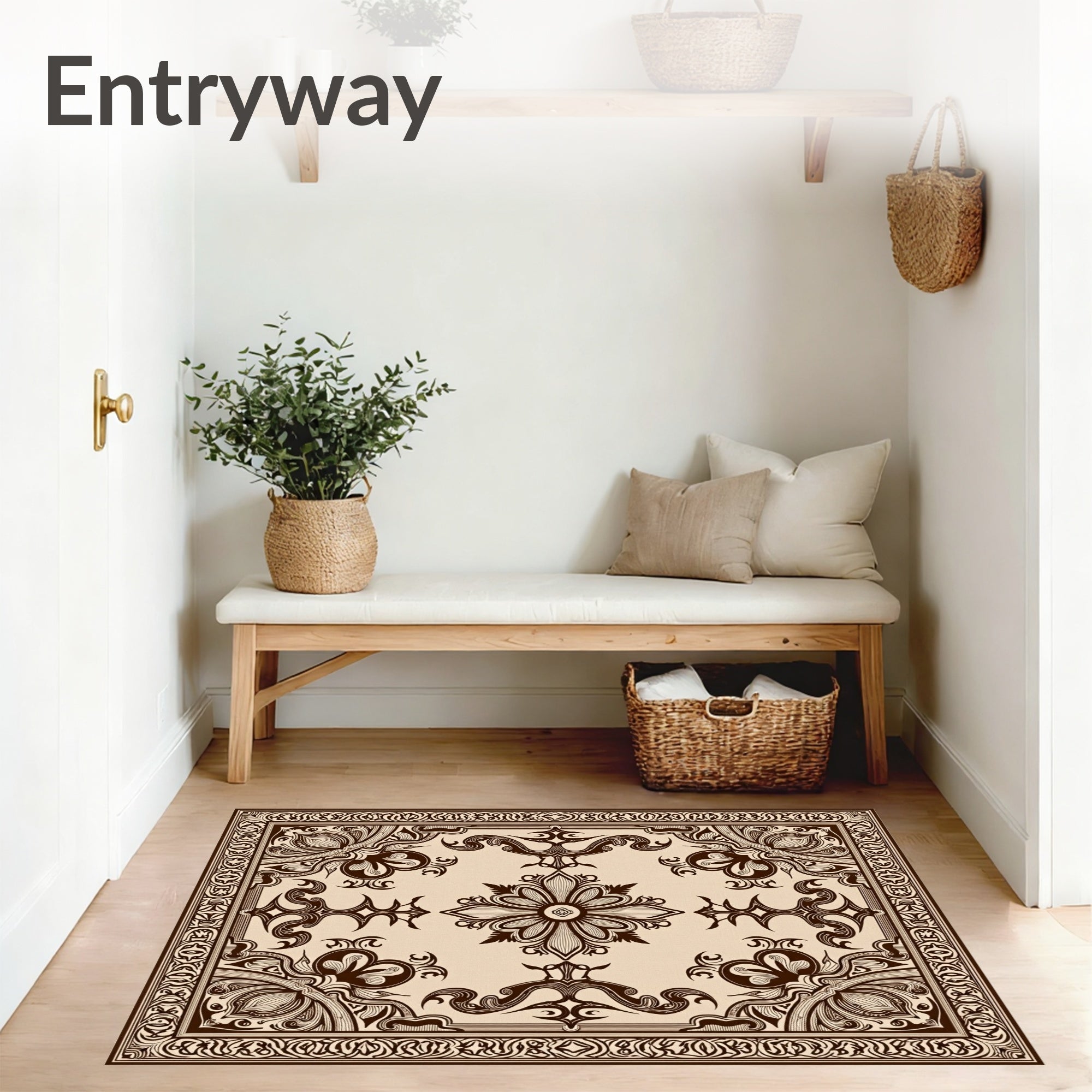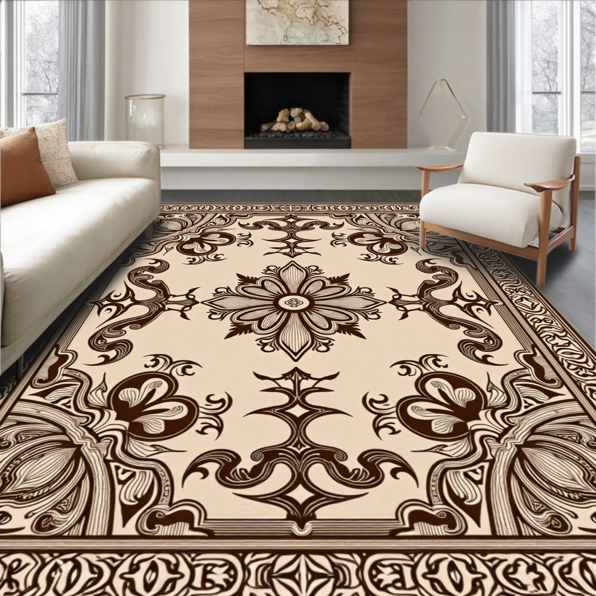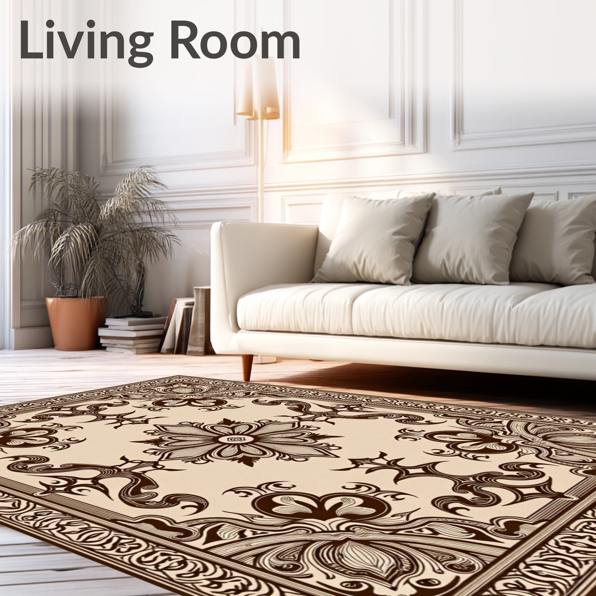 Ultra Soft Area Rug, Non Slip, Stain Resistant, Washable Area Rugs for Living Room, Bedroom, Heritage Arabesque Scroll with Symmetrical Filigree Detailing(Beige) Overview: