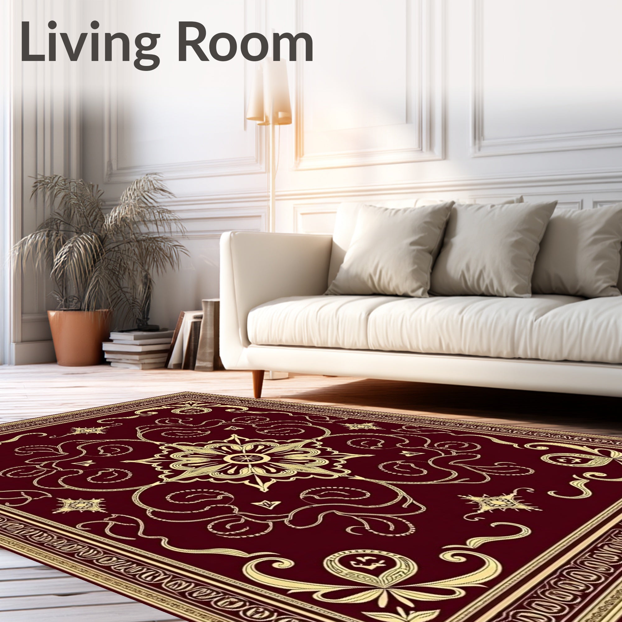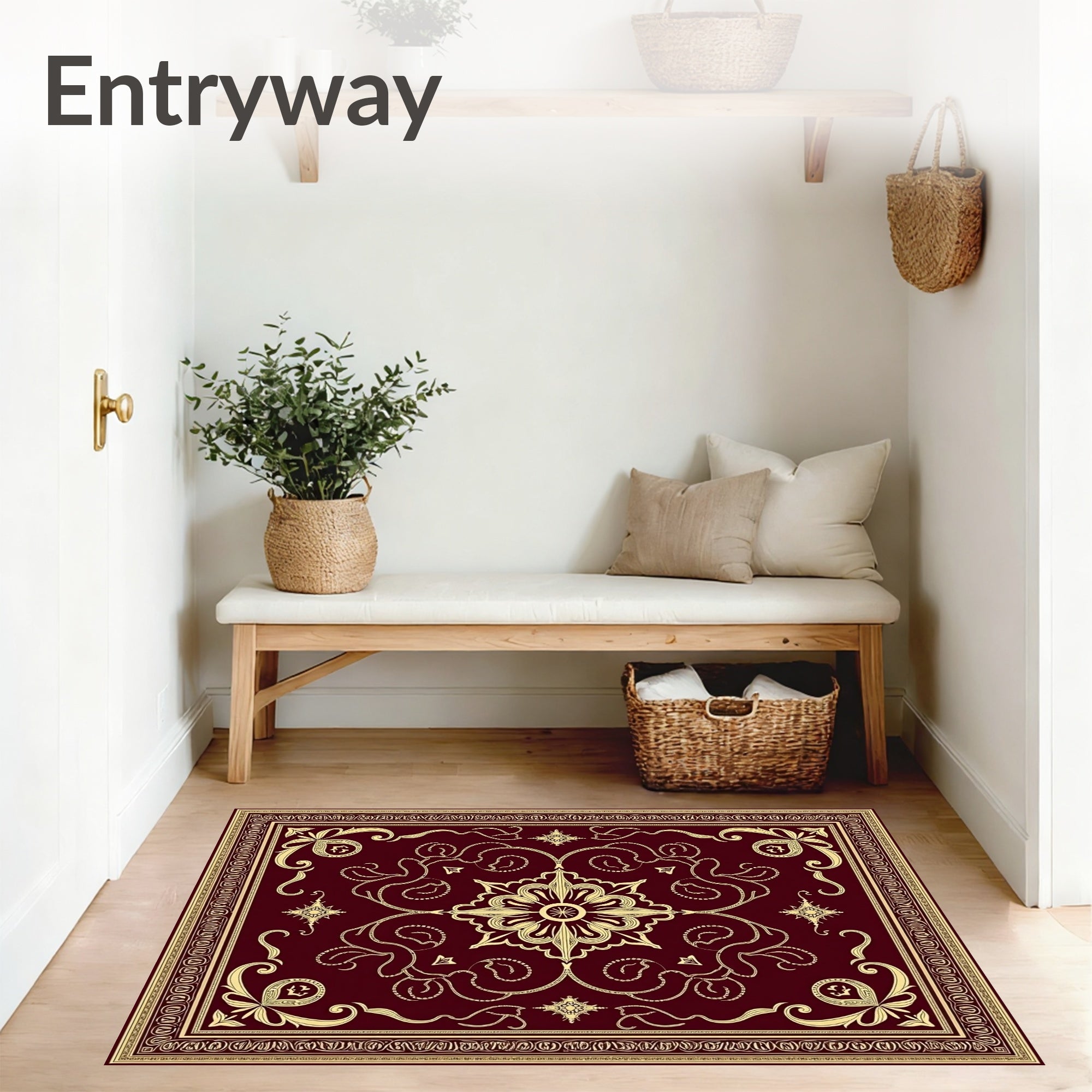 Ultra Soft Area Rug, Non Slip, Stain Resistant, Washable Area Rugs for Living Room, Bedroom, Heritage Arabesque Splendor Heirloom(Red) Overview: