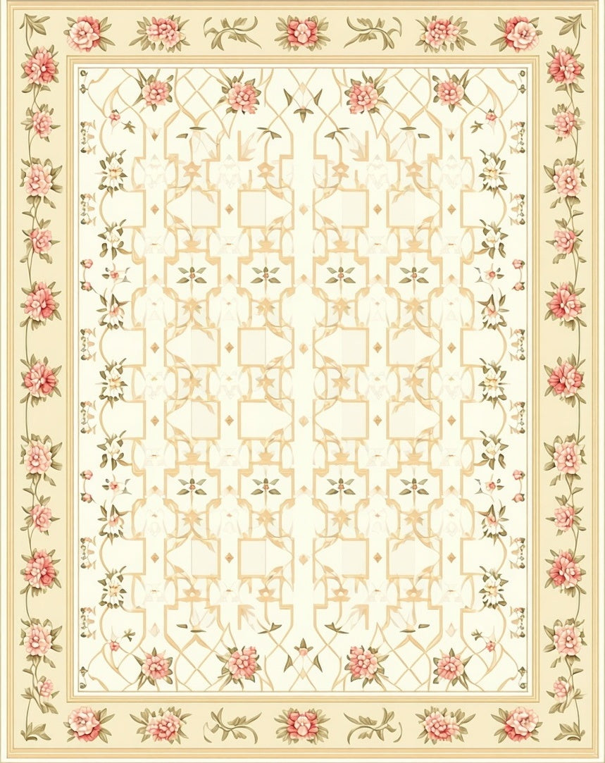 Heritage Collection Oval with Traditional Floral Lattice(Beige)