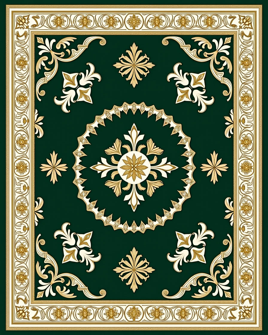 Heritage Damask Motif with Ornamental Arabesque Detailing(Green)