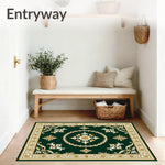 Ultra Soft Area Rug, Non Slip, Stain Resistant, Washable Area Rugs for Living Room, Bedroom, Heritage Damask Motif with Ornamental Arabesque Detailing(Green) Overview:
