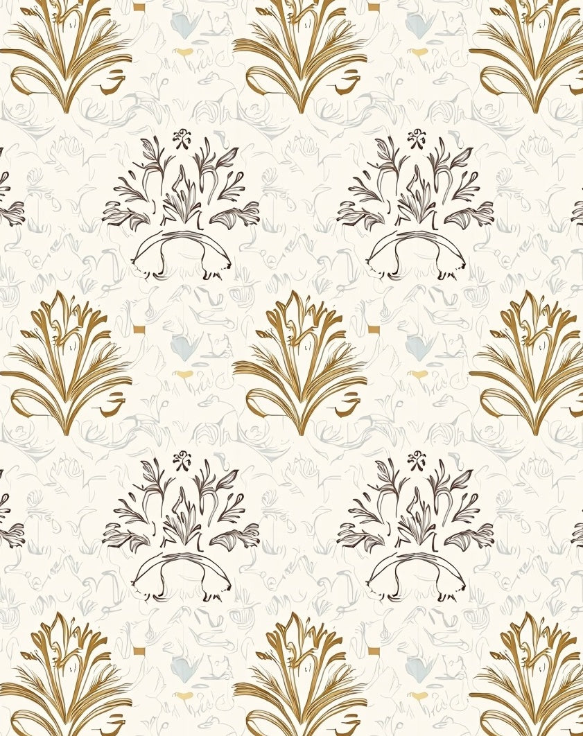 Heritage Damask Symmetrical Transitional Luxury Contemporary(Gold)
