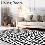 Ultra Soft Area Rug, Non Slip, Stain Resistant, Washable Area Rugs for Living Room, Bedroom, Heritage Farmhouse Interlocking Lattice(Black) Overview: