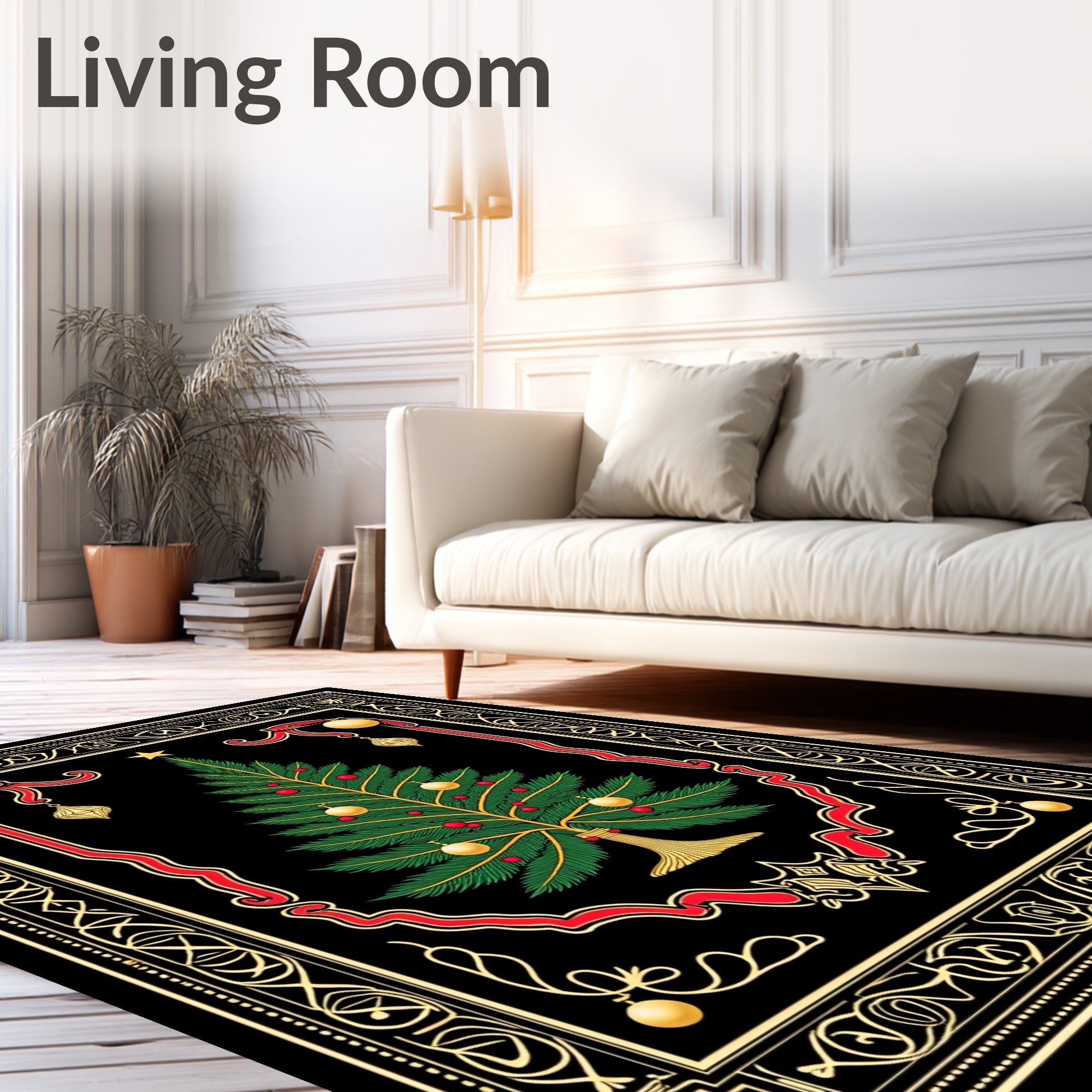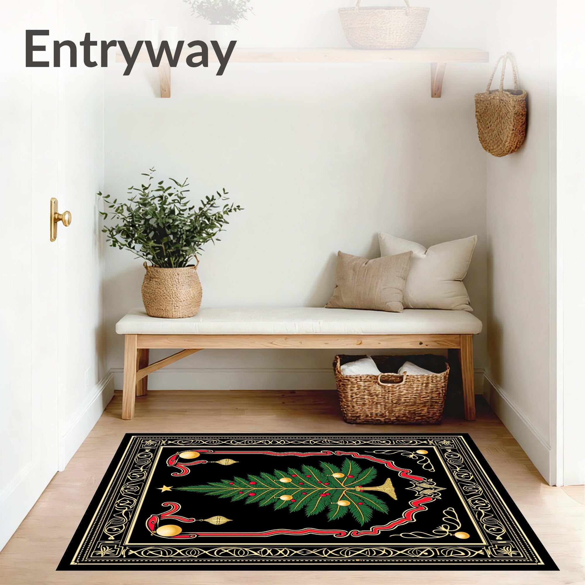 Ultra Soft Area Rug, Non Slip, Stain Resistant, Washable Area Rugs for Living Room, Bedroom, Heritage Holiday Heirloom Tannenbaum Treasure Collection(Green) Overview:
