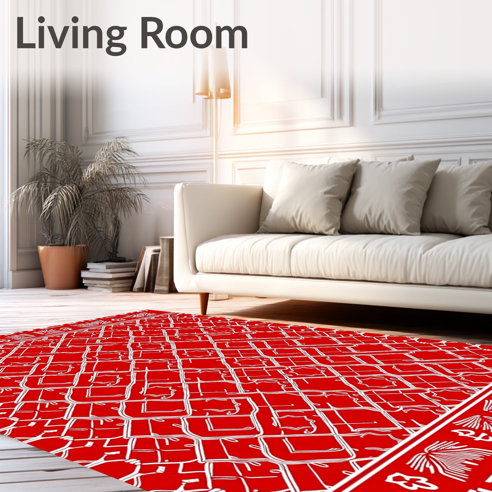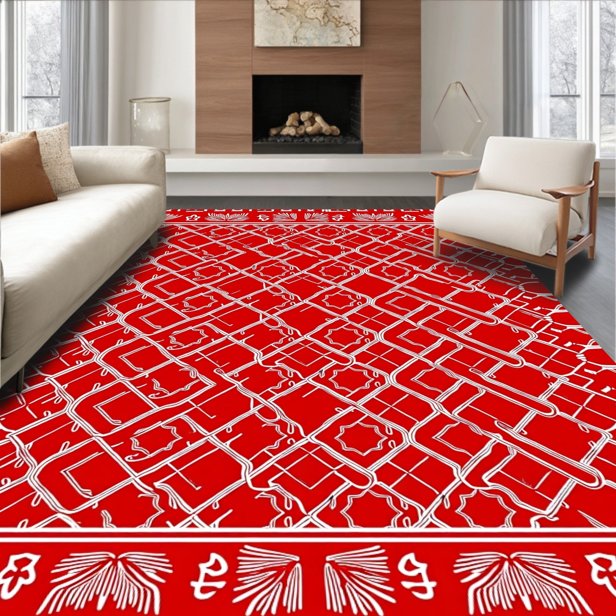 Ultra Soft Area Rug, Non Slip, Stain Resistant, Washable Area Rugs for Living Room, Bedroom, Heritage Holiday Lattice Plaid with Whimsical Scandi Ornaments(Red) Overview: