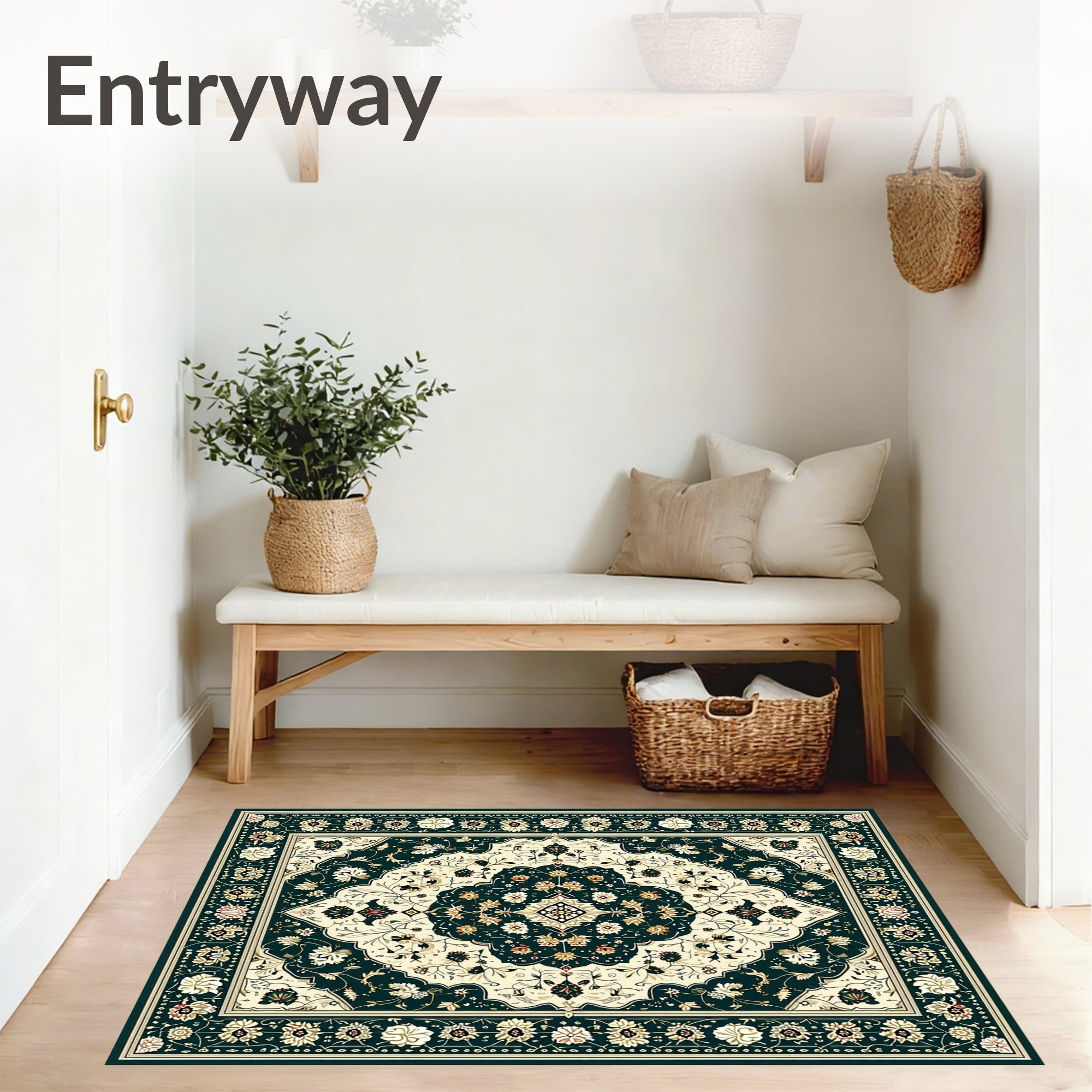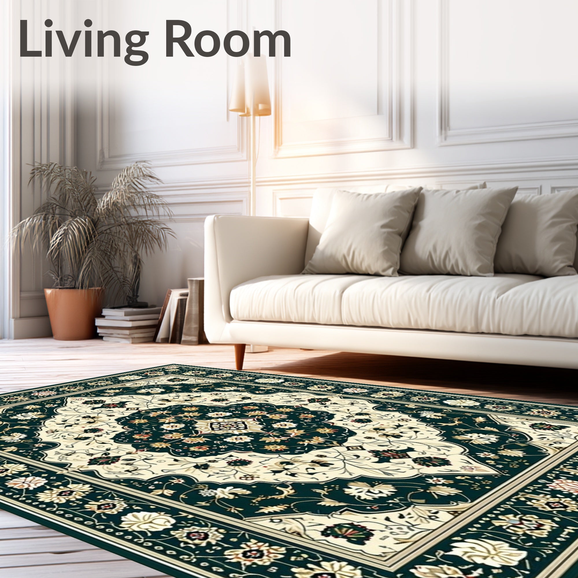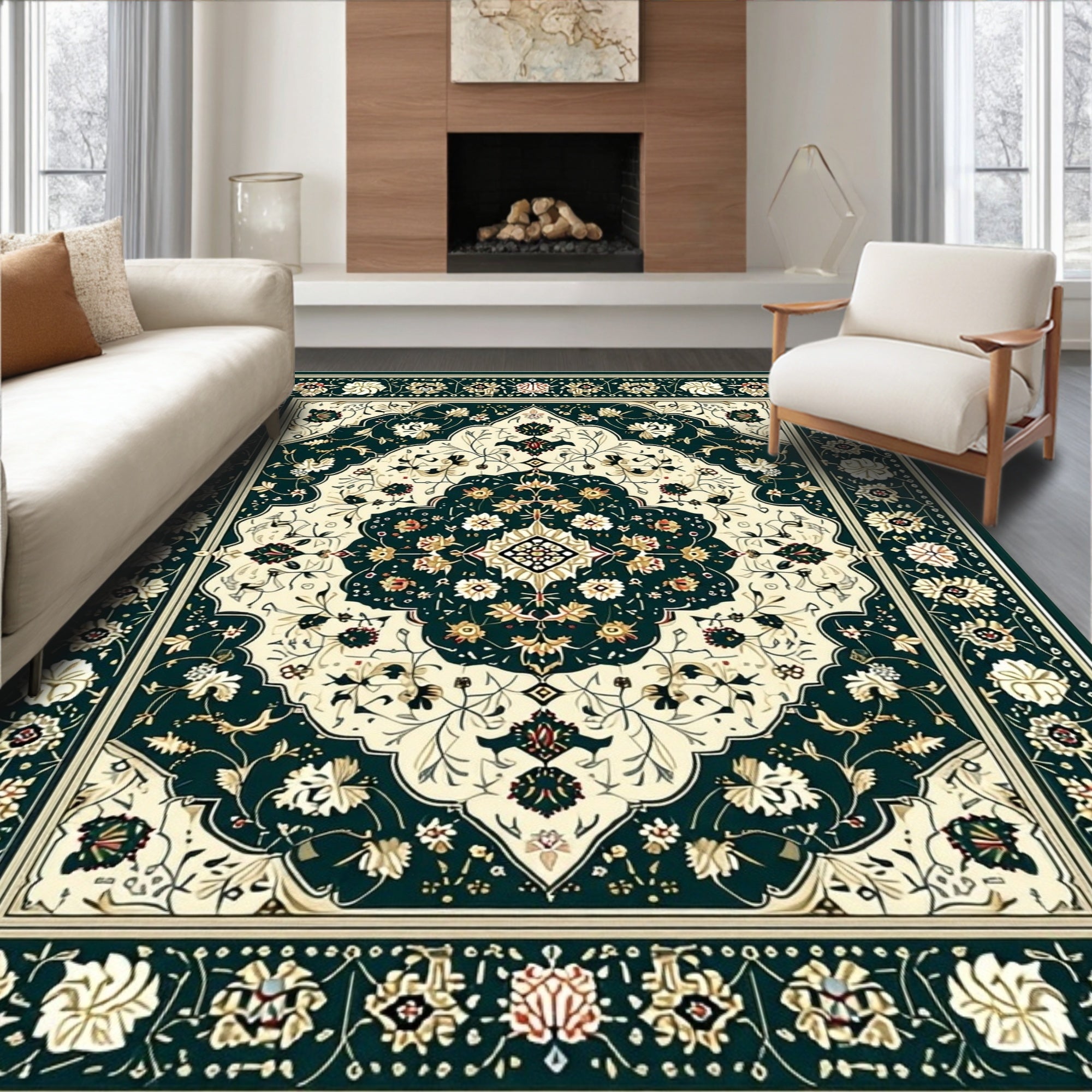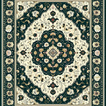 Ultra Soft Area Rug, Non Slip, Stain Resistant, Washable Area Rugs for Living Room, Bedroom, Heritage Medallion with Symmetrical Floral Motifs and Geometric Edges(Dark Green) Overview:
