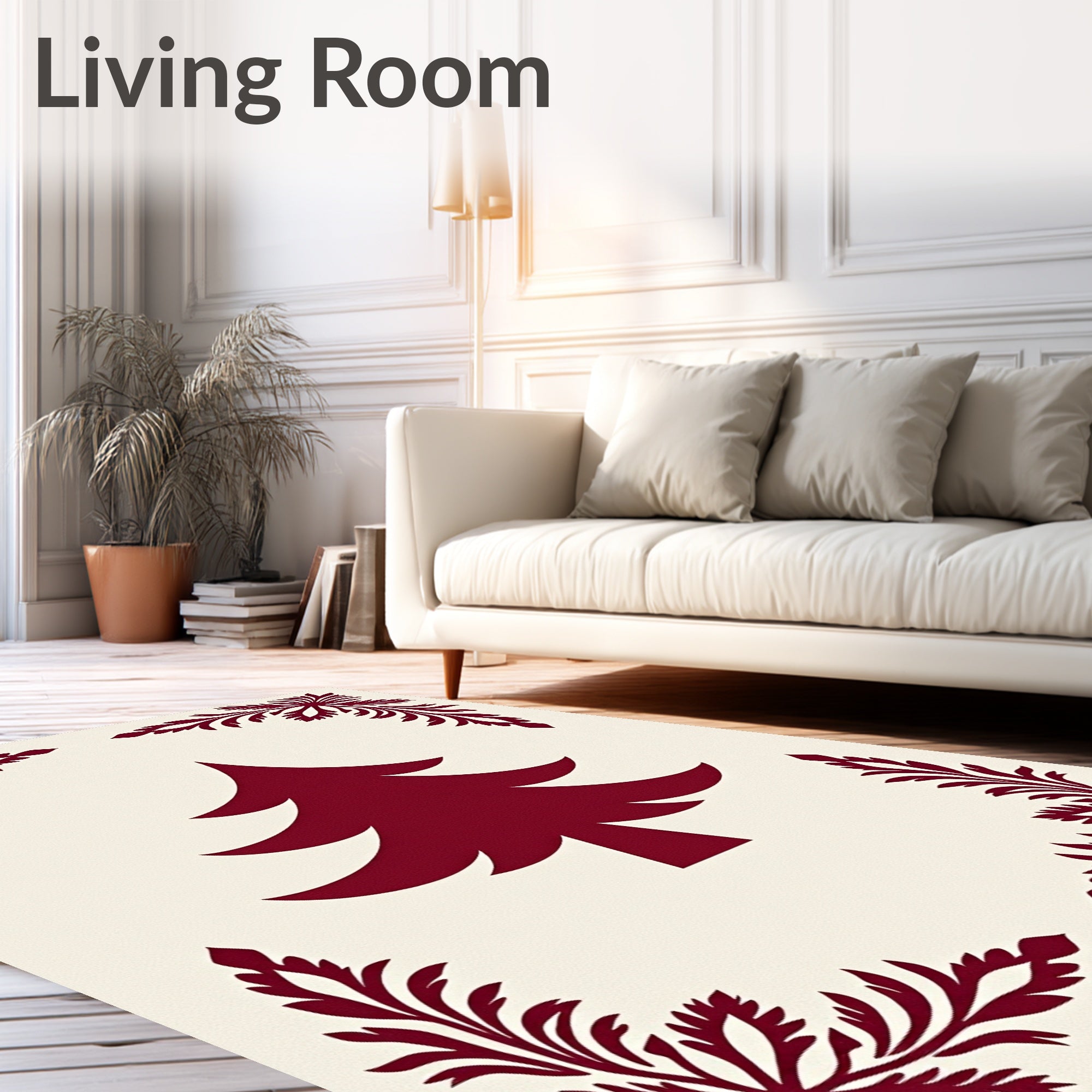 Ultra Soft Area Rug, Non Slip, Stain Resistant, Washable Area Rugs for Living Room, Bedroom, Heritage Noel Pathway Embellishment Showcasing Elegant Tannenbaum(Red) Overview:
