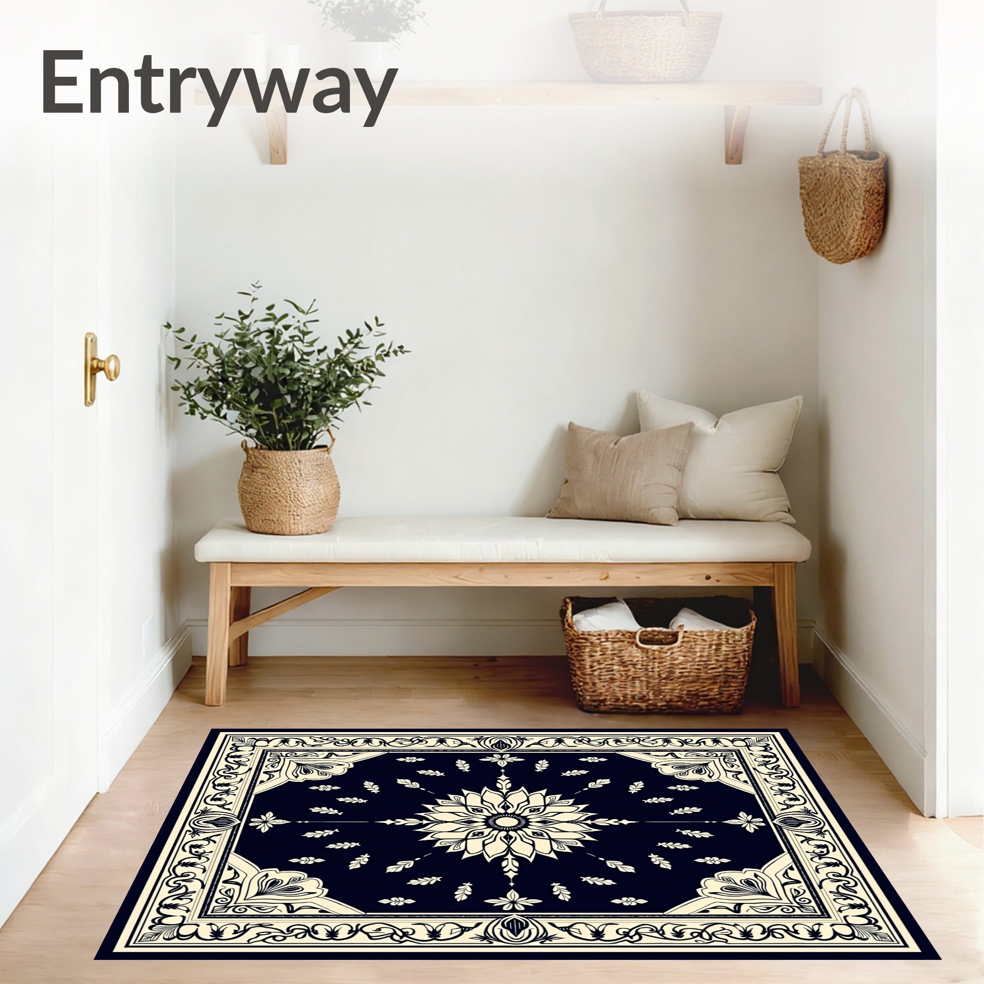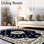 Ultra Soft Area Rug, Non Slip, Stain Resistant, Washable Area Rugs for Living Room, Bedroom, Heritage Ornate Arabesque Symmetrical Jewel(Black) Overview: